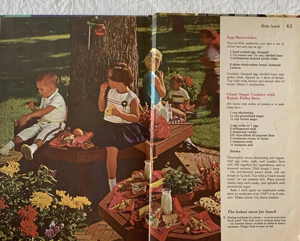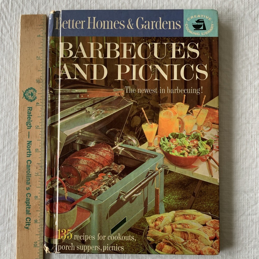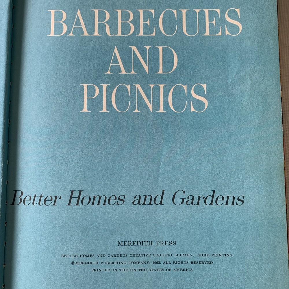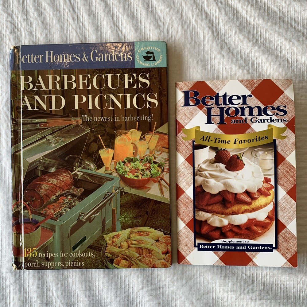 Nostalgic cookbooks. 1963. Barbecues and Picnics is a hardcover book 10 1/4 x 7” with 61 pages. It does have that “old book” musty smell. The pages are yellow due to age the cover does have some damage in the corners, but there are no missing or torn pages. All-time favorites is a paperback book 8 1/4 x 5 1/4” with 64 pages. It is in very good condition with very little signs of wear and no torn or missing pages. Please see all photos for condition details. Thanks for checking out my listings.