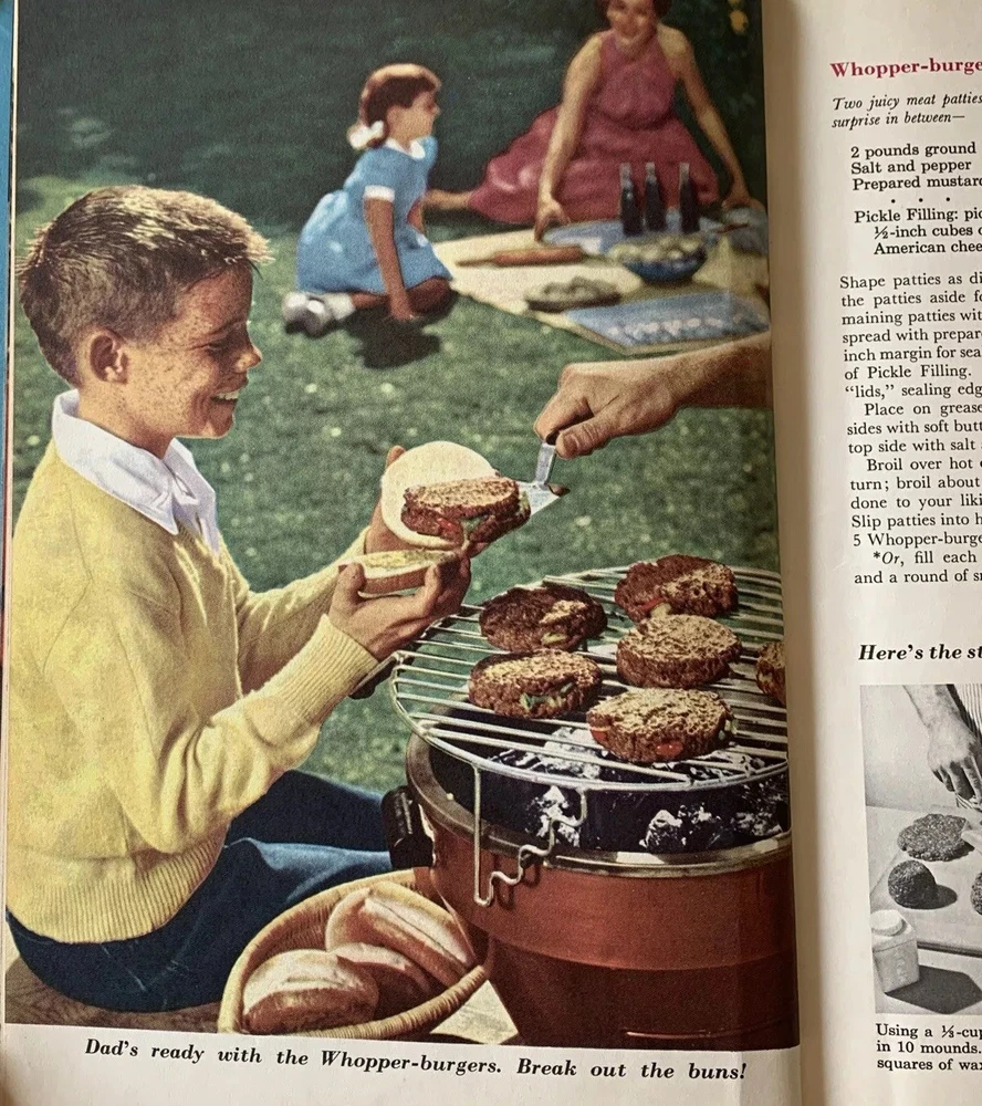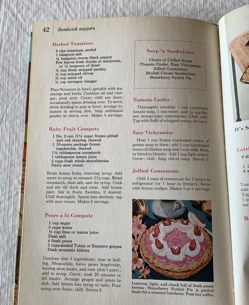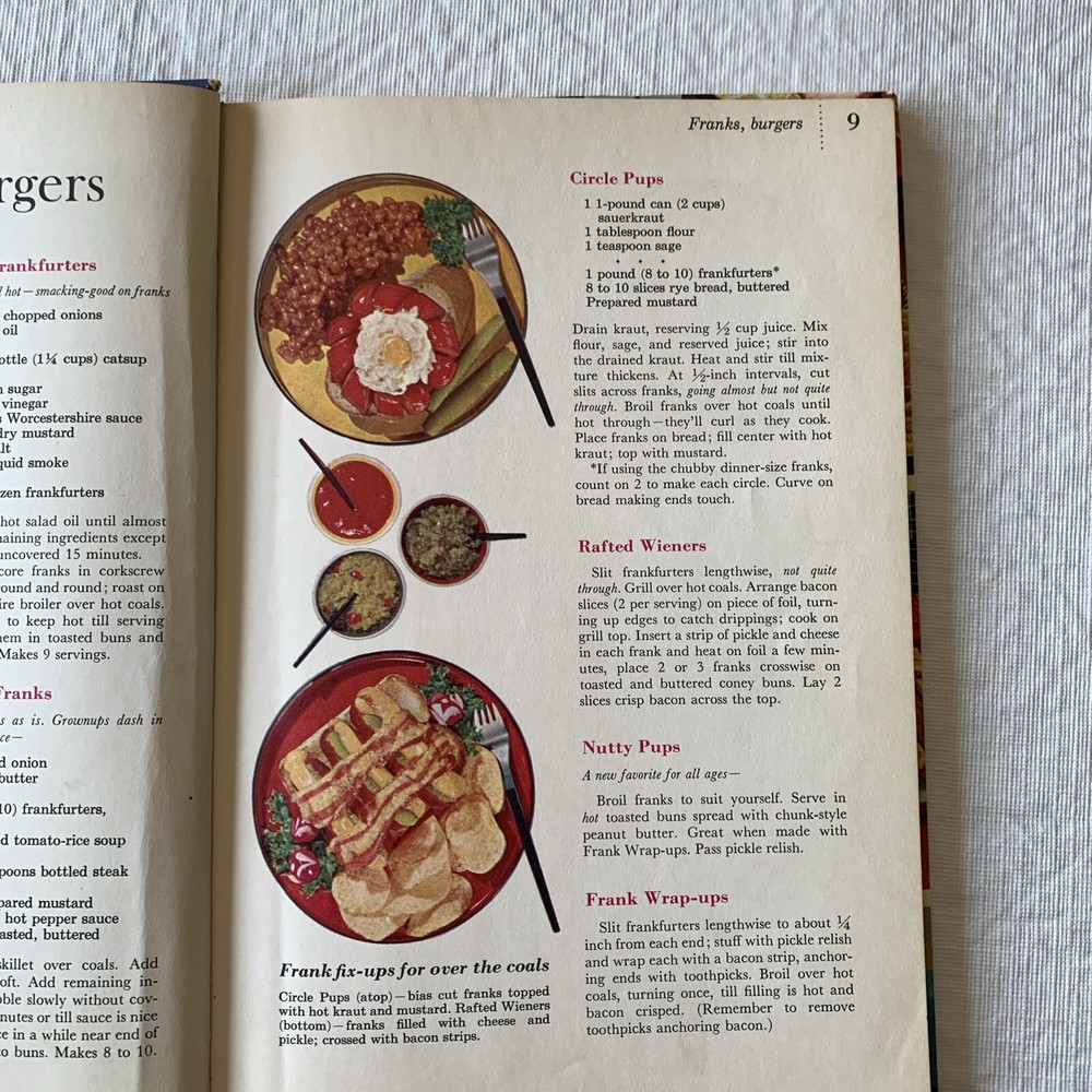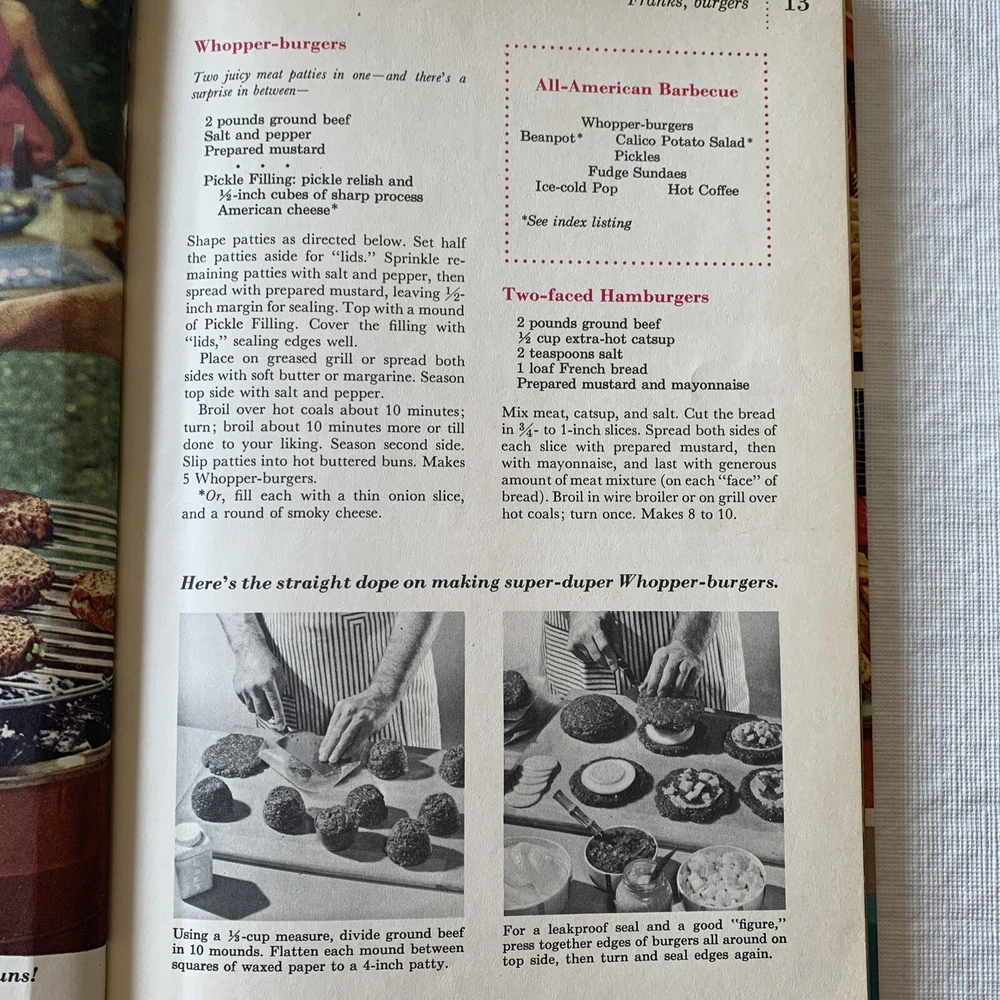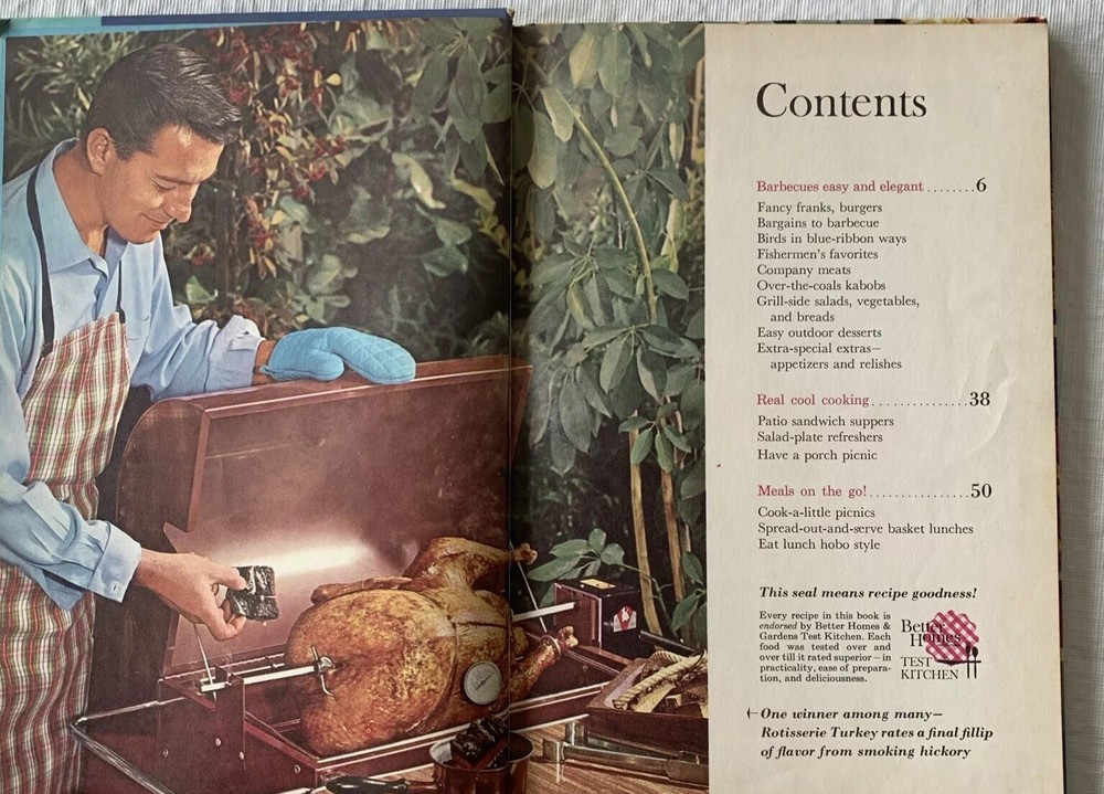 Nostalgic cookbooks. 1963. Barbecues and Picnics is a hardcover book 10 1/4 x 7” with 61 pages. It does have that “old book” musty smell. The pages are yellow due to age the cover does have some damage in the corners, but there are no missing or torn pages. All-time favorites is a paperback book 8 1/4 x 5 1/4” with 64 pages. It is in very good condition with very little signs of wear and no torn or missing pages. Please see all photos for condition details. Thanks for checking out my listings.