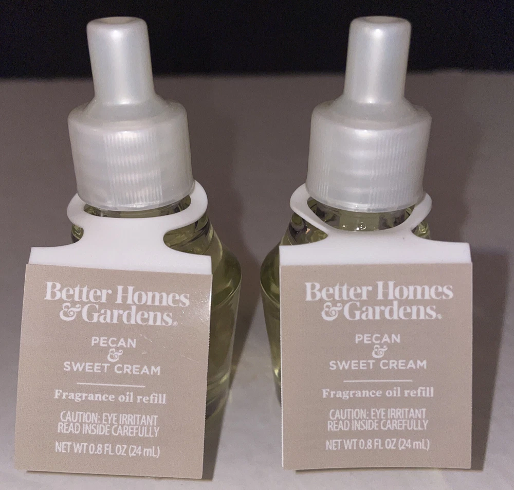 2 Better Homes & Gardens PECAN & SWEET CREAM Fragrance Plug Oil Refill Condition is New. Shipped with USPS ground advantage Package.