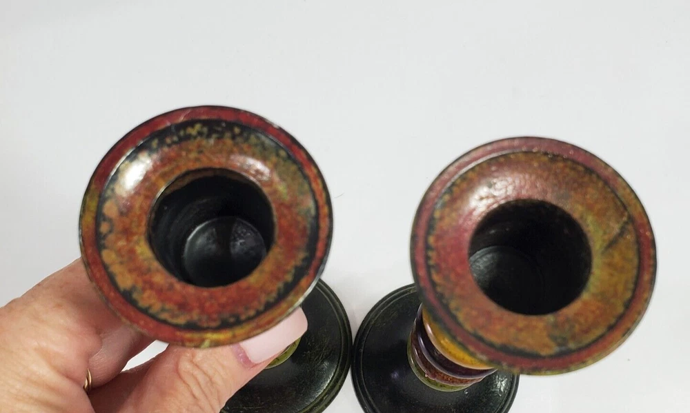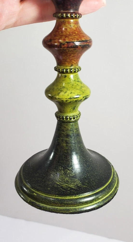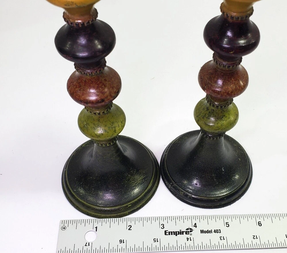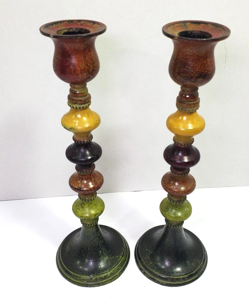 Love these funky Pier 1 candle holders! The retro colorblock design instantly livens up any space. Just the right size for tea lights or small candles, and they look great on my shelf. The painted metal is sturdy and wipes clean easily—so practical yet stylish. A cool vintage find that adds personality to my home decor. Really happy with this purchase!