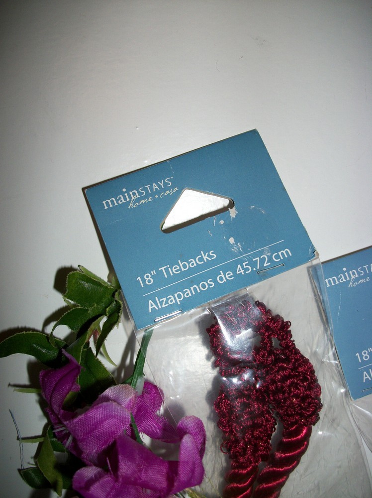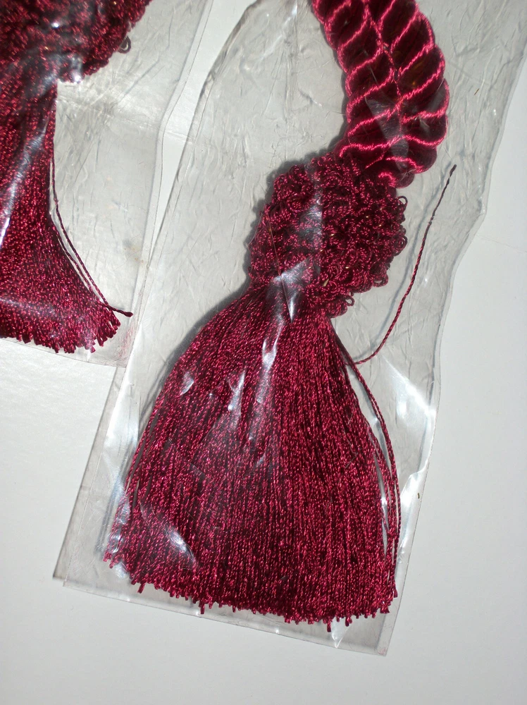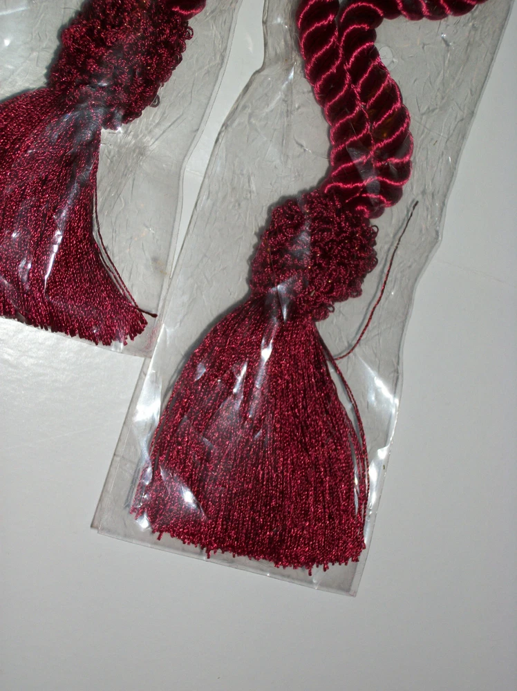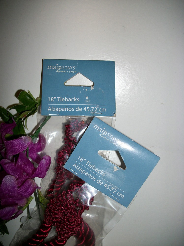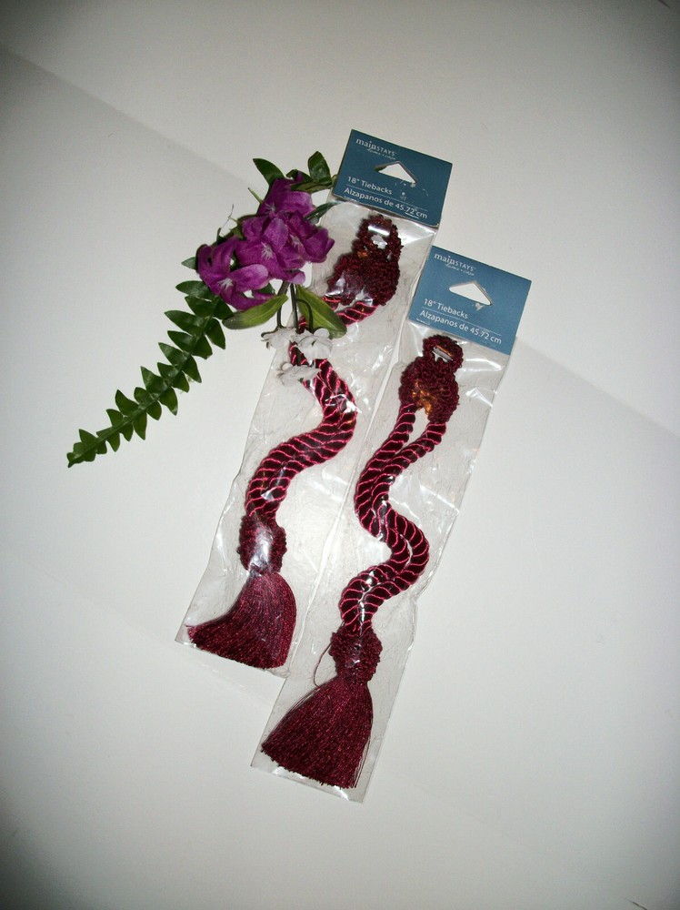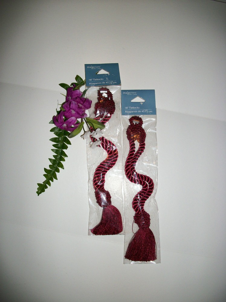 NEW with ORIGINAL TAG! CURTAIN TIE BACKS COLOR: BURGUNDY PERFECT CONDITION! 100% POLYESTER SIZE 18" LONG CHECK OUT THE GREAT DEALS IN OUR EBAY STORE! ~ NANTAHALA FOREST TREASURES ** ** * * * ** ** Shipping Information: We normally ship within 1 Business day. ** ** * * * ** ** Return Policy: Returns accepted. Please notify us within 3 days of receipt of the item. The item must be returned in the same condition as when shipped. No Smoke, Pet Hair, Powder, etc....... please! If the item is damaged or not as described, we pay return shipping. If item is returned because it does not fit, or you just don't want it for whatever reason, buyer is responsible for postage. If there is a problem, please contact us before leaving neutral or negative feedback. Customer satisfaction is of the utmost importance to us. ** ** * * * ** ** NANTAHALA FOREST TREASURES - QUALITY ITEMS at UNBEATABLE prices!!! ** ** * * * ** **