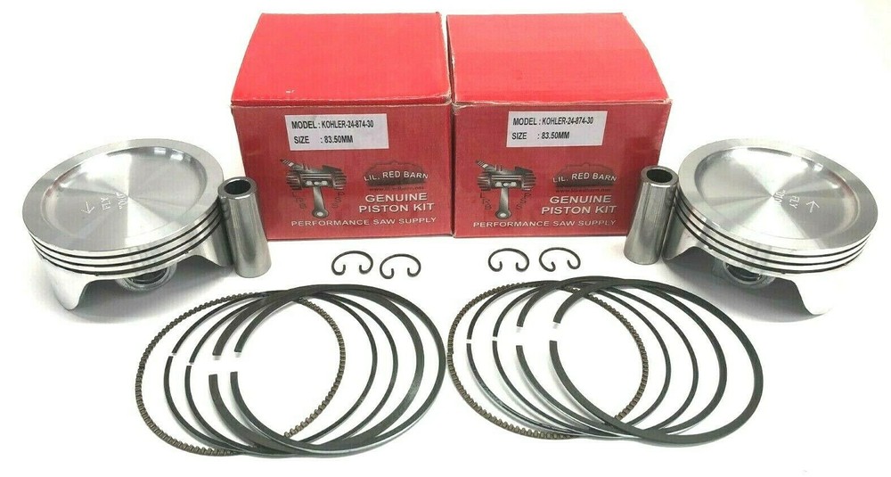 2 BRAND NEW .020" .50MM OVERSIZE PISTONS WITH RINGS THAT FIT KOHLER CH25 CH26 CH27 CV25 CV27 CH730, CH740,CH745, CH750, CV724, CV725, CV730, CV740, CV745, CV750, LH755, LF775, SV710, SV715, SV720, SV725, SV730, SV735, SV740, SV810, SV820, SV830, SV840 NOTE: THESE HIGH QUALITY MADE PISTONS ARE NOT MADE IN TAIWAN OR CHINA SHIPS FROM USA WITH A TRACKING NUMBER FEDEX 2 DAY TO THE 50 STATES BE SURE TO VERIFY YOUR KOHLER ENGINE THAT IT HAS A 83MM BORE BEFORE ORDERING **PLEASE READ ALL SELLER POLICIES AND PROCEDURES CONCERNING HANDLING OF ORDERS AND AFTERMARKET PARTS** -PLEASE NOTE TO ALL EBAY INTERNATIONAL GLOBAL SHIPPING PROGRAM BUYERS! BE ADVISED ALL INTERNATIONAL GLOBAL SHIPPING COST, FEES AND CHARGES ARE SET BY EBAY'S GLOBAL SHIPPING PROGRAM AND ALSO BASED ON YOUR COUNTRY TARIFFS AND DUTY FEES, TARIFF TAXES WHICH ARE SOLELY THE RESPONSIBILITY OF THE BUYER TO HANDLE. WE SHIP ALL ORDERS TO THE EBAY'S GLOBAL SHIPPING PROGRAM WAREHOUSE HERE IN THE USA WITH A TRACKING NUMBER! EBAY REPACKAGES ORDERS AND SHIPS THEM TO THEIR INTERNATIONAL COUNTERPART FOR FINALLY PROCESSING AND DELIVERY. THE SELLER "LIL RED BARN" HAS NO CONTROL OVER HANDLING OF THE PACKAGE ONCE IT IS DELIVERED TO EBAY'S GLOBAL SHIPPING WAREHOUSE. IF THERE ARE PROBLEMS AND/OR DELAYS OF YOUR PACKAGE CONTACT EBAY INTERNATIONAL GLOBAL SHIPPING DEPARTMENT HERE ON EBAY USING THE CONTACT AND SUPPORT HELP ON TOP OF THE EBAY HOME PAGE. EBAY CUSTOMER SUPPORT CAN ONLY ASSIST ON GLOBAL SHIPPING ISSUES. SELLER HAS ZERO ABILITY TO CHECK OR RESEARCH GLOBAL ORDERS ONCE THEY ARRIVE AND DEPART EBAY GLOBAL SHIPPING WAREHOUSE. THANK YOU VERY MUCH FOR YOUR BUSINESS! -SELLER SHIPPING OF INTERNATIONAL ORDERS! PLEASE NOTE: WHEN ORDERS ARE RECEIVED ON EBAY, WE PROCESS AND SHIP OUT ALL ORDER ONCE THEY PAID ON EBAY WITHIN 2 BUSINESS DAYS. IF YOU CHOSE USPS AKA UNITED STATES POSTAL SERVICE THEY WILL BE THE SHIPPER OF RECORD THAT WILL DELIVER THE PACKAGE, HOWEVER USPS CAN BE SLOW AT TIMES, WE HAVE ALMOST ZERO CONTROL OVER YOUR PACKAGE ONCE IT IS DELIVERED TO THE POST OFFICE. WE RECOMMEND CHOOSING FEDEX 2 DAY IF OFFERED IN THE LISTING AS SHIPPING OPTION FOR BETTER SERVICE AND QUICKER TRANSIT TIMES BY SHIPPER. -SELLER SHIPPING POLICY FOR ALL USA ORDERS! ORDERS ARE SHIPPED IN THE ORDER THEY ARE RECEIVED FROM EBAY BASED ON PAYMENT CLEARANCE, SOME PAYMENT METHODS TAKE LONGER THAN OTHERS WITH EBAY'S SYSTEM. WE ADVERTISE THAT WE SHIP WITHIN 2 BUSINESS DAYS AFTER PURCHASE. IF BOUGHT ON MONDAY, IT WILL SHIP BY WEDNESDAY. WE DO NOT SHIP ON WEEKENDS AS WE SPEND TIME WITH OUR FAMILIES. ALL SHIPPING IS DONE MONDAY THROUGH FRIDAY THANK YOU AGAIN FOR YOUR BUSINESS. -PLEASE NOTE TO ALL USA AND GLOBAL BUYERS! WE RESPOND TO MESSAGES USUALLY ONCE A DAY ONCE ALL SHIPPING FOR THE DAY IS COMPLETE. UNFORTUNATELY IF WE RESPONDED TO EACH MESSAGE AS RECEIVED WE WOULD NOT BE ABLE TO PROCESS YOUR ORDERS IN A TIMELY FASHION DUE TO THE AMOUNT OF ORDERS THAT WE DO SHIP DAILY. -COMBINED SHIPPING REQUESTS! FOR COMBINED SHIPPING, PLEASE PUT ALL ITEMS YOU WANT IN YOUR SHOPPING CART. PAY AT CHECK OUT AND WHEN OUR SHIPPERS SEE MULTIPLE ITEMS, IF POSSIBLE THEY WILL SHIP EVERYTHING IN ONE BOX AND WILL REFUND UNUSED SHIPPING BACK TO YOU THROUGH EBAY. PLEASE NOTE: IF YOU ARE A INTERNATIONAL BUYER, MESSAGE US FIRST FOR COMBINED SHIPPING REQUESTS. EBAY DOES NOT ALLOW US TO COMBINE ORDERS ON INTERNATIONAL PURCHASES THAT HAVE BEEN PAID FOR ALREADY. IF YOU PLACE 2 SEPARATE ORDERS UNDER EBAY POLICY THEY MUST SHIP IN SEPARATE PACKAGES. -CUSTOMERS WITH SPECIFIC QUESTIONS CONCERNING ENGINE PARTS APPLICAITON, WE REQUIRE THE FOLLOWING INFORMATION BY EMAIL TO ASSIST YOU! BRIGGS AND STRATTON ENGINES MODEL, TYPE AND CODE ie: (427707, 1026-G1, 024211YB) KOHLER ENGINES MODEL, SPEC AND SERIAL ie: (CH25S, 45285, 25124582) TECHUMSEH ENGINES MODEL, SPEC AND SERIAL ie: (TVS95, 2201A, SERIAL) KAWASAKI ENGINES MODEL, SPEC ie; (FH651V, FH651V-AS10) OTHER ENGINE OR PRODUCTS PLEASE SUPPLY ALL INFORMATION REGARDING MODEL AND SERIAL NUMBER FOUND ON EQUIPMENT TO BETTER ALLOW US TO ASSIST YOU. -AFTERMARKET PARTS OR OEM PARTS! REPLACEMENT PARTS IN OUR STORE ARE AFTERMARKET REPLACEMENT PARTS AND NOT MANUFACTURED OR AFFILIATED WITH THE OEM (ORIGINAL EQUIPMENT MANUFACTURE) OR BRAND THAT THEY ARE DESIGNED TO REPLACE. ANY USAGE OF THE OEM BRAND NAME OR PART NUMBER OR DESCRIPTION ARE QUOTED FOR REFERENCE PURPOSE ONLY TO ALLOW CUSTOMER TO VERIFY FITTING OR APPLICATION AND ARE THERE FOR CROSS REFERENCE PURPOSE ONLY AND ARE NOT INTENDED TO INDICATE OR SUGGEST THAT OUR ITEMS ARE MADE BY THE OEM. ITEMS THAT ARE OEM WILL BE LISTED AS "OEM" AND/OR "GENUINE PARTS" IN THE TITLE AND/OR DESCRIPTION. -ADDITIONAL QUESTIONS OR REQUESTS! IF YOU HAVE QUESTIONS ABOUT ITEMS, ALWAYS ASK PRIOR TO PURCHASING ITEMS, MAKE SURE TO INCLUDE ALL MODEL AND SERIAL INFORMATION, ONCE PURCHASE IS MADE YOU HAVE IMPLIED THAT YOU AGREED TO THE ABOVE STATEMENTS.