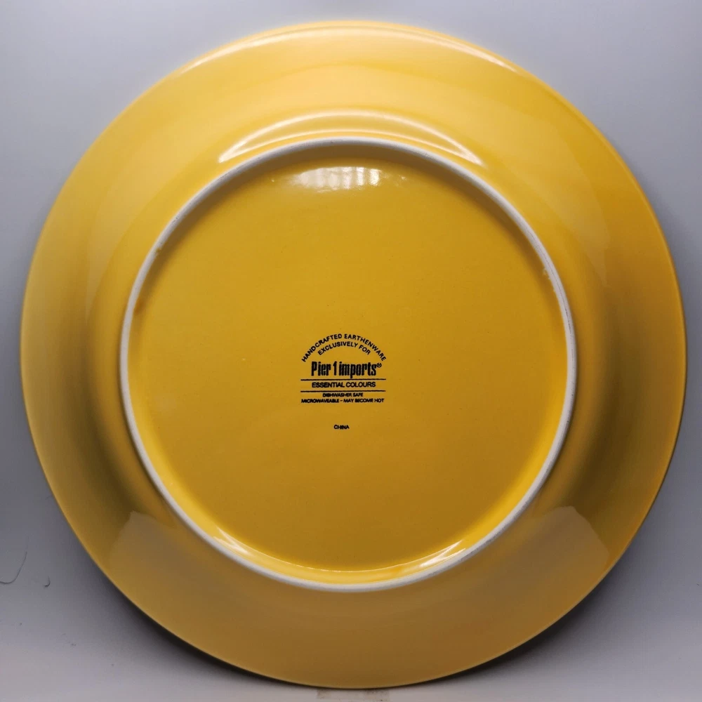 No chips, cracks or crazing. Excellent used condition. The Pier 1 Essential Colours 11 1/4" Dinner Plates in Yellow are a set of two contemporary, round earthenware plates featuring a flared rim and a smooth, all-yellow design. Manufactured between 2008-2012, these stackable, microwave-safe, and dishwasher-safe plates are perfect for all occasions, including Easter and spring events. With a glossy finish and decorative style, these plates are a vibrant addition to any table setting, adding a pop of colour to your dining experience. 99.9% of the items we sell on the eBay platform are purchased 2 nd hand. Although we clean all our products prior to posting, items may have been subject to a non-pet/non-smoke free environment. We go to great lengths to ensure items arrive safely, including insuring all of our shipments via USPS. If any of your items arrives damaged, buyers agree to provide clear photos of the item damage and its packaging in order for sellers to process a claim. Until the claim is resolved, buyer agrees to retain the mailing box; including any damaged items, the wrappings, packaging, and any contents that were received. If requested by USPS, buyer agrees to present the mailed article and all wrappings, labels, and available contents for inspection at a local Post Office. Thank you for supporting small business!