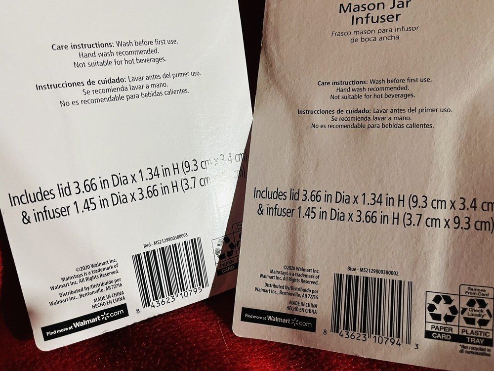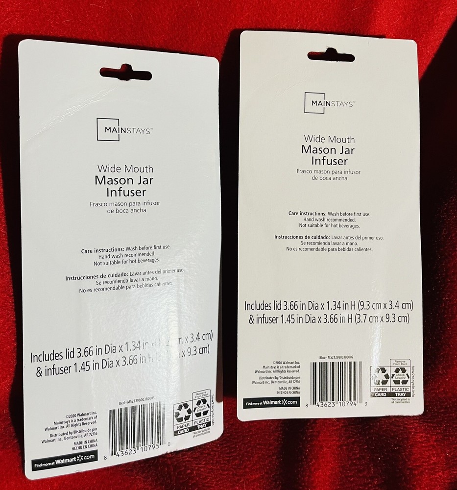 Mainstays widemouth, mason jar, infuser BPA free brand new one red and one blue