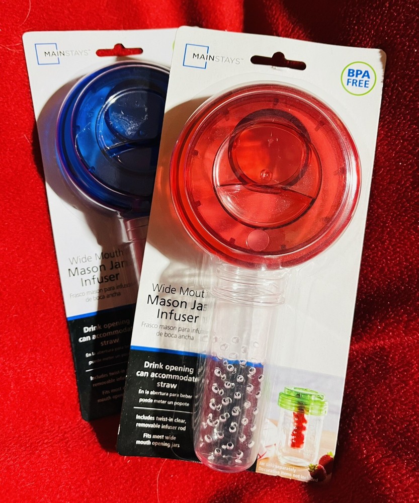 Mainstays widemouth, mason jar, infuser BPA free brand new one red and one blue...
