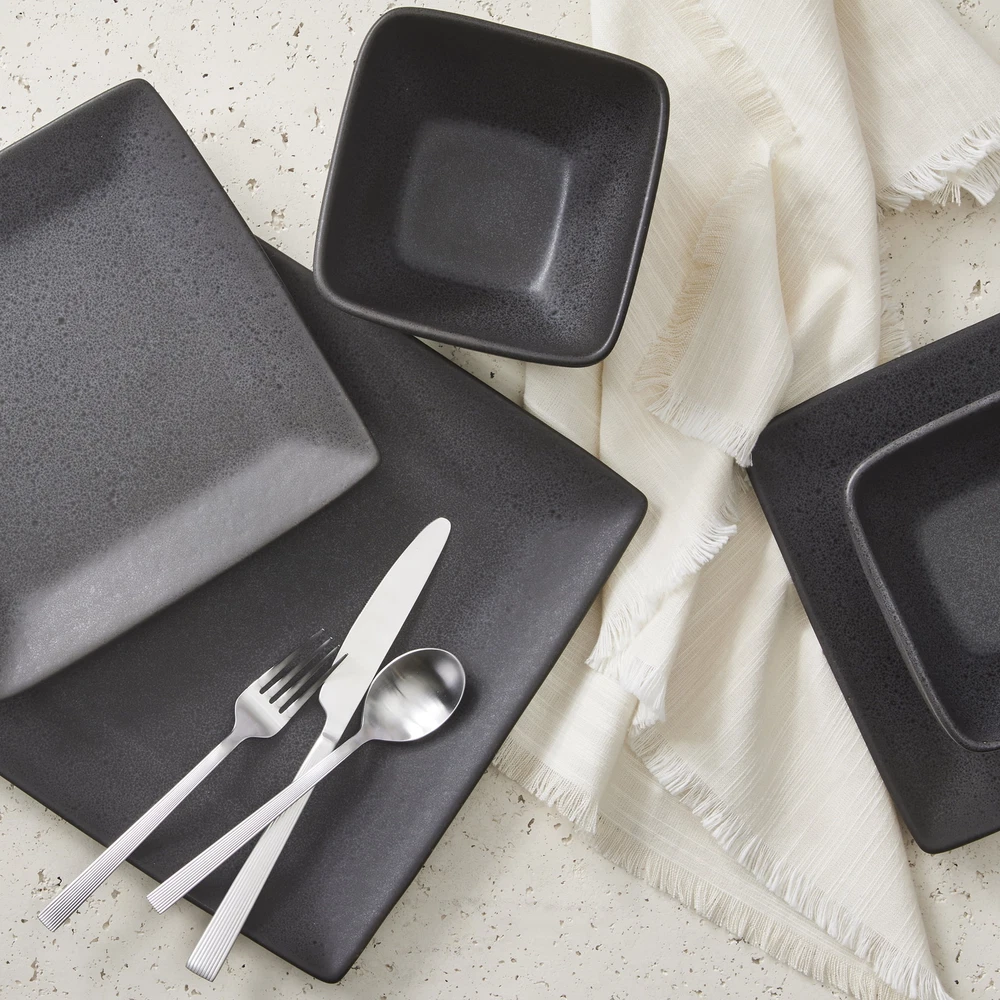 hese plates elevate everyday meals with their modern square design and rich dark gray finish. The stoneware feels sturdy yet elegant, and the reactive glaze gives each plate a unique, artisanal touch. Perfect for salads, appetizers, or even desserts, they add a stylish edge to any table setting. Plus, the 2-pack makes it easy to mix and match or keep a spare on hand. A great upgrade for casual dinners or entertaining guests!