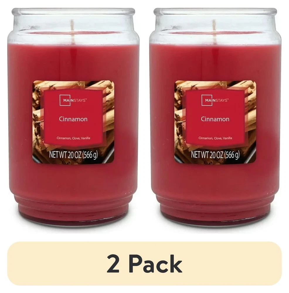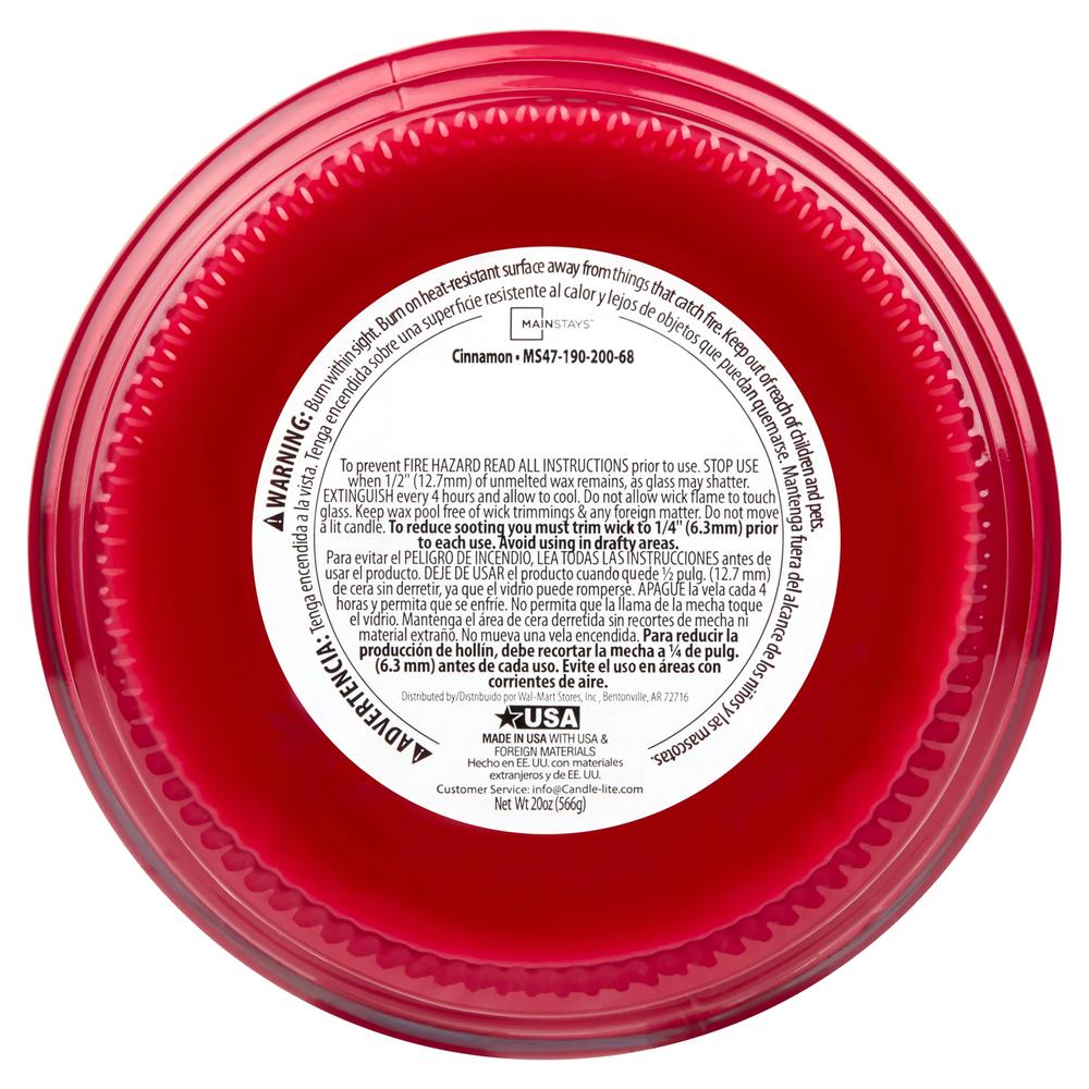 Introduce a soothing aroma into your living space with the Mainstays Cinnamon Scented Single-Wick Jar Candle. Mainstays scented candles are highly fragranced and provide a clean and even burn that will fill your home with beautiful and enticing seasonal aromas. Place this candle in the kitchen, living room or dining room where you can enjoy it when entertaining guests or anytime you want to relax. Trim the wick periodically to promote even burning. Mainstays offers a wide selection of candle scents to explore and enjoy. Shop all of our Mainstays scents online and in-store. Treat yourself to the enticing scent of the Mainstays Cinnamon Scented Single-Wick Jar Candle. Mainstays Cinnamon Scented Single-Wick Large Glass Jar Candle, 20 oz Warm and spicy cinnamon infused with subtle nuances of clove and pure vanilla. Complements virtually any room decor 20 oz. single-wick candle burns for approximately 100-120 hours Features a decorative beveled edge glass vessel Mainstays single-wick scented candles are highly fragranced, and provide a clean and even burn that will fill your home with beautiful and enticing aromas Our candles are made from high quality, non-toxic, clean-burning wax that is specifically developed to hold optimal fragrance loads Our Mainstays 20oz candle is available in a variety of scents