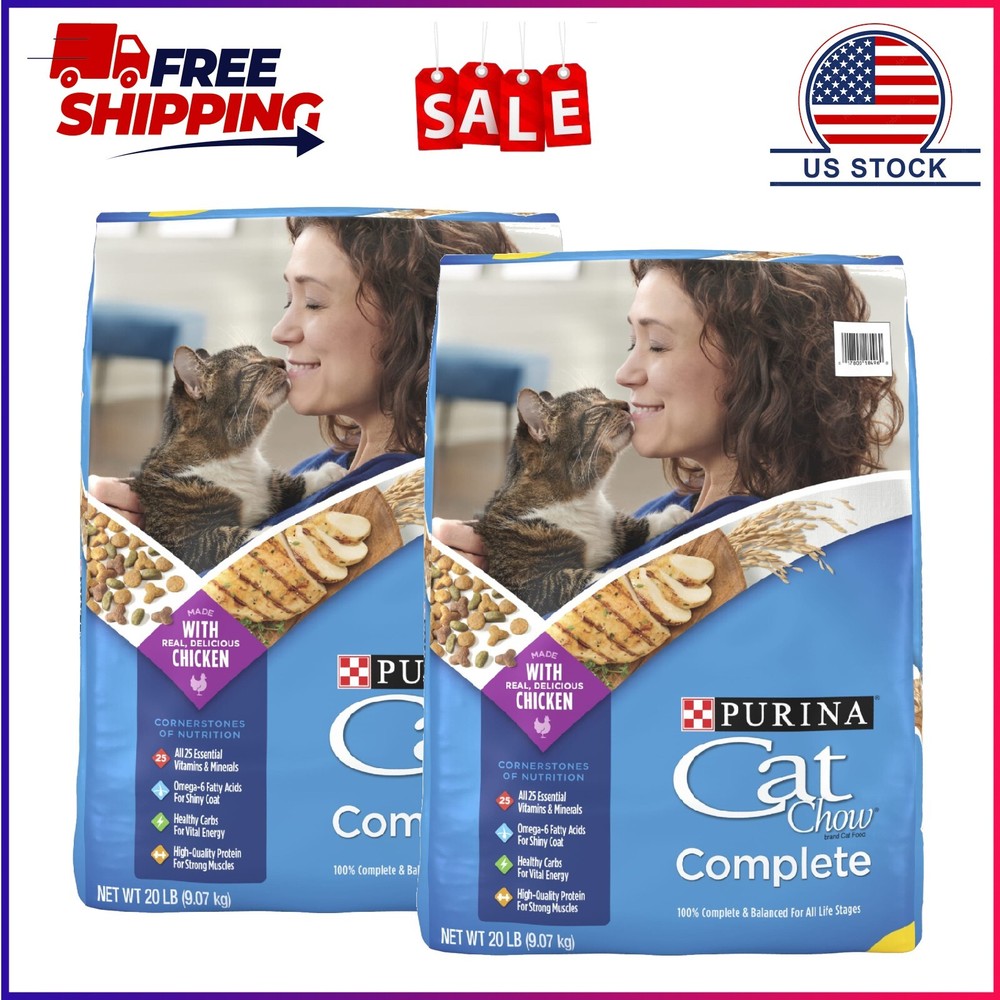 Purina Cat Chow Complete, Dry Cat Food, Chicken, 20 lb Bag Purina Cat Chow Complete Dry Cat Food, Whole Grain, Promote your cat's long, healthy life with you by serving her Purina Cat Chow Complete dry cat food. This delicious recipe is made with real farm-raised chicken and supplies high-quality protein to support strong muscles. Plus, it has healthy carbs for vital energy and omega-6 fatty acids to help promote a shiny coat. Purina Cat Chow Complete is formulated to nourish cats at every stage of life, from kittens to adult cats, providing 25 essential vitamins and minerals to support overall health. Wholesome ingredients in this high protein dry cat food deliver 100 percent complete and balanced nutrition to help support her overall health and wellness. Purina Cat Chow Complete Dry Cat Food, Whole Grain, 20 lb Bag FARM-RAISED CHICKEN: This high protein cat food is made with real and delicious farm-raised chicken plus other wholesome ingredients to provide the cornerstones of nutrition HIGH-QUALITY PROTEIN: Our wholesome Cat Chow Complete formula is high in protein to help support your cat's strong muscles and contains healthy carbs for vital energy OMEGA-6 FATTY ACIDS: The dry cat food for skin and coat care is formulated with omega-6 fatty acids to help keep your cat looking and feeling her best 25 ESSENTIAL VITAMINS AND MINERALS: To support your cat's overall health, our wholesome cat food contains 25 vitamins and minerals ALL LIFE STAGES CAT FOOD: Purina Cat Chow Complete cat food kibble is ideal for cats of all ages, so you can feed it to your feline throughout her life for healthy maintenance