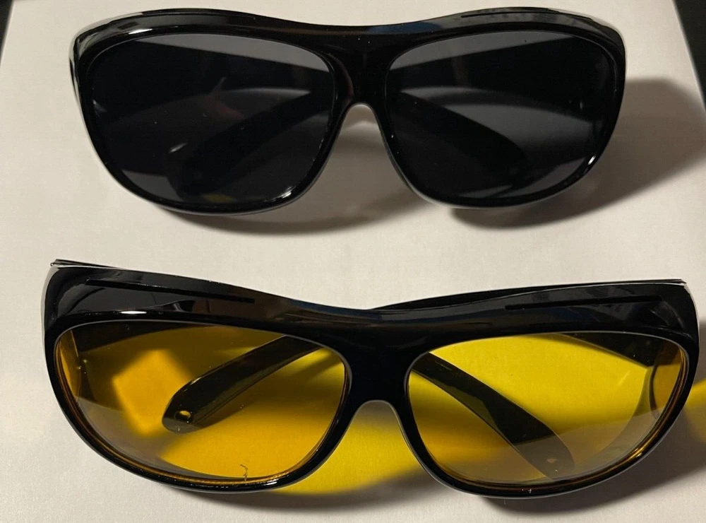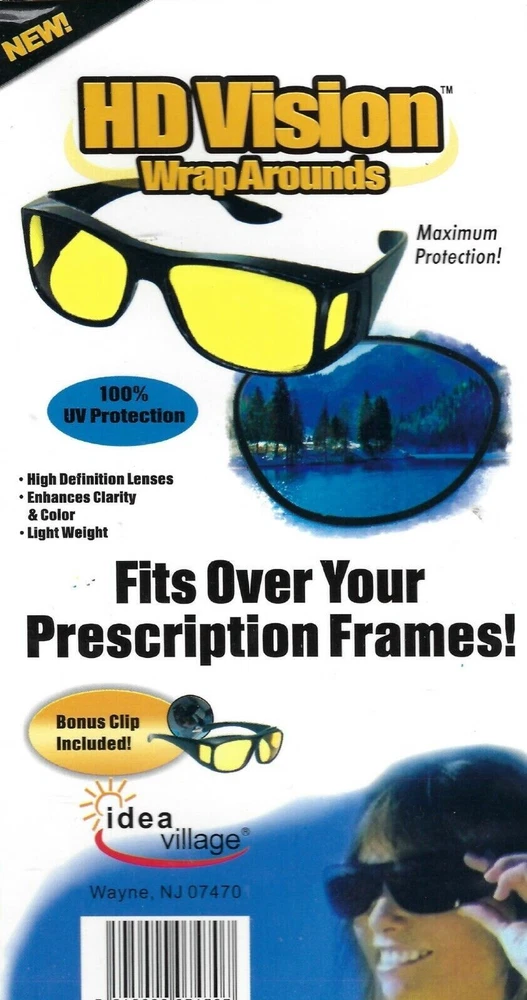 HD Vision Ultra Sunglasses are high definition lenses that enhance color and clarity. They are 100% UV Protection. This item reduces glare, enhances color and clarity and optical quality lenses. This item is Euro-style design and advanced HD Lenses Technology. Box Includes 1 Yellow Night Vision and 1 Black Day Vision Sunglasses Polarized Plastic Frame