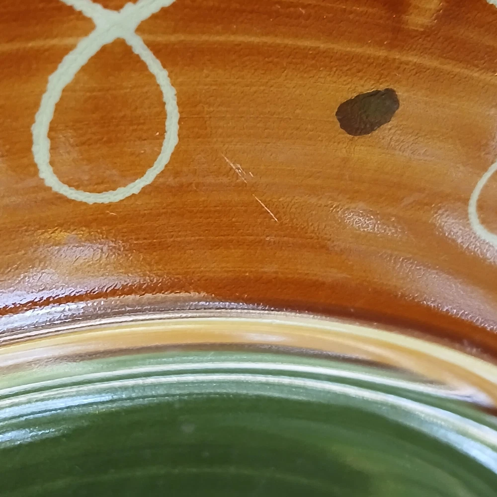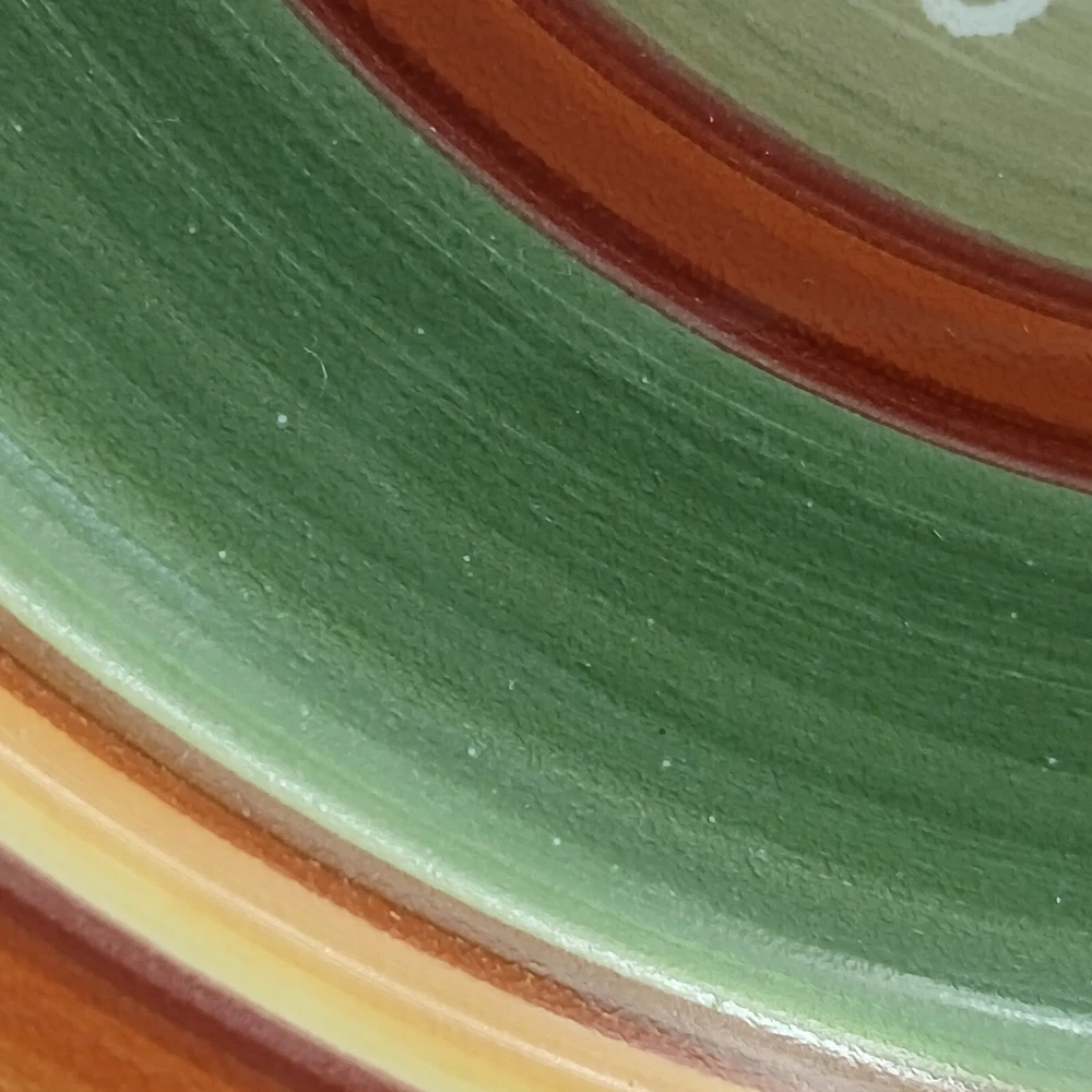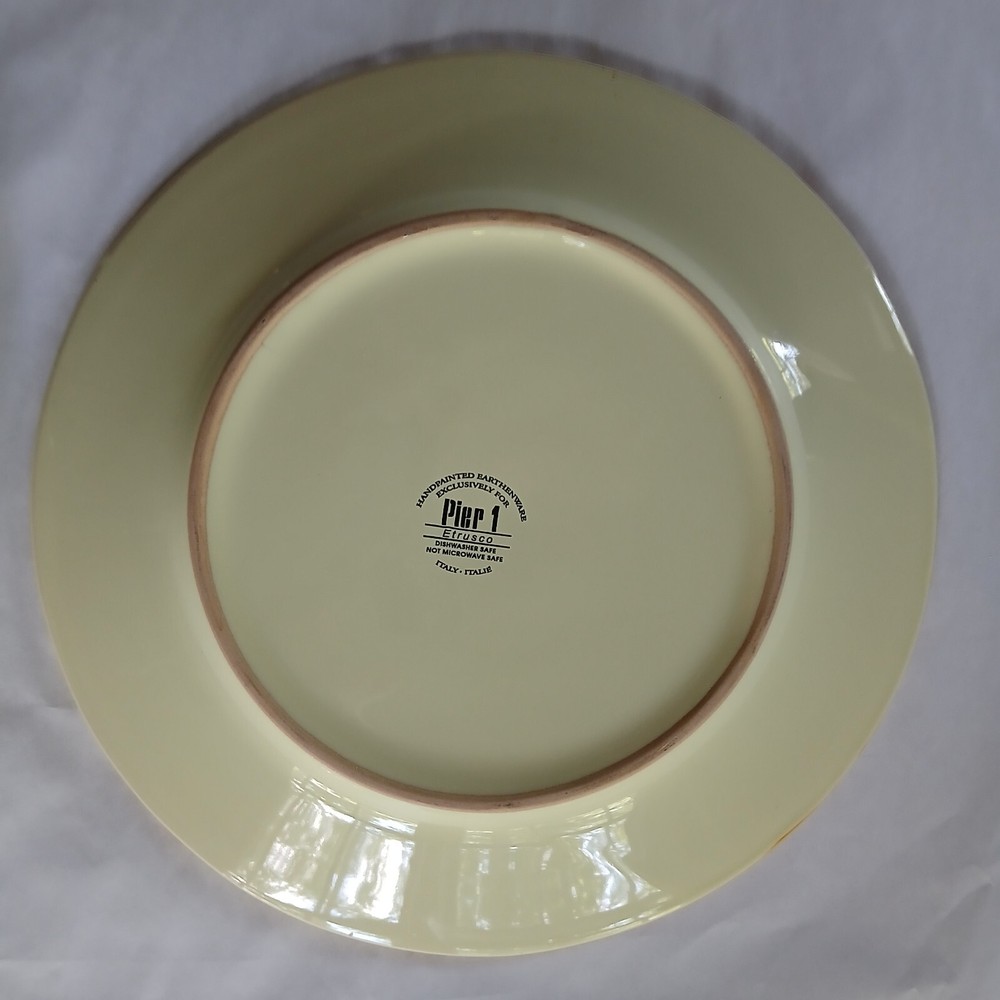 In very good condition, two Pier 1 red, orange, green bands, swirls and dots, 11.5 inch diameter Etrusco dinner plates. Hand painted and made in Italy. The pattern is discontinued and was active around 2005. If you have any questions or would like additional pictures please ask. Please note that shipping is based on the weight & size of the package and the destination and will require extra packaging materials to keep it safe during transit which also adds to the weight. Each plate weighs around 2 pounds. If ever you receive anything from me with which you have a legitimate issue, please contact me ASAP and I will work with you to resolve it. All items come from a smoke free and odor free environment. Thanks for looking!
