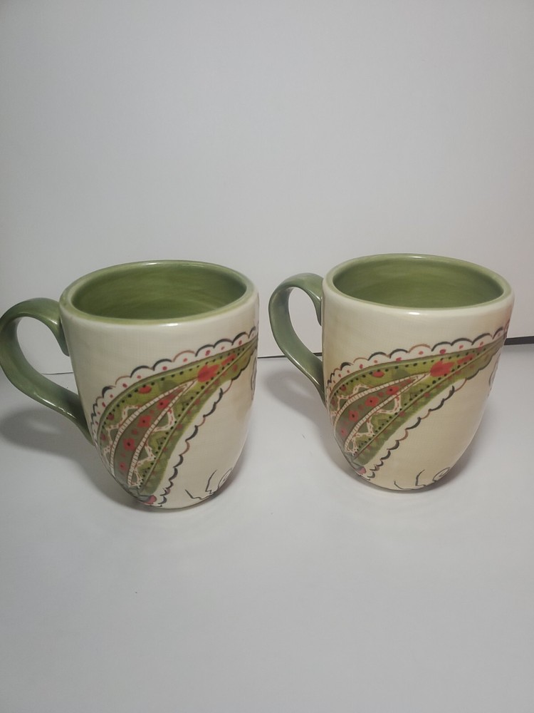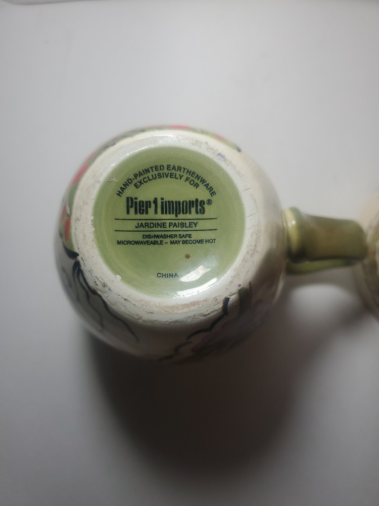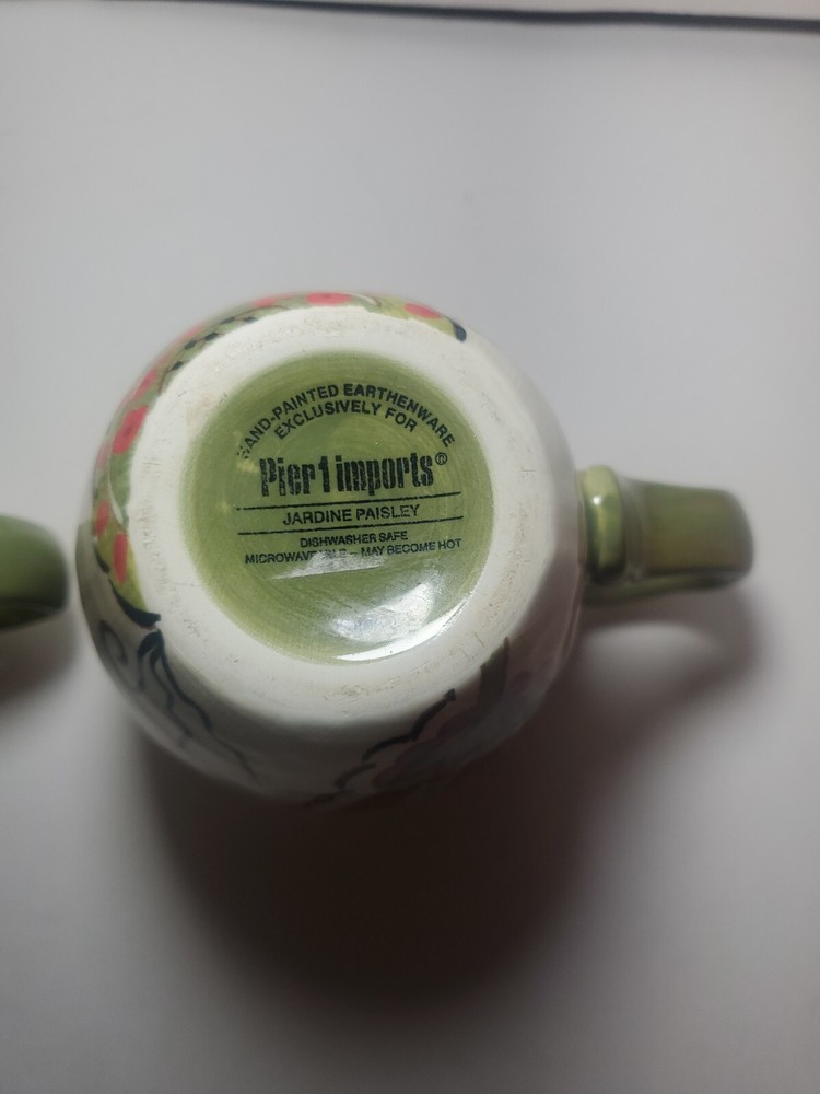 2 Pier 1 Imports Earthenware Jardine Paisley Mugs Hand-painted - Rare. Great Condition...