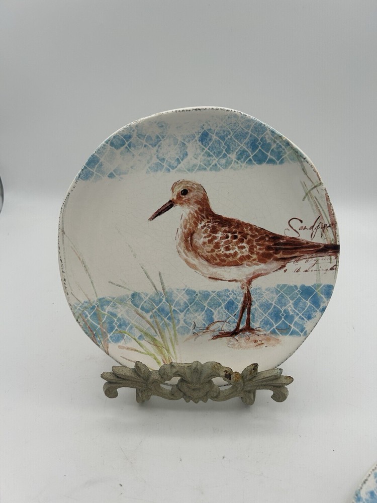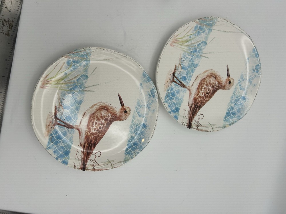 Elevate your dining experience with these 2 Pier 1 Imports Sandpiper dinner plates, featuring a charming ocean beach design that brings a touch of seaside tranquility to your table. Each plate measures 8 inches in diameter, ideal for serving a variety of dishes that are sure to impress your guests. Crafted from high-quality earthenware, these plates are both durable and convenient, being dishwasher safe for easy cleanup. The Sandpiper collection, known for its bird theme, is an original product line that adds both functionality and style to your dinnerware collection. Enjoy the blend of design and practicality with these delightful dinner plates. SKU 4002
