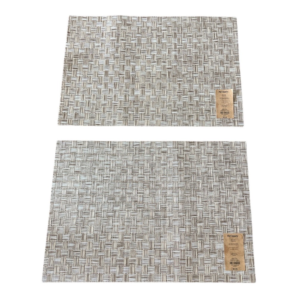 2 Pier 1 Imports Taupe Placemats. Size: 13" x 19". Set of 2. 100%PVC Coated Polyester. Look brand new, still has the tags on them. Yes, we wrap exceptionally well and ship immediately.