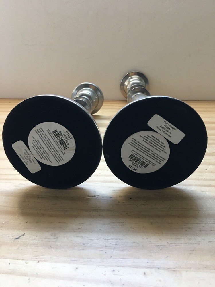 2 Pier One Imports Metal Silver plated Candle Holders Carb 91320 Features and specifications No.1 Height 8 in NO.2 Height 10.5 in Condition description Mint Condition, From a Non-Smoke Home, Clean, and Has No damages. See pictures for details. Please Note: All Items Have Been Carefully Inspected But Occasionally I Miss Things, Please Reach Out To Me With Any Issues. I Want All Customers To Be Happy With Their Purchases. Welcome To My Store Check out More