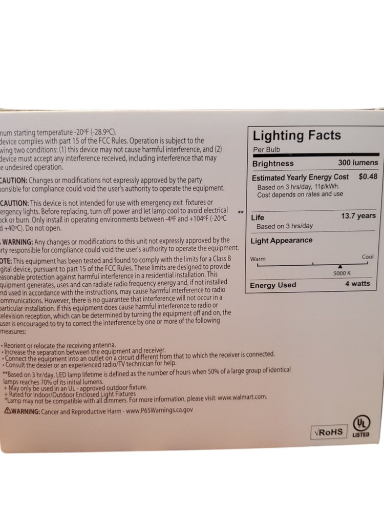 Better Homes & Gardens Thin Filament Daylight 40W B10 Bulbs – Lot of 2 (Total of 8 Bulbs) | NEW in Box Brighten your home with timeless style using this Lot of 2 packs (Total of 8 bulbs) of Better Homes & Gardens Thin Filament Daylight 40W B10 Clear Glass Lamps . Each 4-pack is sealed in its original retail packaging, delivering both classic charm and modern daylight brilliance. Product Highlights: 🔹 Lot of 2 Packs – 4 Bulbs per Pack = Total of 8 Bulbs 🔹 Brand New 🔹 Clear Glass B10 Bulbs with Thin Filament Design 🔹 40 Watt Equivalent – Crisp Daylight (5000K) Color Temperature 🔹 E12 Candelabra Base – Perfect for Chandeliers, Sconces, and Accent Lighting 🔹 Stylish Look When On or Off – Vintage Meets Modern 🔹 Long-Lasting, Energy-Efficient Performance 💡 Ideal for adding bright, decorative light to any room with a clean and elegant touch. 📦 All items are NEW in their original retail boxes – never used. Fast, secure shipping included!