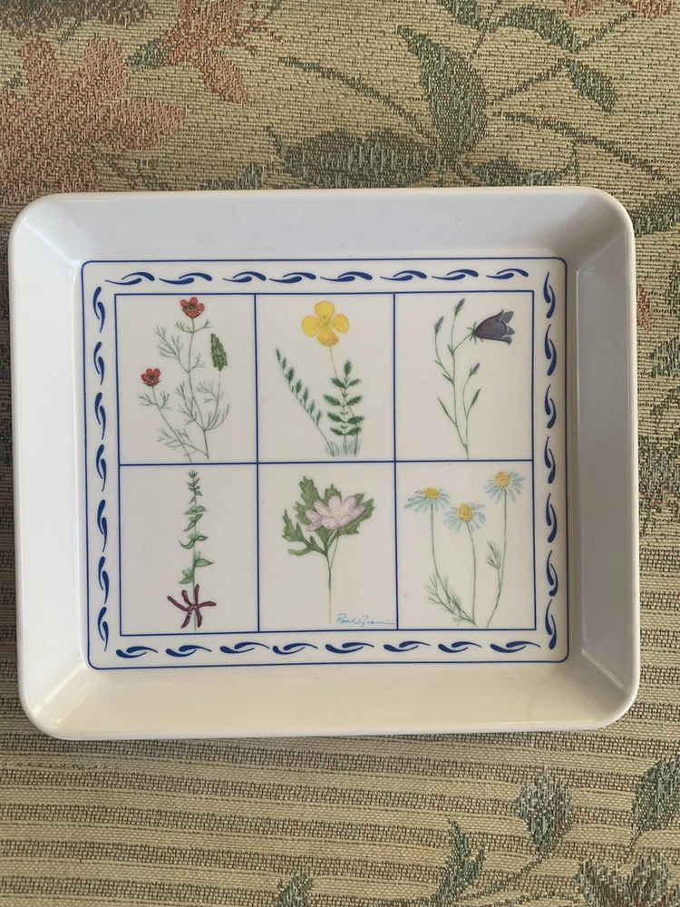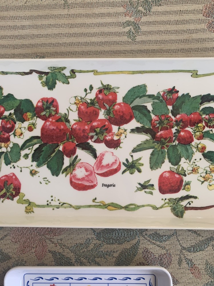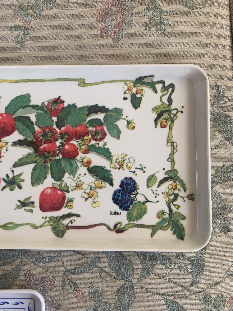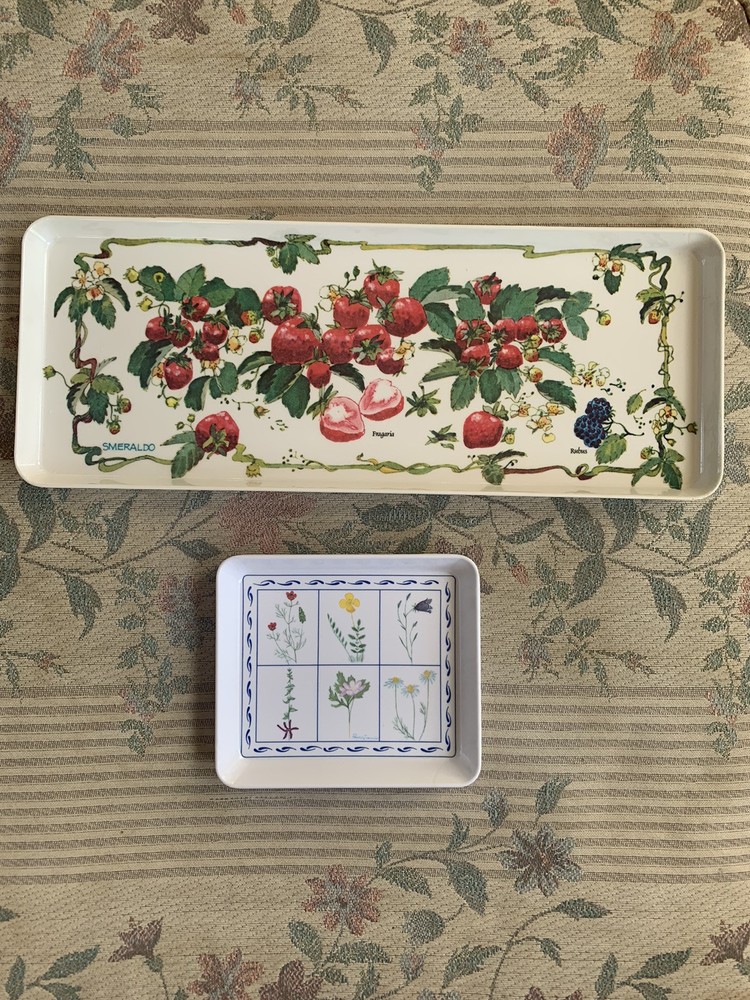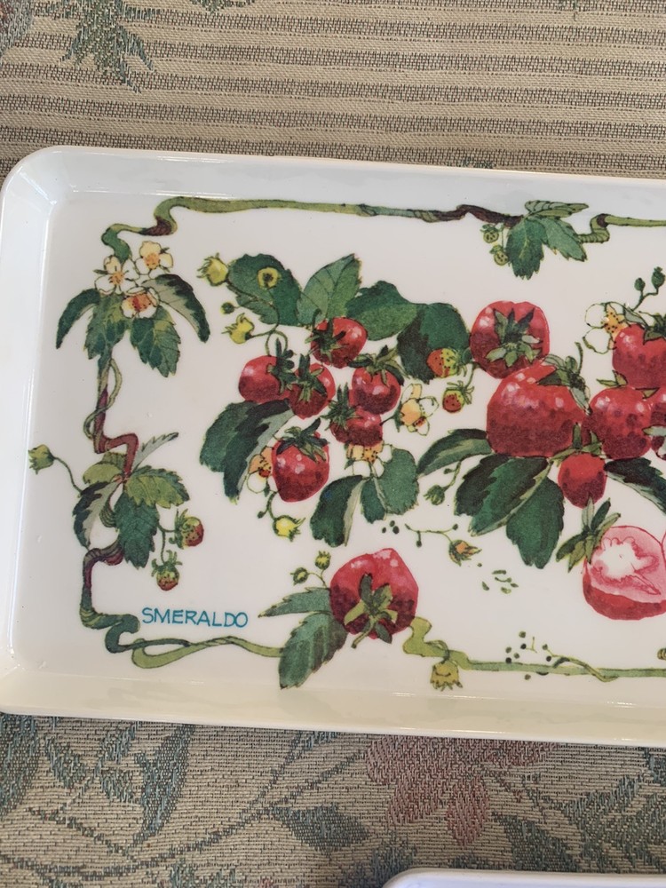 Set of 2 design imports serving sandwich tray & snack tray Made in Italy 1 Smeraldo Strawberry Fruit Serving sandwich Tray 16” x 6” x 0.75” 1 design of botanical and floral prints snack tray 5.75” x 5” x 0.75” See photos for details