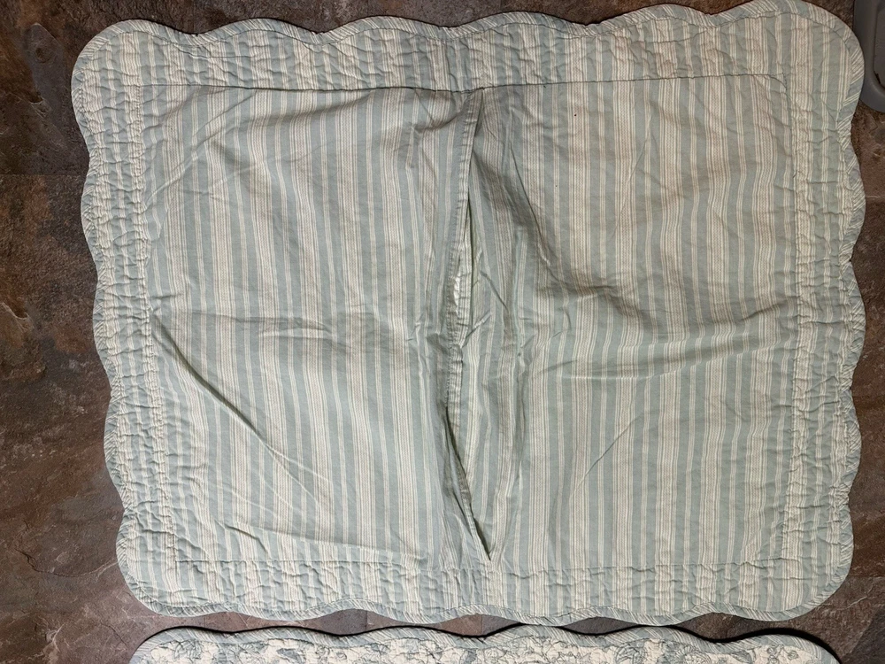 The product is a set of two standard/queen quilted pillow shams in light blue and grey florals from the Better Homes & Gardens brand. These rectangular pillow shams are made from 100% cotton and feature a floral pattern, French country/Cottage style and quilted design. They are machine washable for easy care and are perfect for adding a touch of flowers to the bedroom decor. 24.5”W x 32”L Clean, ready to use. No issues. Inventory code #9083 FREE SHIPPING to continental continuous USA 🇺🇸 Love ❤️ other items in our store? We will gladly combine shipping We reserve the right to ship via USPS Ground Advantage, FedEx or UPS depending on where you live, weight and size of the package 📦 All sales are final. We don’t do buyer’s remorse, but we do take care of our clients. Buy with confidence THANK YOU for looking at our beautiful finds