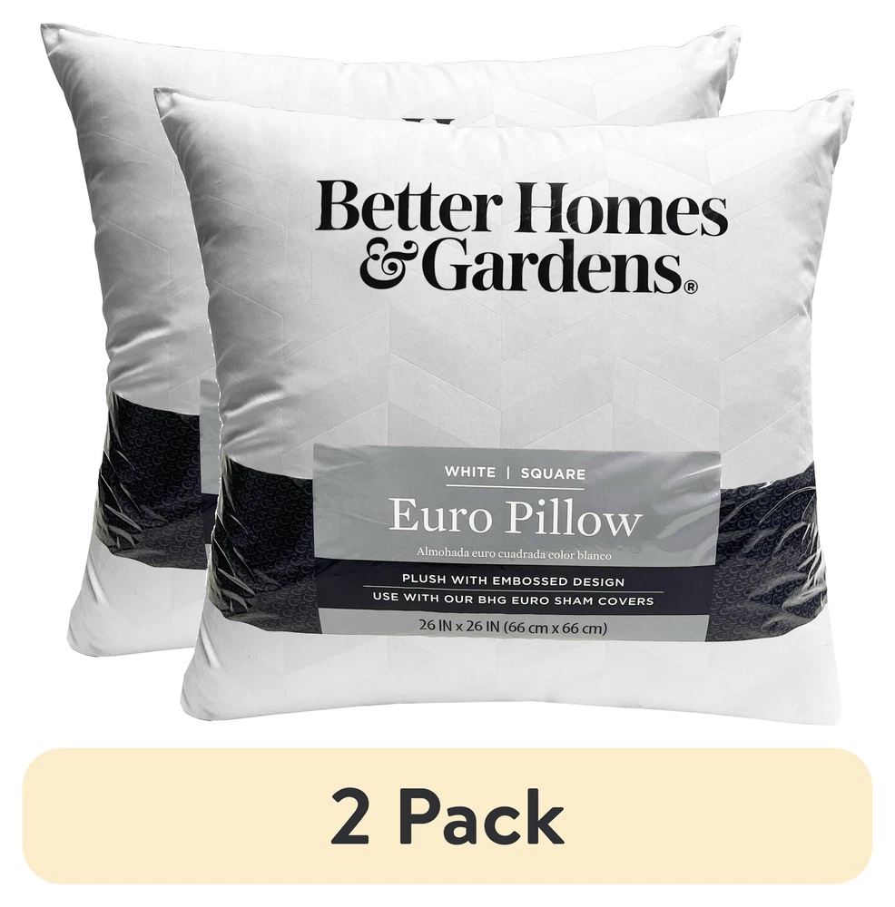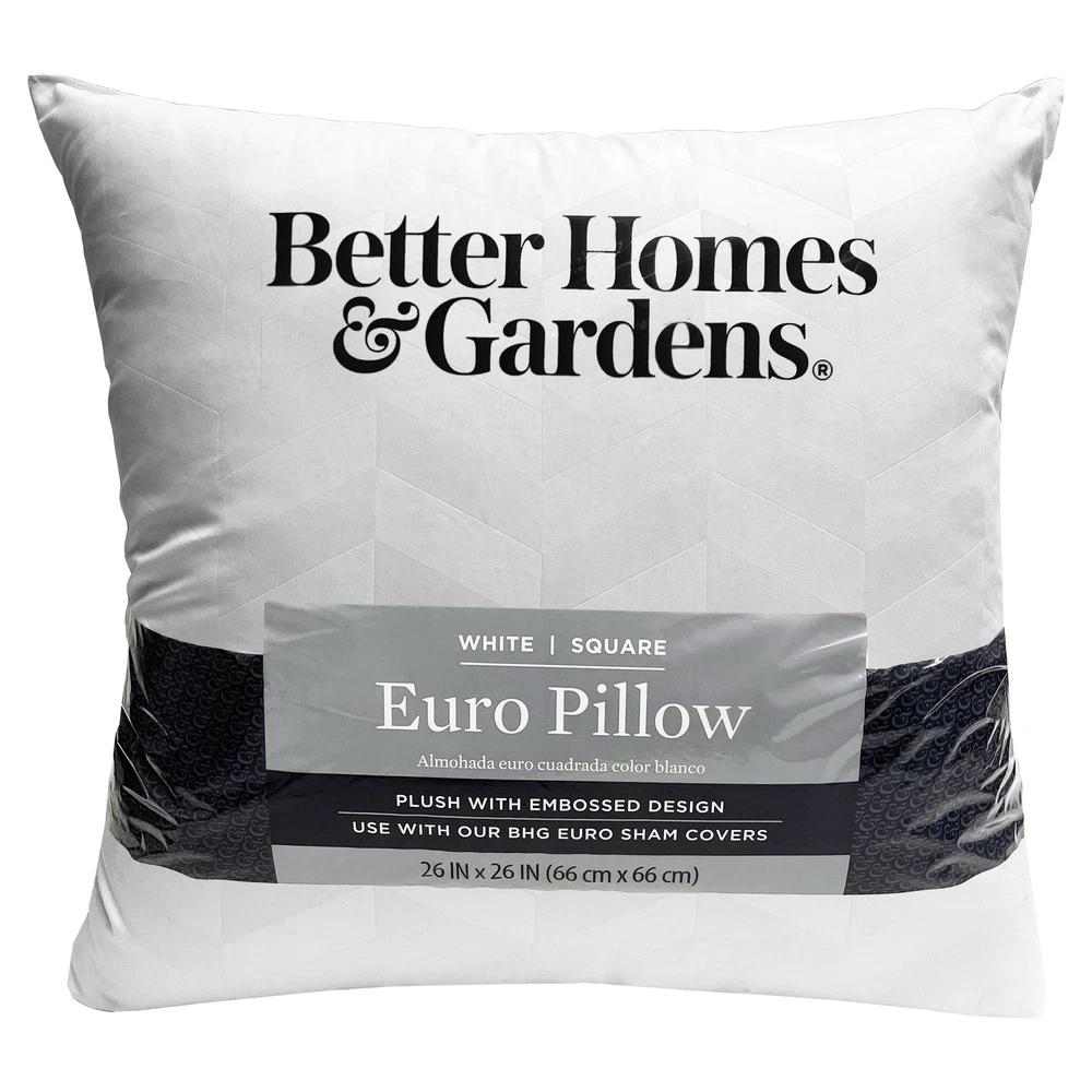 Elevate your décor with the Better Homes & Gardens Euro Pillow. This plush, 26’ x26” pillow fits into most decorative shams, accenting any bed or sofa. This soft, microfiber pillow is filled with lofty hypoallergenic fiber, and provides support for comfort and relaxation, day after day and night after night. It is also machine washable, which makes it easy for care. Quantity - 1 pc 26 x 26 inches Microfiber fabric is soft and luxurious Recycled, hypoallergenic fiber fill is clean, soft, and comfortable