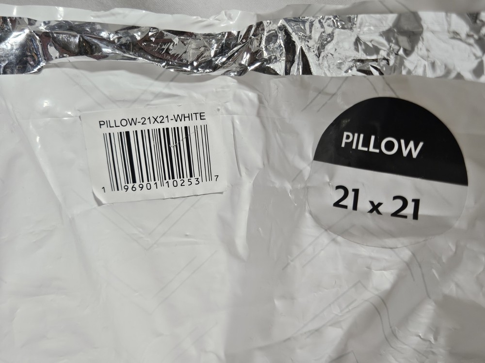 This is a 2pk modern-style Becky Cameron bed pillow insert measuring 21 x 21 inches. It features a square shape, 100% polyester fill material, and a white cotton cover. The pillow is machine washable and hypoallergenic, making it easy to care for and suitable for those with allergies. Made in the United States, this pillow is designed for use in the bedroom. It comes with 2 covers, 1 in natural and 1 in terracotta.