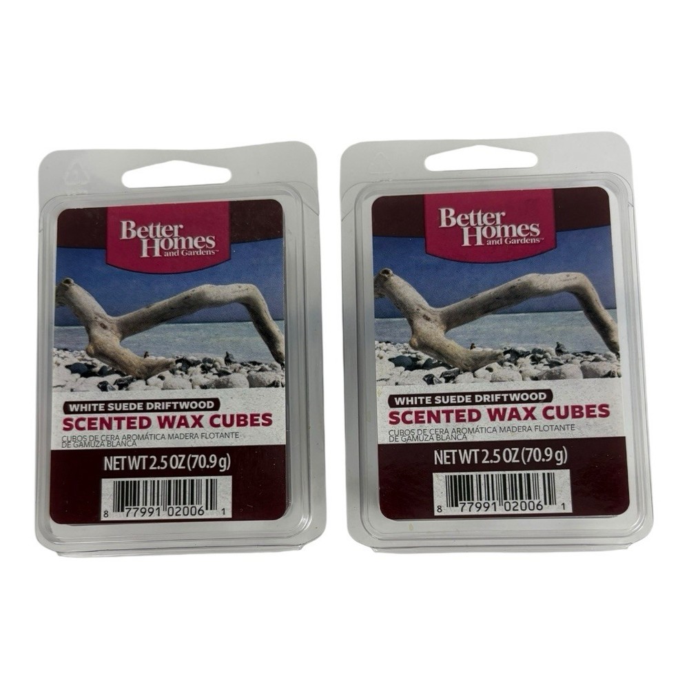 2 pk Better Homes and Gardens Scented Wax Cube White Suede Driftwood 6-Count tsoff