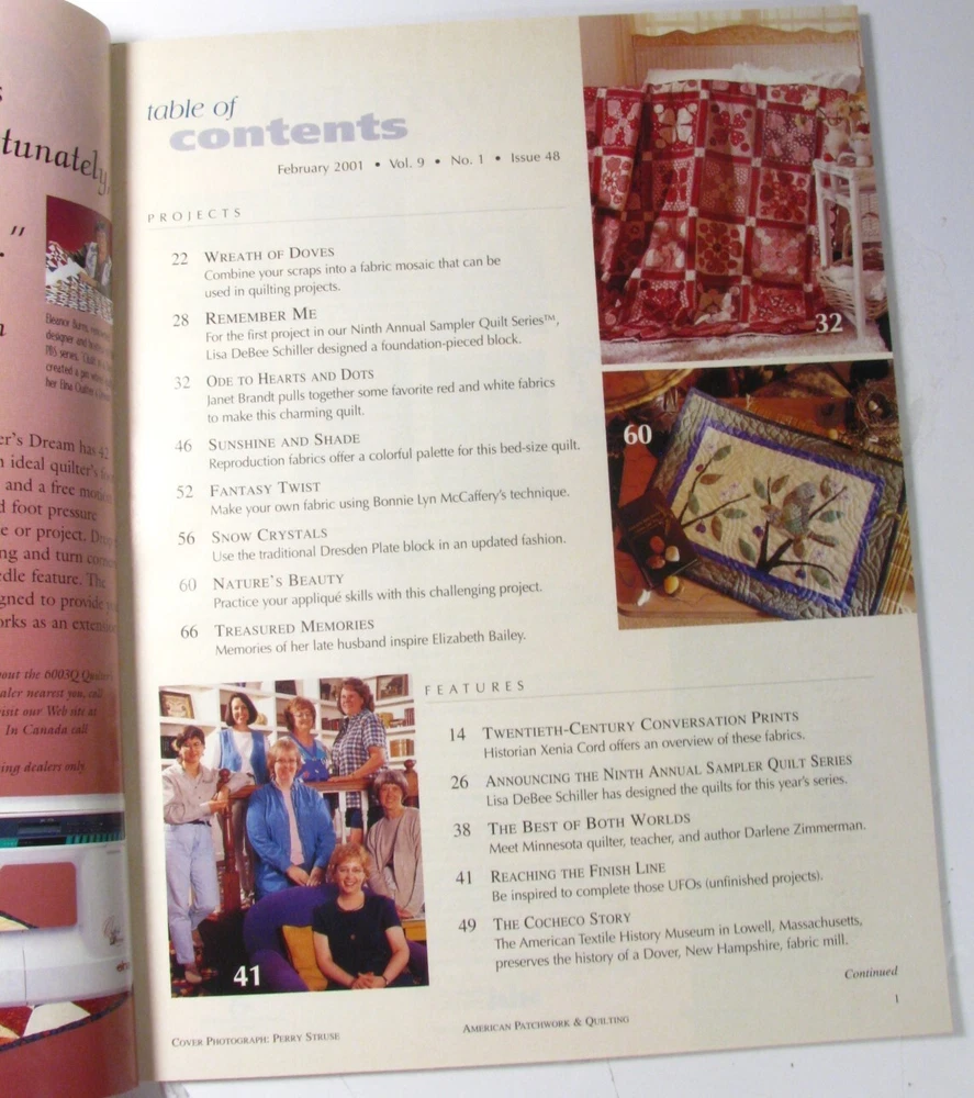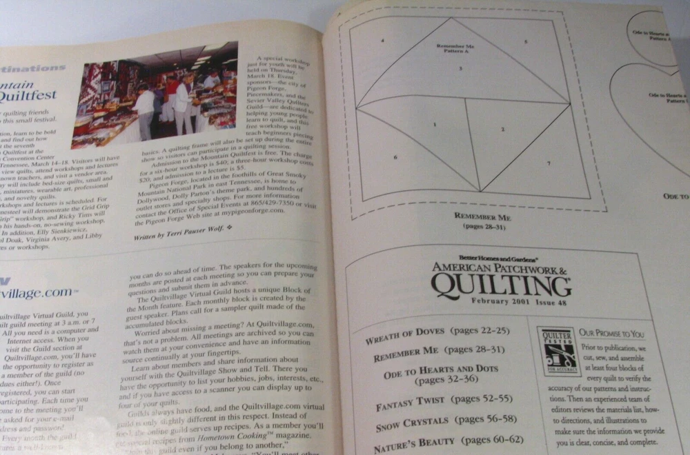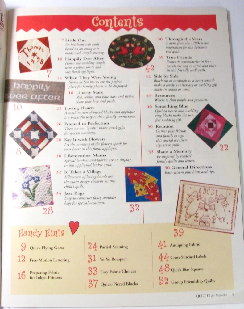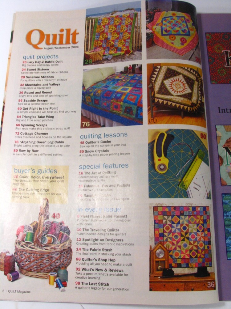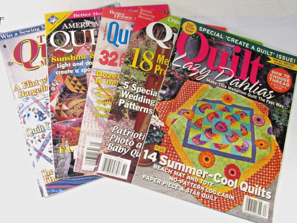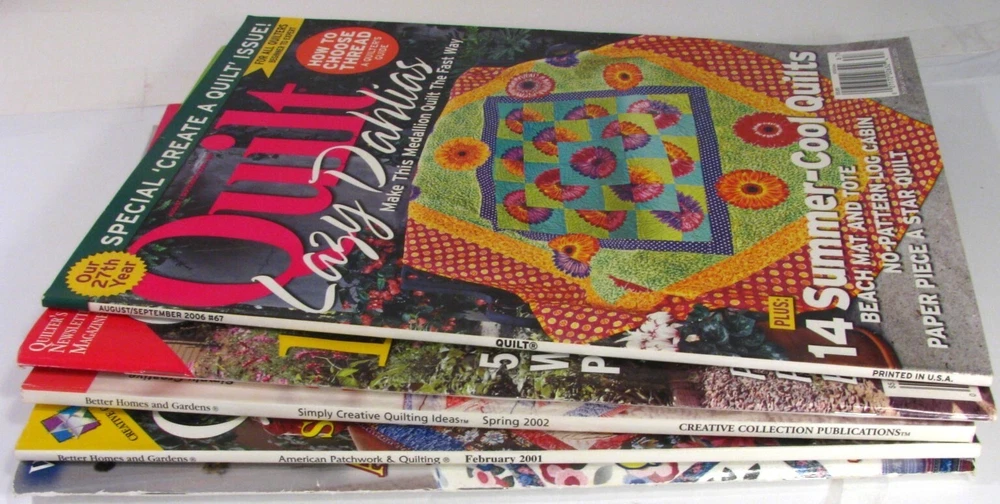 Lots and lots of great quilt patterns in these five magazines from 2001 to 2006. All of the insert sheets are intact and ready to use for your next quilt project. Listed below are the quilting magazines included in this lot of 5: Quilt Magazine 2006 Quilt It for Keepsakes 2004 Better Homes & Gardens Quilting Ideas 2002 Better Homes & Gardens American Patchwork & Quilting February 2001 The Quilter Magazine May 2002