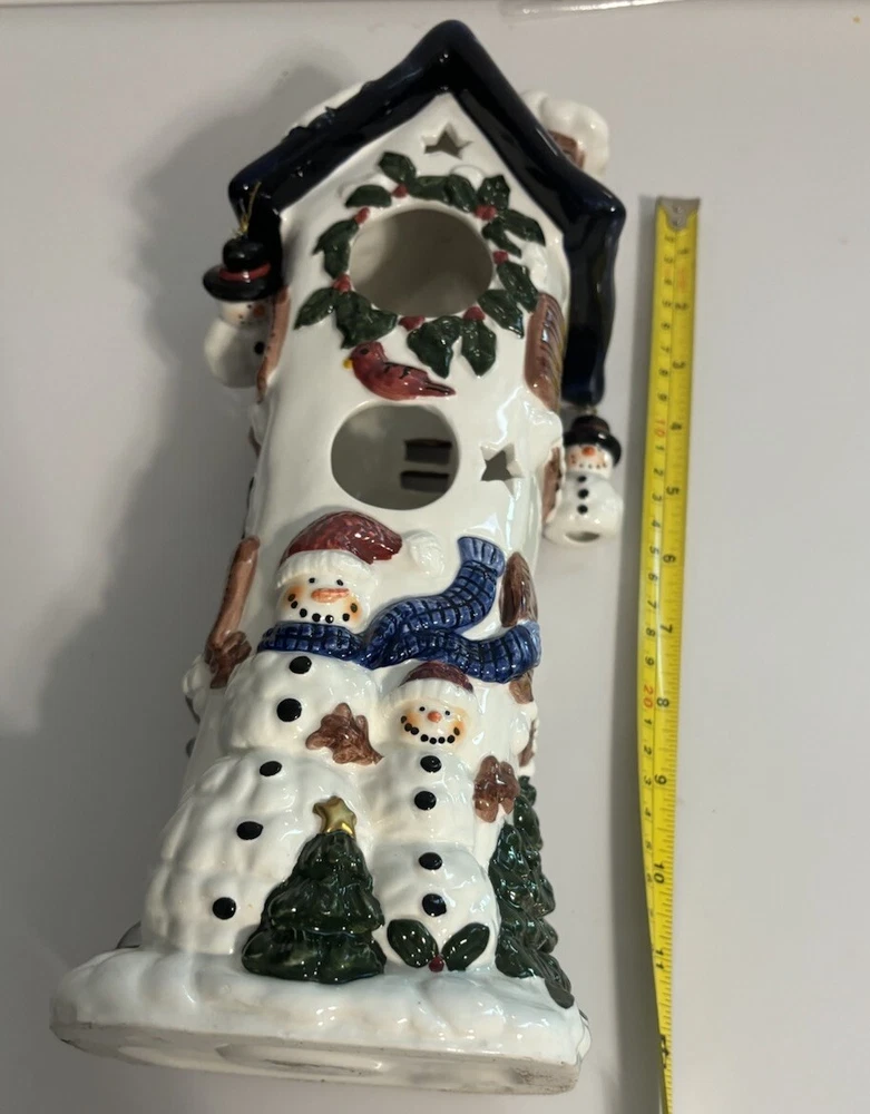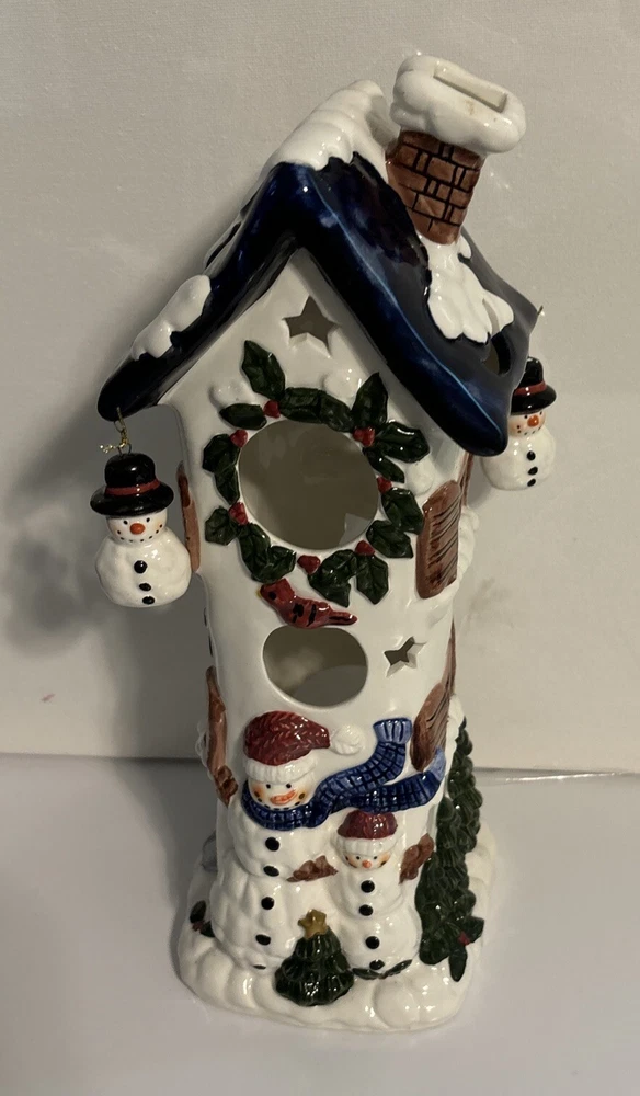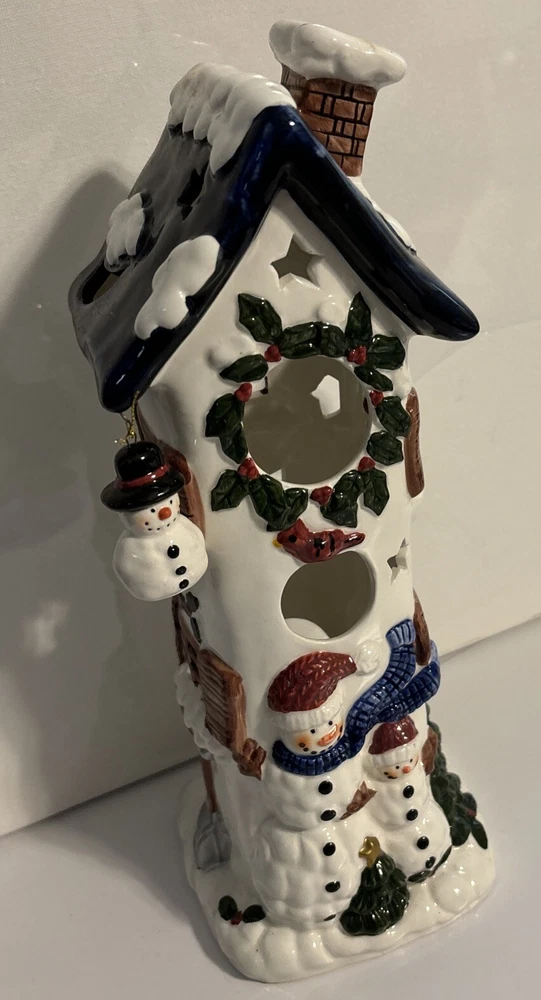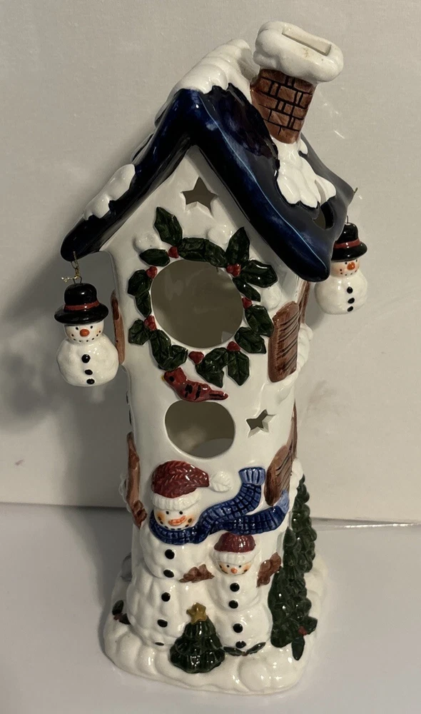 Add a festive touch to your Christmas decor with this charming 2001 BAND Designs Christmas Cozy Lights Snowmen House. The multicolored ceramic & porcelain material with a ceramic finish makes it an ideal addition to your collectibles and holiday & seasonal candles. The design features adorable snowmen and is perfect for any Christmas occasion. Made in China, this collectible item is a must-have for any designer or collector.