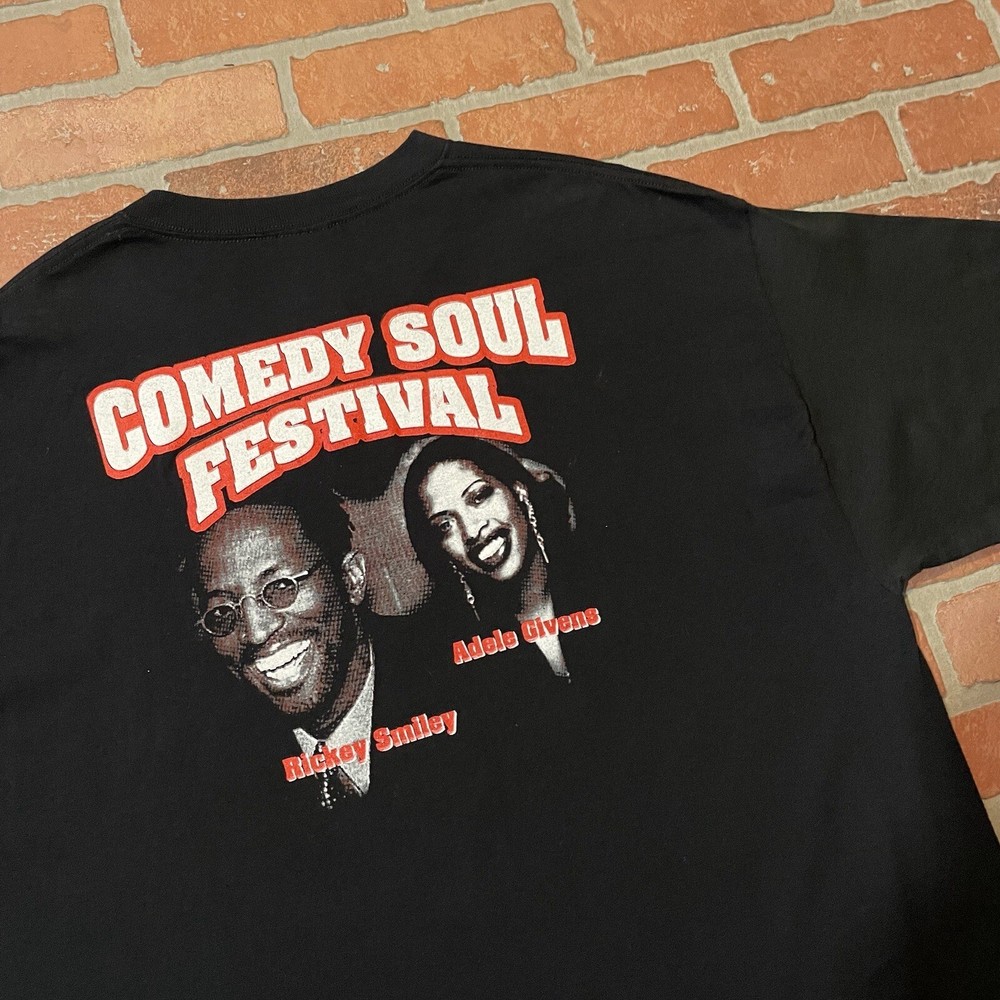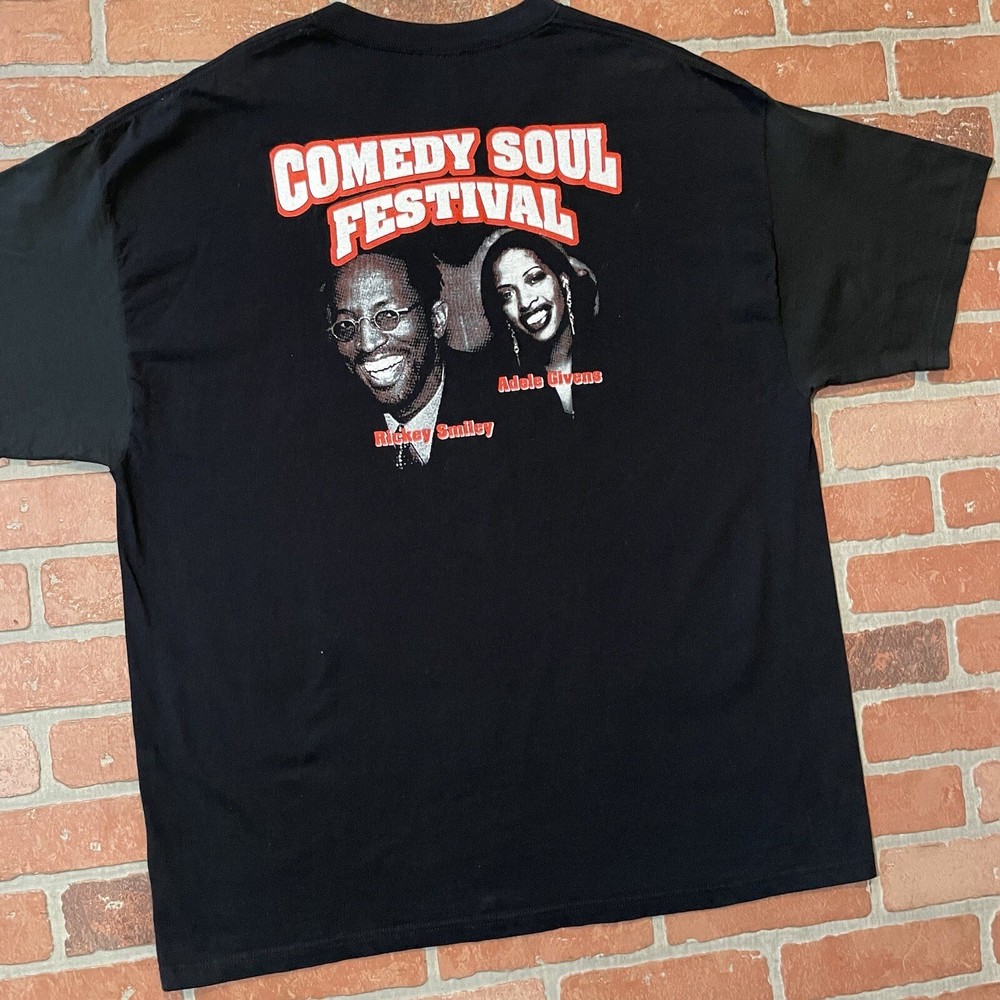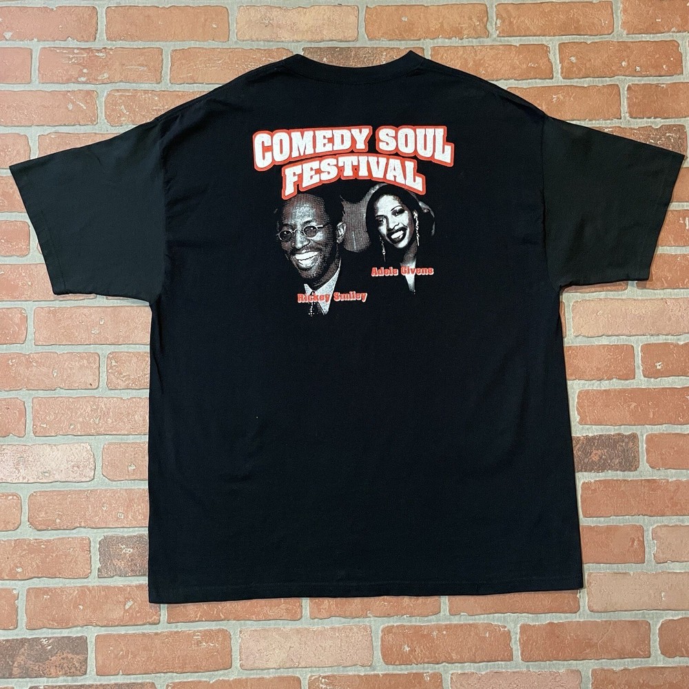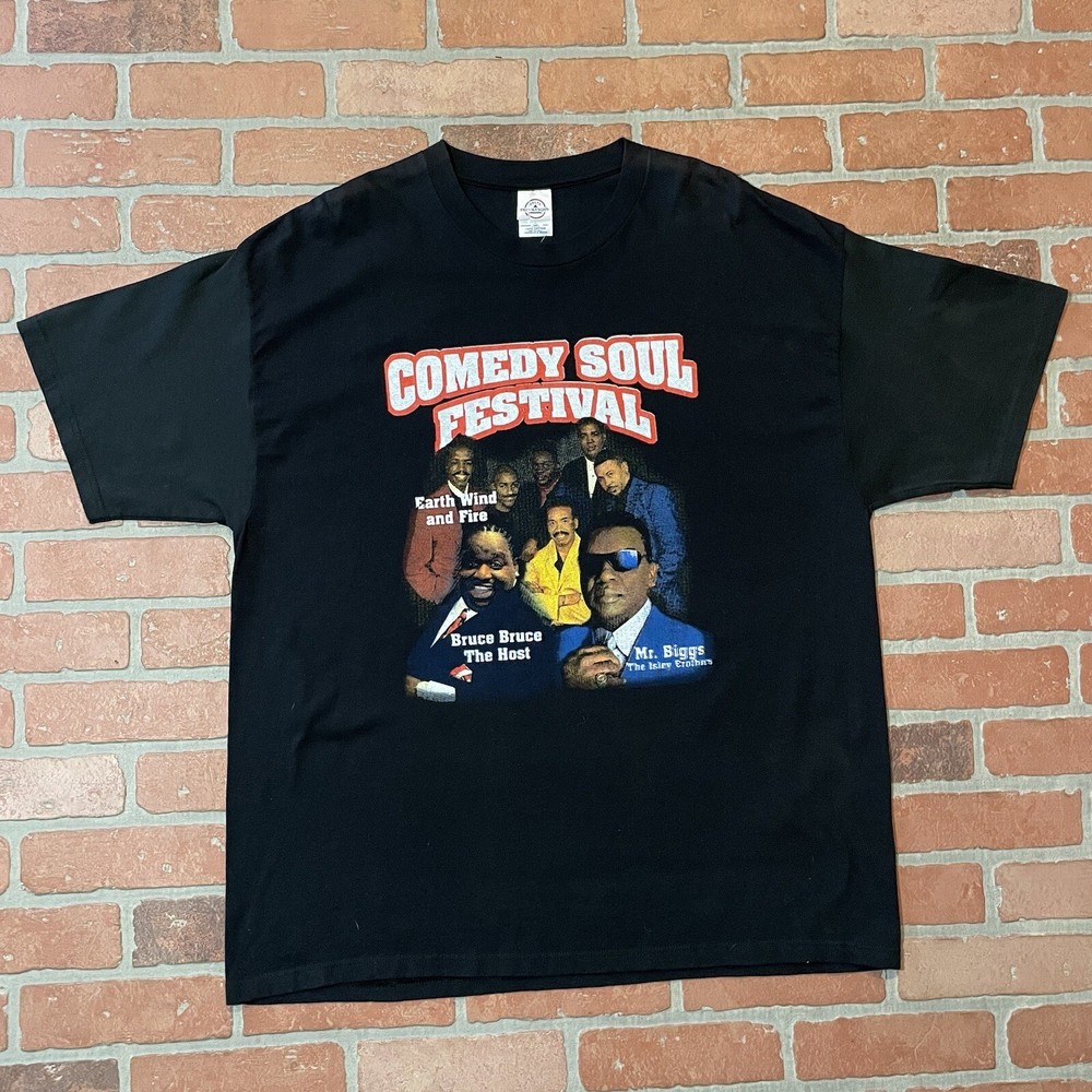 2003 Comedy Soul Festival Shirt. Solid Black Tee. Rap Tee style graphic. Legendary LineUp, Earth Wind & Fire, Bruce Bruce, Rickey Smiley?! IYKYK, Rare 20 Year old shirt in Great condition. Size 2XL, Measurements: Width - 23.5 inches Length - 32.5 inches