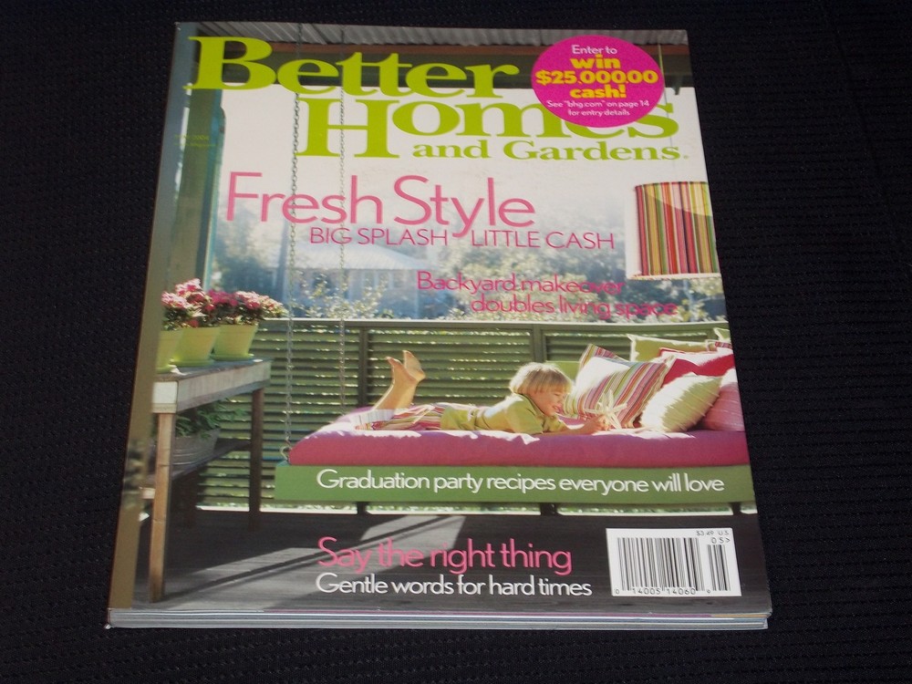 I have an extensive collection of vintage collectibles that I will be offering over the next several weeks and months on eBay. It includes magazines, movie posters, autographs and other paper items. I have a true passion for buying and selling vintage ephemera and hope that you enjoy my listings!!! I have sold on eBay for the past 10 + years. Up for sale is a Better Homes & Gardens magazine from May, 2004 featuring a very nice cover of Fresh Style that would look great framed as a piece of art!! This issue is in overall very good condition showing some minor wear due to age and storage. Please look at the pictures and feel free to ask any questions you might have, as I am happy to answer them. I have many more items to list and if you have further interest in other issues or in large purchases of magazines, please contact me. Happy Bidding!!! I do combine on shipping to make it as cheap as possible if you are buying multiple items. If you are interested in bulk purchases of magazines or movie posters, please contact me and I will be happy to work with you. Also, if you have a large collection of paper collectibles to sell, please contact me and I would be happy to listen to what you have!