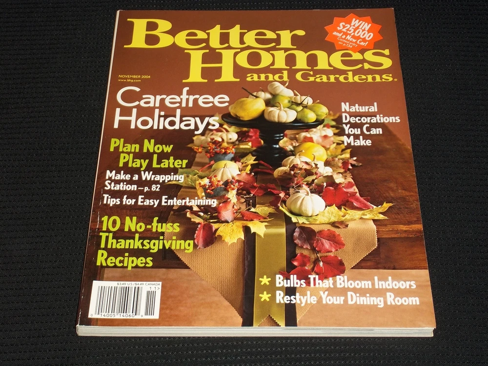I have an extensive collection of vintage collectibles that I will be offering over the next several weeks and months on eBay. It includes magazines, movie posters, autographs and other paper items. I have a true passion for buying and selling vintage ephemera and hope that you enjoy my listings!!! I have sold on eBay for the past 10 + years. Up for sale is a Better Homes & Gardens magazine from November, 2004 featuring a very nice cover of Carefree Holidays that would look great framed as a piece of art!! This issue is in overall very good condition showing some minor wear due to age and storage. Please look at the pictures and feel free to ask any questions you might have, as I am happy to answer them. I have many more items to list and if you have further interest in other issues or in large purchases of magazines, please contact me. Happy Bidding!!! I do combine on shipping to make it as cheap as possible if you are buying multiple items. If you are interested in bulk purchases of magazines or movie posters, please contact me and I will be happy to work with you. Also, if you have a large collection of paper collectibles to sell, please contact me and I would be happy to listen to what you have!