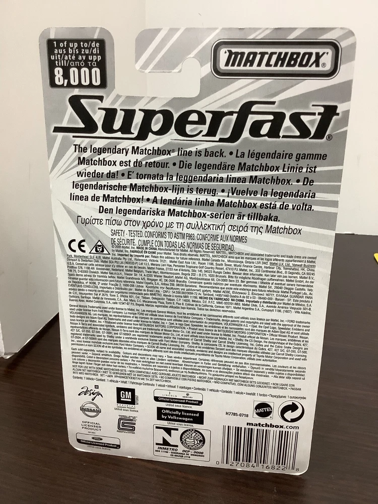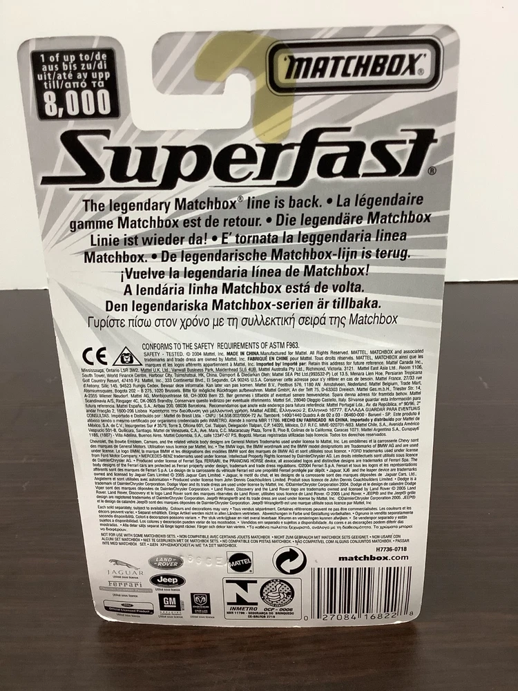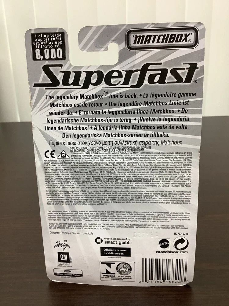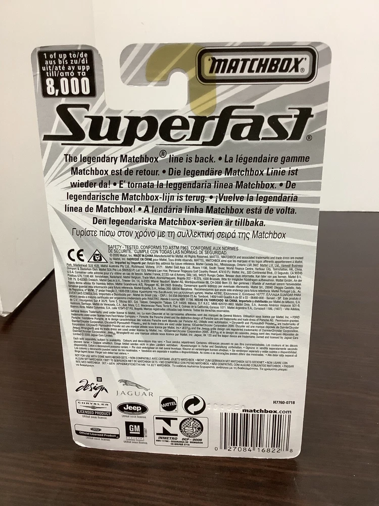 Explore a selection of Matchbox Superfast Cars, a must-have for collectors and enthusiasts alike. Each 1:64 scale model is a miniature masterpiece, capturing the essence of iconic vehicles from Ford, Porsche, Jeep, Volvo, Land Rover, and more. The attention to detail reflects on the legacy of Matchbox's craftsmanship, making these cars a prized addition to any collection. Choose 1 or more and add to your collection! Details: Matchbox Superfast Cars YOU PICK 2005 #40-79 All are Limited Edition Either 1 of 8000 or 1 of 15,500 Each priced separately Save when you buy more Will combine shipping Never opened packaging Never displayed Packaging in very good condition *From a smoke-free and pet-free home Packaging Promise We promise to handle your purchase with care and will always add extra padding and protection to withstand the journey! Your items will come in a corrugated box. It may be a brand new box, perhaps a recycled box which is preferable or you might even get your item in one of Pops’ storage boxes, even better, with the perfectly legible label still on some of them! Thank you! ~~~ Pops was truly one of a kind. He was born in 1931 on a small farm and over the course of his 80-plus years amassed an extraordinary collection. His search for treasures spanned decades, driven not by modern conveniences like the internet or technology, but by mail orders and telephone calls, old catalogs, and handwritten letters exchanged with people from every corner of the country. His entire home became a world unto itself. Hand-built display cases lined the walls, showcasing everything from die-cast model cars, German beer steins, nutcrackers, porcelain figurines and so much more! Now, after his passing, the treasures remain- each one a reminder of Pops' unwavering spirit, his insatiable curiosity, and the deep love he had for the history of the world around him. To honor his memory, we are making some of his items available to collectors who share the same passion he had. Thank you for your purchase and carrying on a part of Pops' legacy. Enjoy!