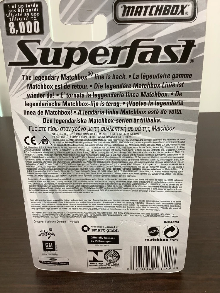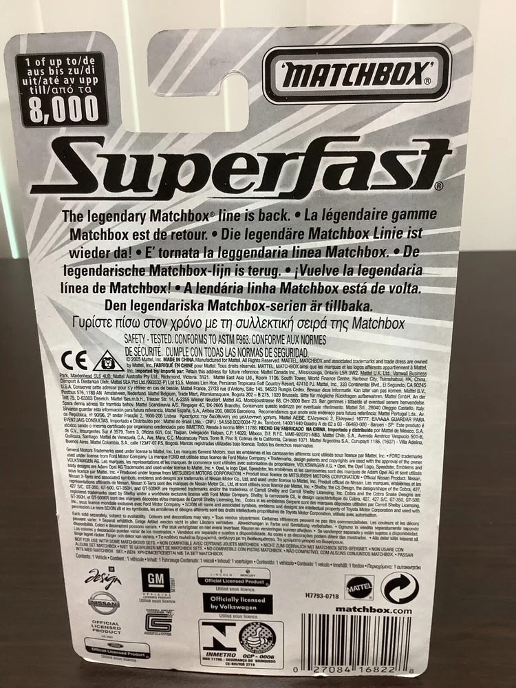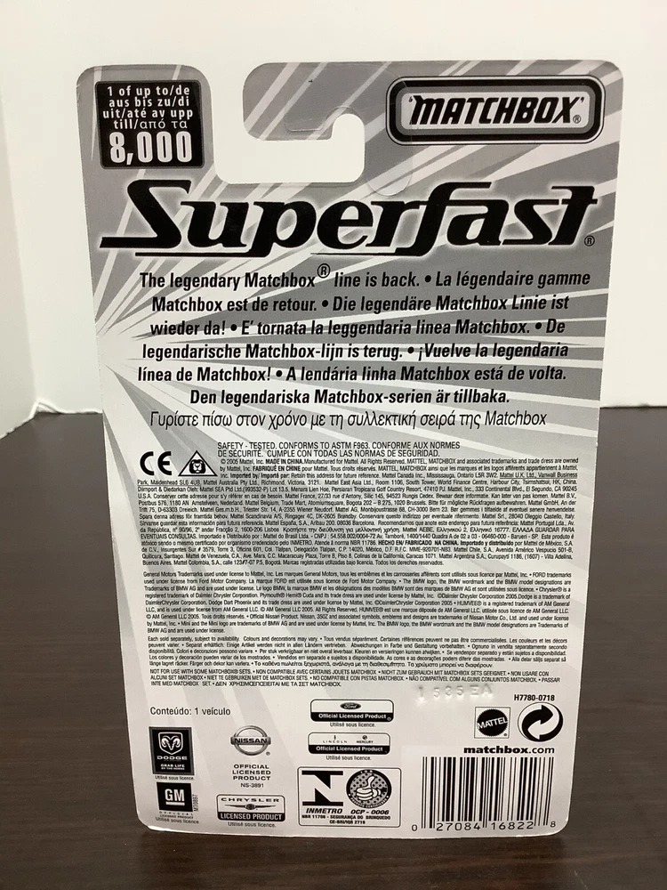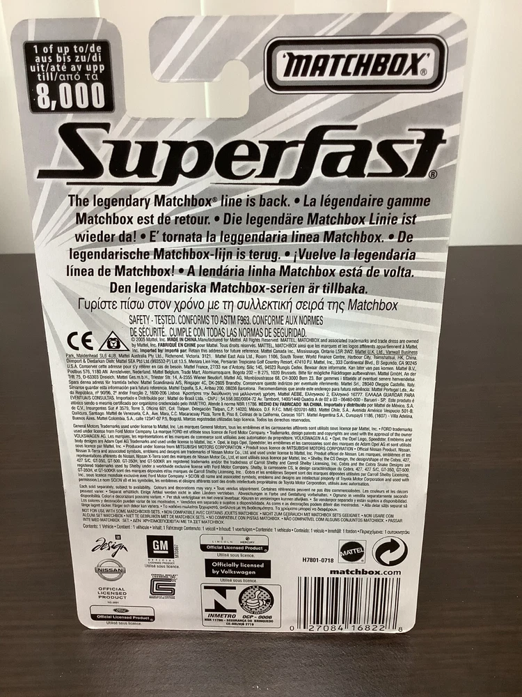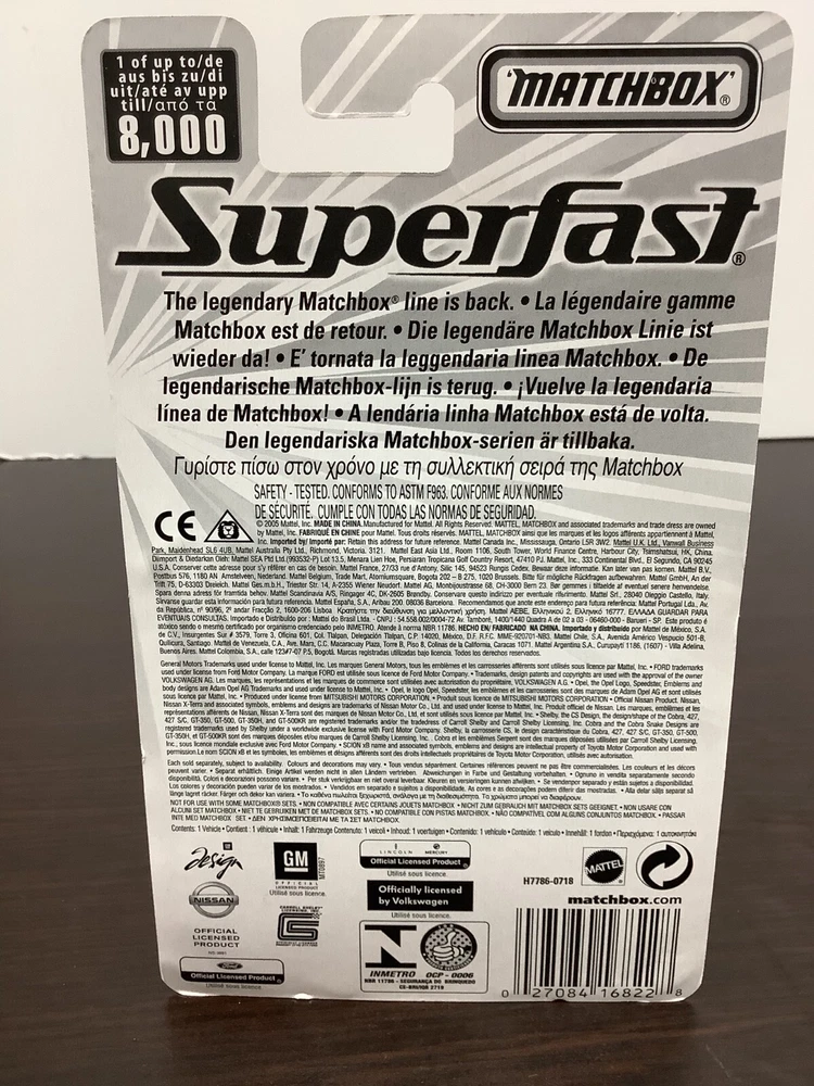 Explore a selection of Matchbox Superfast Cars, a must-have for collectors and enthusiasts alike. Each 1:64 scale model is a miniature masterpiece, capturing the essence of iconic vehicles from Ford, Porsche, Jeep, Volvo, Land Rover, and more. The attention to detail reflects on the legacy of Matchbox's craftsmanship, making these cars a prized addition to any collection. Choose 1 or more and add to your collection! Details: Matchbox Superfast Cars YOU PICK 2005 #40-79 All are Limited Edition Either 1 of 8000 or 1 of 15,500 Each priced separately Save when you buy more Will combine shipping Never opened packaging Never displayed Packaging in very good condition *From a smoke-free and pet-free home Packaging Promise We promise to handle your purchase with care and will always add extra padding and protection to withstand the journey! Your items will come in a corrugated box. It may be a brand new box, perhaps a recycled box which is preferable or you might even get your item in one of Pops’ storage boxes, even better, with the perfectly legible label still on some of them! Thank you! ~~~ Pops was truly one of a kind. He was born in 1931 on a small farm and over the course of his 80-plus years amassed an extraordinary collection. His search for treasures spanned decades, driven not by modern conveniences like the internet or technology, but by mail orders and telephone calls, old catalogs, and handwritten letters exchanged with people from every corner of the country. His entire home became a world unto itself. Hand-built display cases lined the walls, showcasing everything from die-cast model cars, German beer steins, nutcrackers, porcelain figurines and so much more! Now, after his passing, the treasures remain- each one a reminder of Pops' unwavering spirit, his insatiable curiosity, and the deep love he had for the history of the world around him. To honor his memory, we are making some of his items available to collectors who share the same passion he had. Thank you for your purchase and carrying on a part of Pops' legacy. Enjoy!