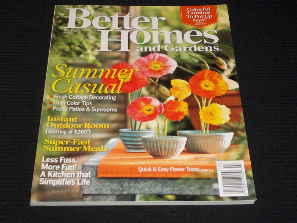 I have an extensive collection of vintage collectibles that I will be offering over the next several weeks and months on eBay. It includes magazines, movie posters, autographs and other paper items. I have a true passion for buying and selling vintage ephemera and hope that you enjoy my listings!!! I have sold on eBay for the past 10 + years. Up for sale is a Better Homes & Gardens magazine from July, 2008 featuring a very nice cover of Summer Casual that would look great framed as a piece of art!! This issue is in overall very good condition showing some minor wear due to age and storage. Please look at the pictures and feel free to ask any questions you might have, as I am happy to answer them. I have many more items to list and if you have further interest in other issues or in large purchases of magazines, please contact me. Happy Bidding!!! I do combine on shipping to make it as cheap as possible if you are buying multiple items. If you are interested in bulk purchases of magazines or movie posters, please contact me and I will be happy to work with you. Also, if you have a large collection of paper collectibles to sell, please contact me and I would be happy to listen to what you have!