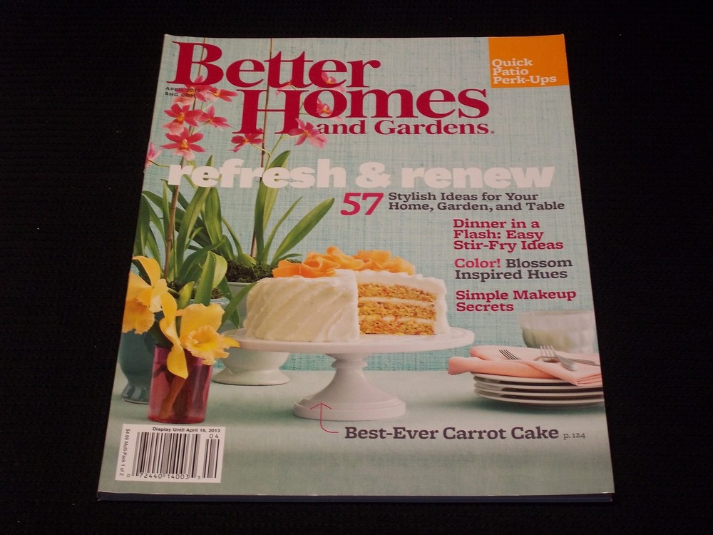 I have an extensive collection of vintage collectibles that I will be offering over the next several weeks and months on eBay. It includes magazines, movie posters, autographs and other paper items. I have a true passion for buying and selling vintage ephemera and hope that you enjoy my listings!!! I have sold on eBay for the past 10 + years. Up for sale is a Better Homes & Gardens magazine from April, 2013 featuring a very nice cover of Refresh & Renew that would look great framed as a piece of art!! This issue is in overall very good condition showing some minor wear due to age and storage. Please look at the pictures and feel free to ask any questions you might have, as I am happy to answer them. I have many more items to list and if you have further interest in other issues or in large purchases of magazines, please contact me. Happy Bidding!!! I do combine on shipping to make it as cheap as possible if you are buying multiple items. If you are interested in bulk purchases of magazines or movie posters, please contact me and I will be happy to work with you. Also, if you have a large collection of paper collectibles to sell, please contact me and I would be happy to listen to what you have!
