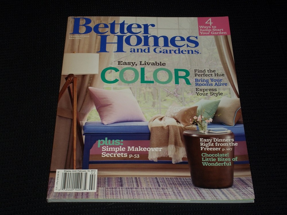 I have an extensive collection of vintage collectibles that I will be offering over the next several weeks and months on eBay. It includes magazines, movie posters, autographs and other paper items. I have a true passion for buying and selling vintage ephemera and hope that you enjoy my listings!!! I have sold on eBay for the past 10 + years. Up for sale is a Better Homes & Gardens magazine from February, 2013 featuring a very nice cover of Easy Livable Color that would look great framed as a piece of art!! This issue is in overall very good condition showing some minor wear due to age and storage. Please look at the pictures and feel free to ask any questions you might have, as I am happy to answer them. I have many more items to list and if you have further interest in other issues or in large purchases of magazines, please contact me. Happy Bidding!!! I do combine on shipping to make it as cheap as possible if you are buying multiple items. If you are interested in bulk purchases of magazines or movie posters, please contact me and I will be happy to work with you. Also, if you have a large collection of paper collectibles to sell, please contact me and I would be happy to listen to what you have!
