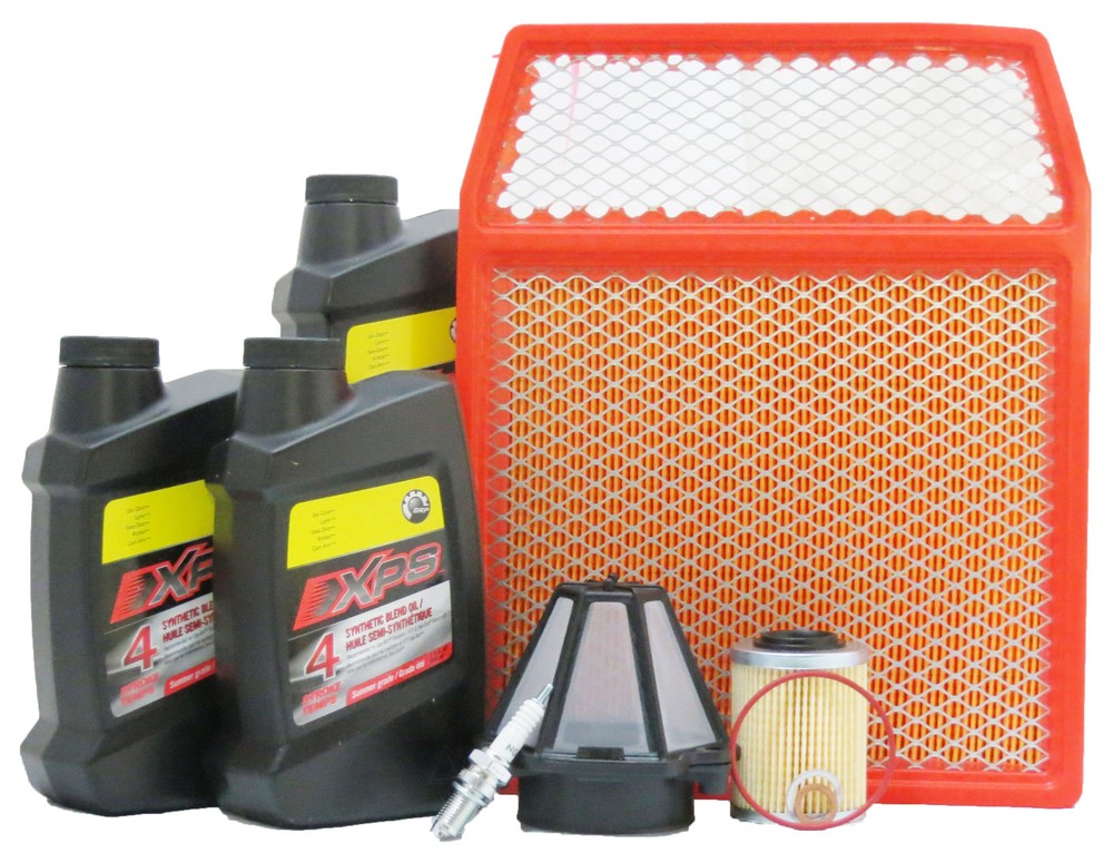 Oil Offers Optimal Engine Protection And Performance in All Conditions Oil Improves Can Am Roadster and ATV Engine and Transmission Performance High Load Resistance Superior Protection Against Rust and Corrosion During Storage Periods ***Kit includes 3 quarts of XPS 4 stroke oil, One OEM Oil Filter, One OEM Pre Screen Filter, One OEM Air Filter, and One Spark Plug