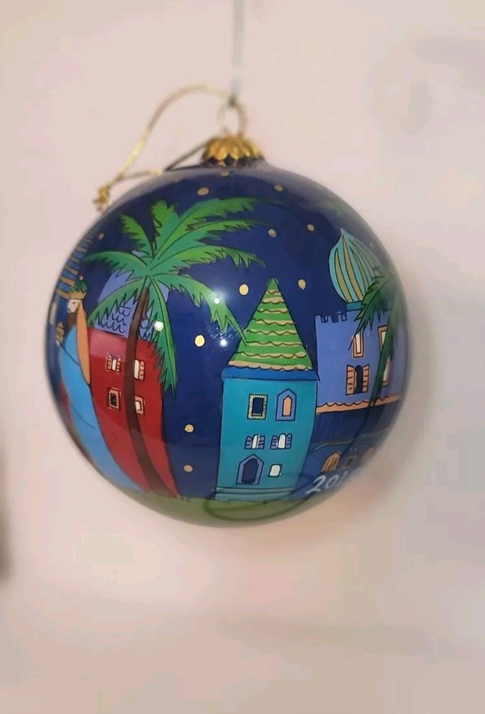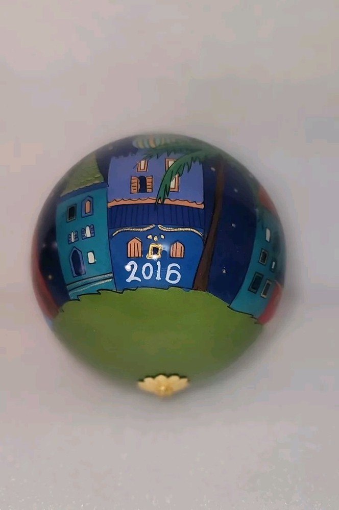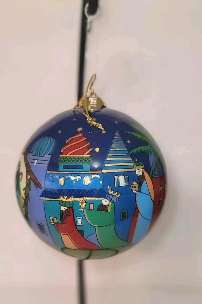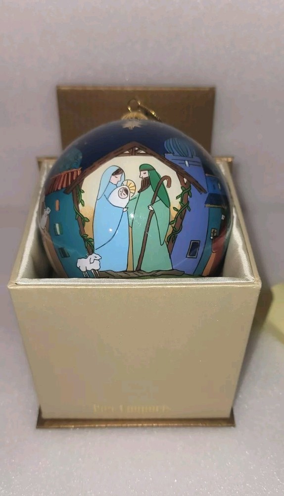 The 2016 Pier 1 Imports Li Bien Nativity Christmas Ornament is a round, medium-sized glass ornament featuring a hand-painted Nativity scene. It is artist-designed and part of the Nativity theme, making it a special addition to Christmas decor. This multicolor ornament is 4 inches in length and comes as a single item. Thanks for looking at our listing! Shipping will be based on your location Please email us with any questions Papa's Treasures