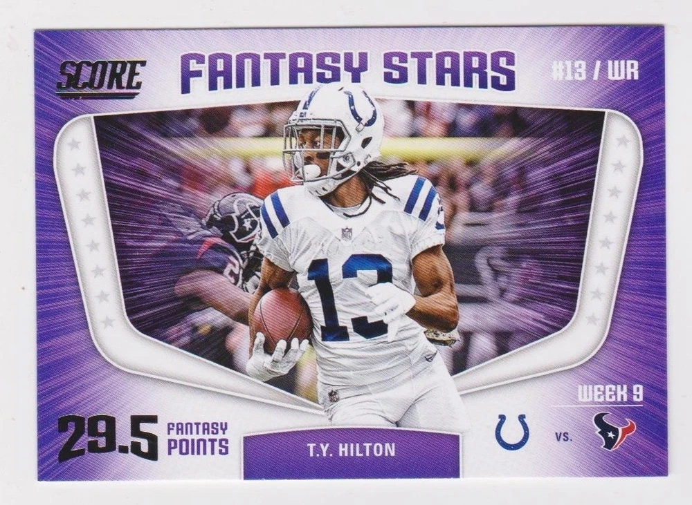 ITEM FOR SALE 2018 Panini: Score Fantasy Stars Complete Your Set! - You Choose! Condition Near Mint on Average Cards pulled from packs are assumed to be NR-MT/MT on average. All cards are prone to print lines, scratches, centering issues & corner/edge issues during printing. While condition is assumed, it is not guaranteed. Shipping Standard Shipping - eBay Standard Envelope 12+ Gets Free Upgrade To Ground Advantage Includes Tracking (Domestic Only) UPDATE: All items with eBay Standard Envelope, with shipping price listed as $0.90 or less will ship in card savers. While many postal units are taking these with toploaders, many still won't. They will either return the envelope back to the seller or charge the buyer extra for having a rigid item inside it. If you want a toploader used it will come at the $1.15 cost and you must ask prior to making your purchase. No changes will be made once item is paid for.
