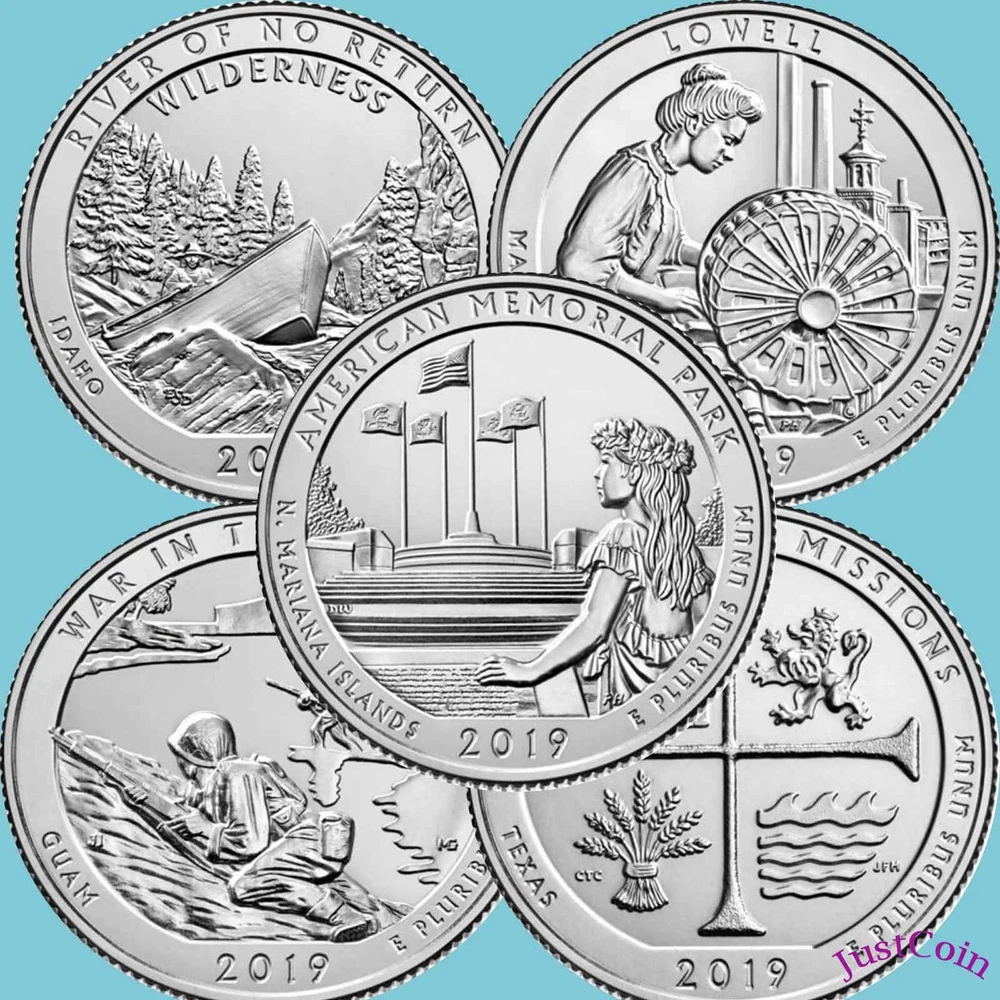 AMERICA THE BEAUTIFUL® PROGRAM 2019 LOWELL NATIONAL HISTORICAL PARK (MASSACHUSETTS) 2019 AMERICAN MEMORIAL PARK (NORTHERN MARIANA ISLANDS) 2019 WAR IN PACIFIC NATIONAL HISTORICAL PARK (GUAM) 2019 SAN ANTONIO MISSIONS NATIONAL HISTORICAL PARK (TEXAS) 2019 FRANK CHURCH RIVER OF NO RETURN WILDERNESS (IDAHO) 5(P) Philadelphia Uncirculated Quarters Total. All quarters available in store and ready for shipment These Quarters are Business Strike Uncirculated from US Mint. Some coins aren’t perfect and may have marks, dings, tarnished or blemished during Minting Process or may get toning. This Item has multiple listings so Item You’ll receive will be not exact but similar to listed Picture. If You’re looking for Perfect High Grade Coins then Please consider another Certified by Third Party Grading Service. All Quarters from U.S.Mint original wrapped rolls or bags. Carefully places by white cotton gloves in 2x2 cardboard holders. Shipment. FREE Shipping within U.S. by USPS First Class Mail. Return. I have a simple RETURN POLICY, if you don’t like it SEND IT BACK within 7 days after receiving. Item must be returned in same condition as received. Money refunded less shipping cost.