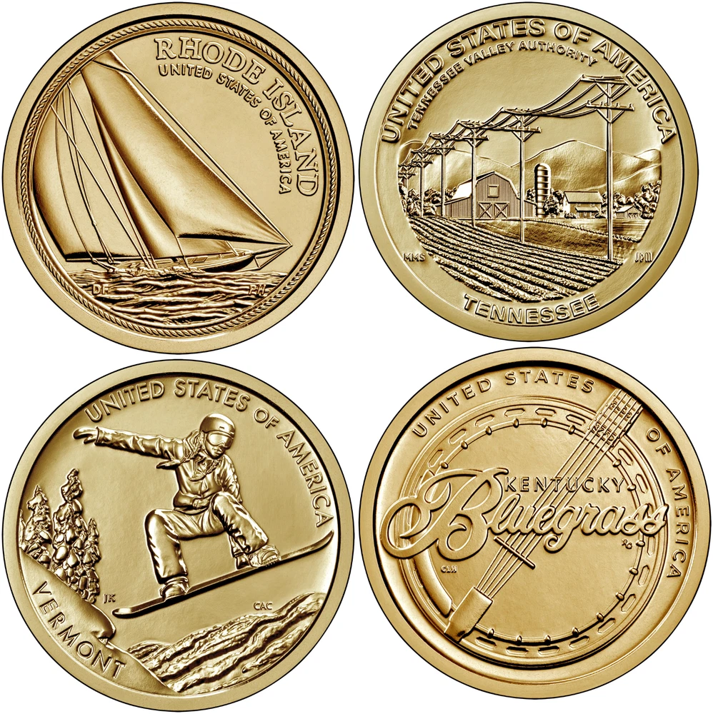 This listing is for a complete set of all 2022 Innovation Dollar coins from both the Philadelphia and Denver Mint (PD). In total, this includes 8 coins. The 2022 set includes Rhode Island, Vermont, Tennessee, and Kentucky. Information and Photos from US Mint. These MS coins are business strike coins which may contain some scratches or marks from the mint packaging and shipping process. Let me know if you have any questions and thank you for looking.
