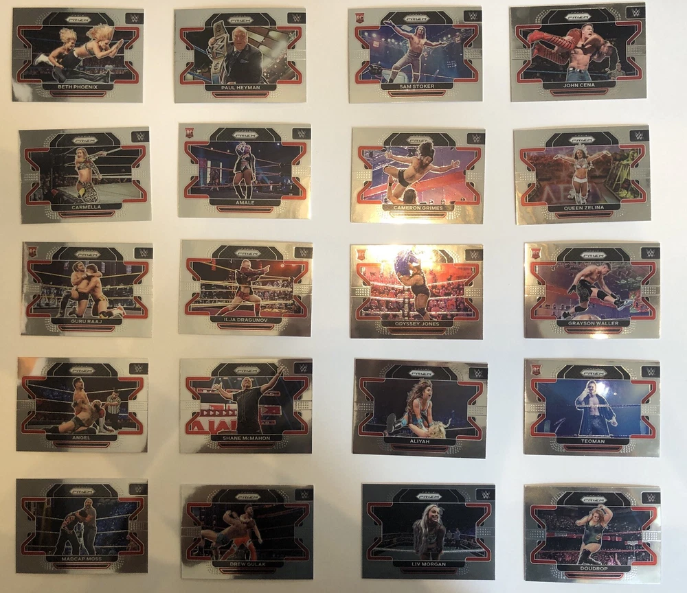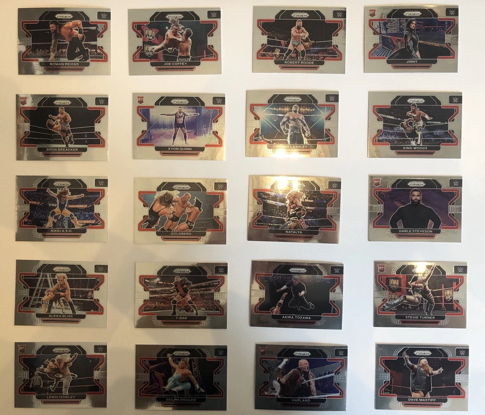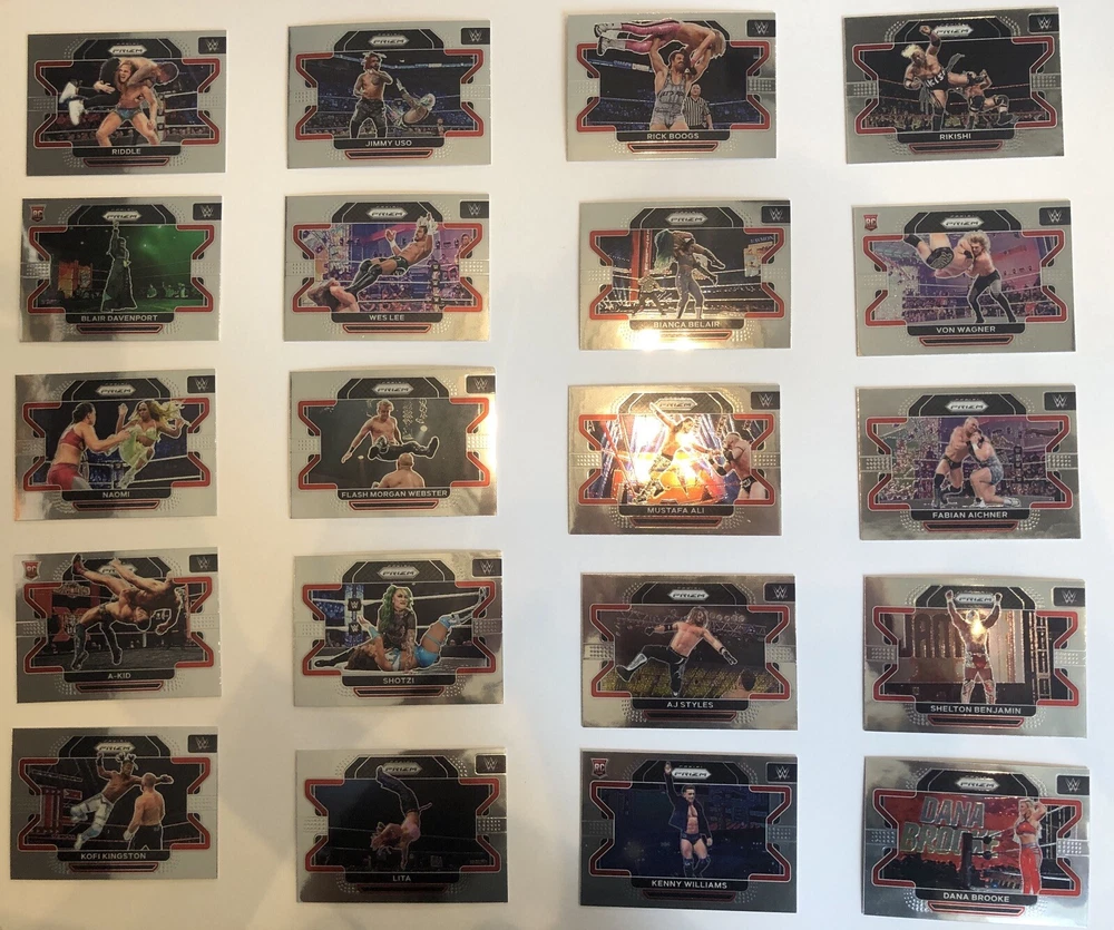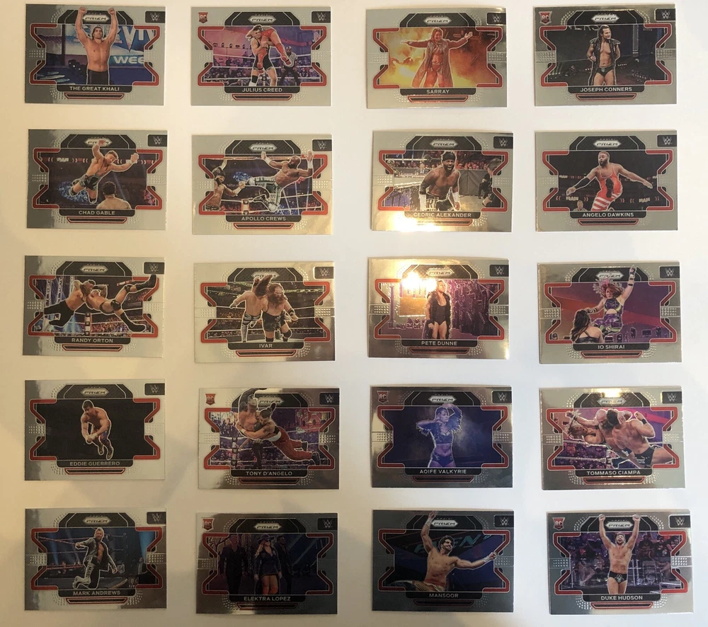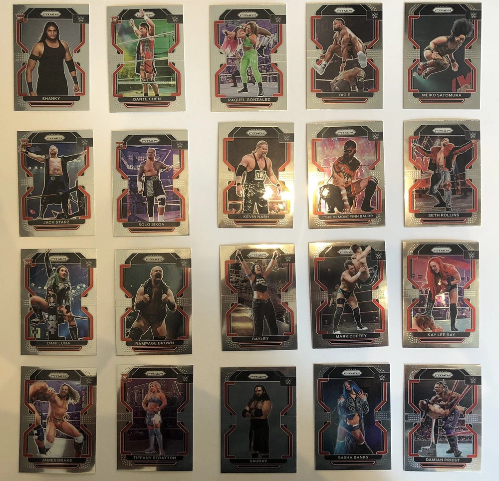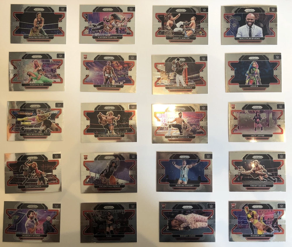 2022 Panini Prizm WWE Wresting Debut Base Cards 1-200 - COMPLETE YOUR SET! Cards are pack fresh and pulled from various hobby boxes. Cards will be shipped in a penny sleeve and top loader. $.99 shipping for the first card and then $.50 for each additional. Please request an invoice at checkout. Thanks for checking this out and let me know if you have any questions.