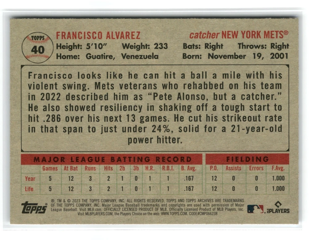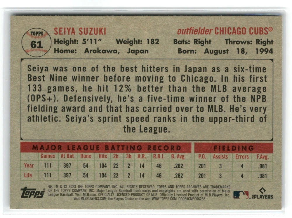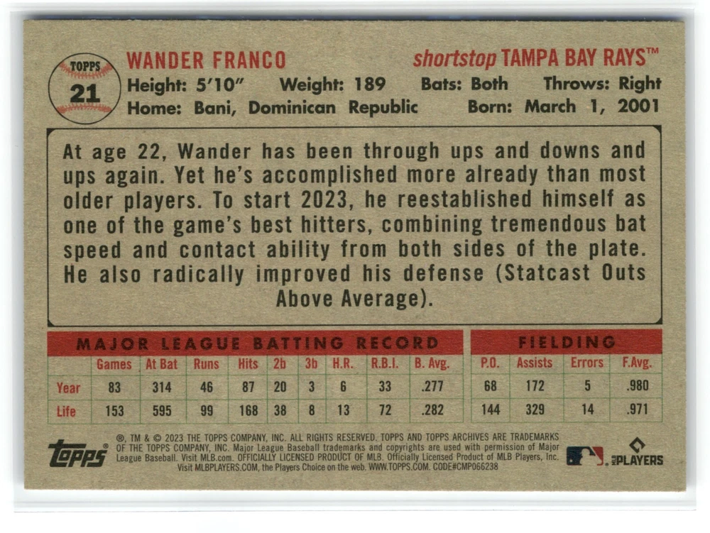 Pick a card and complete your set of 2023 Topps Archives Baseball. These cards are raw and not graded, and I am not a professional grader. Condition of raw cards can be subjective, so please refer to the scans to determine the condition of the card. I use a high definition scanner, and I scan each card within a penny sleeve, to avoid potential damage to the card. Penny sleeves are generally brand new, although some may have slight markings on the outside that do not affect the card. If you desire any photos of the actual card without a penny sleeve, please let me know, and I can respond within one or two business days. Each card shown is the actual card you will receive. However, please note that some card types, such as chrome, prism, or similar cards, or certain holo parallels, may not appear as precise as their actual color and appearance . All cards are in the NM (Near Mint) or above range unless otherwise noted. (Please see photos.) I am pleased to offer a discount for purchasing multiple cards. If you choose to purchase multiple cards, I will combine them in one shipment. I take pride in providing great service, safety, and quality when it comes to shipping. I will ship within 2 business days, and more likely sooner than that. Free shipping! Please check out my other listings for more great cards and collectibles, feedback is greatly appreciated, and please remember to save me as a seller as I will be listing thousands of cards throughout the coming months. Thank you for your business! Jimmy Springs