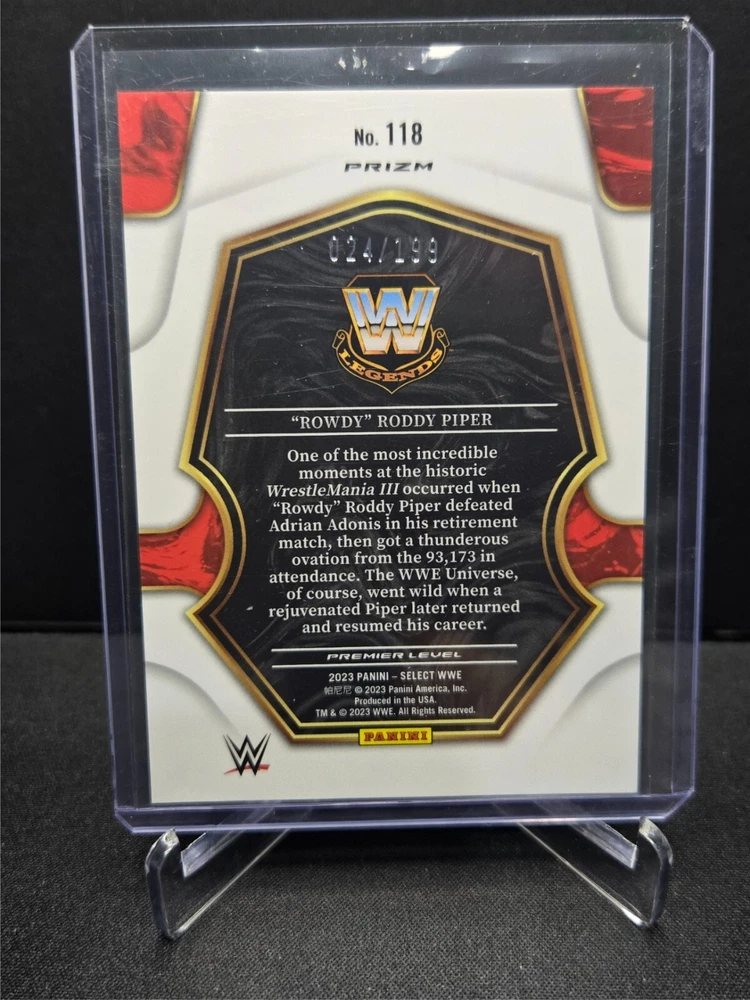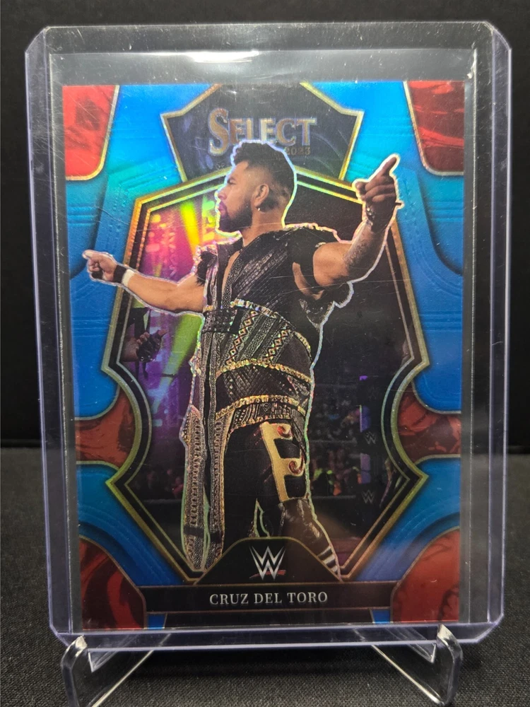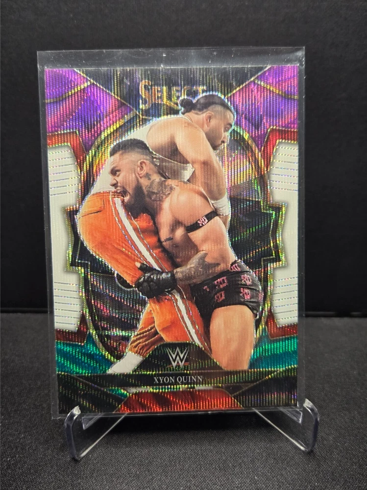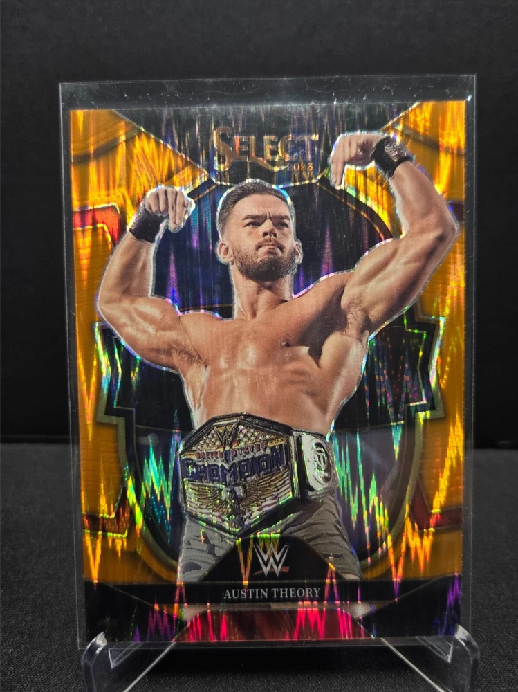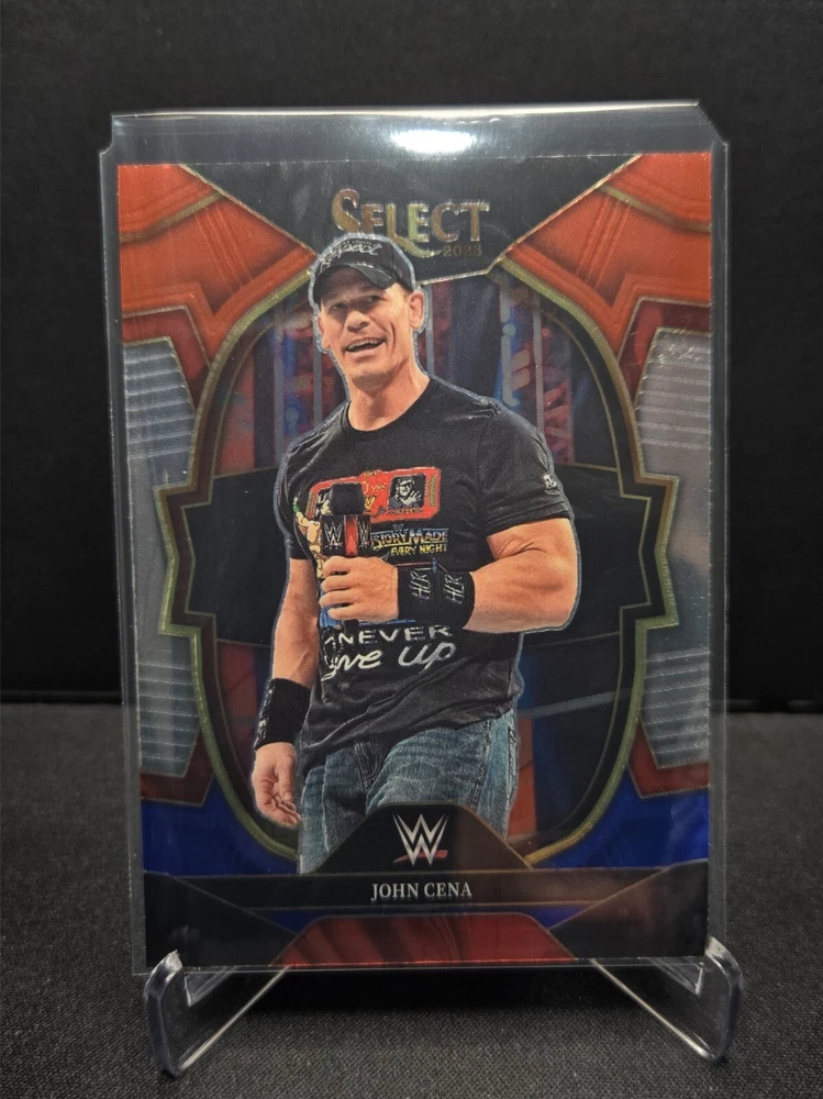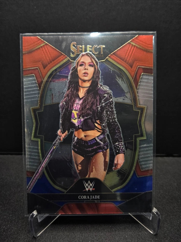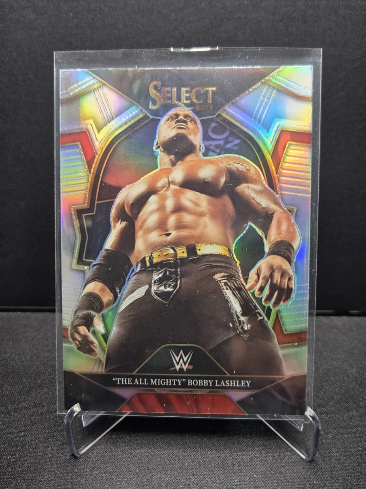 Complete your 2023 WWE Panini Select collection with this exclusive Prizm variety set. Elevate your assortment with the iconic Prizm cards featuring prominent WWE superstars like Roman Reigns, Becky Lynch, Seth Rollins, and more. Each card captures the essence of the wrestler's spirit, whether it's The Rock's undeniable charisma or Charlotte Flair's fierce determination. Panini's craftsmanship ensures high-quality prints and vibrant designs, making these cards a standout addition to any collection. With a base set comprising of Bobby Lashley, Cora Jade, and The American Nightmare Cody Rhodes, as well as a few Stone Cold Steve Austin specialty cards, you'll have the full spectrum of WWE glory right at your fingertips.