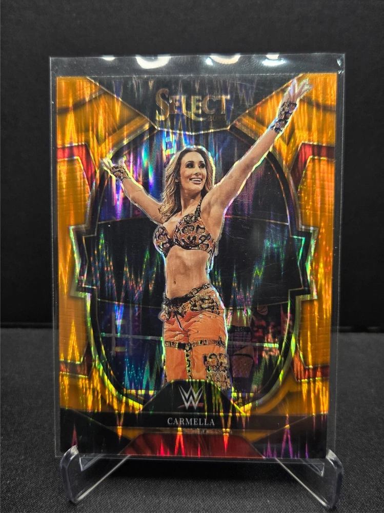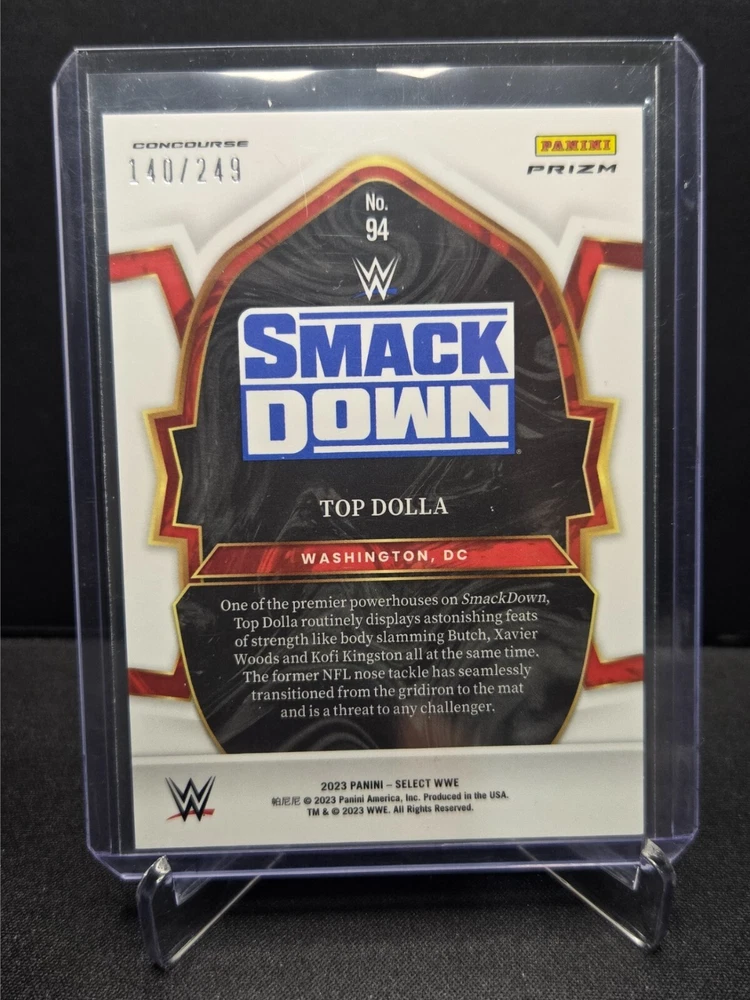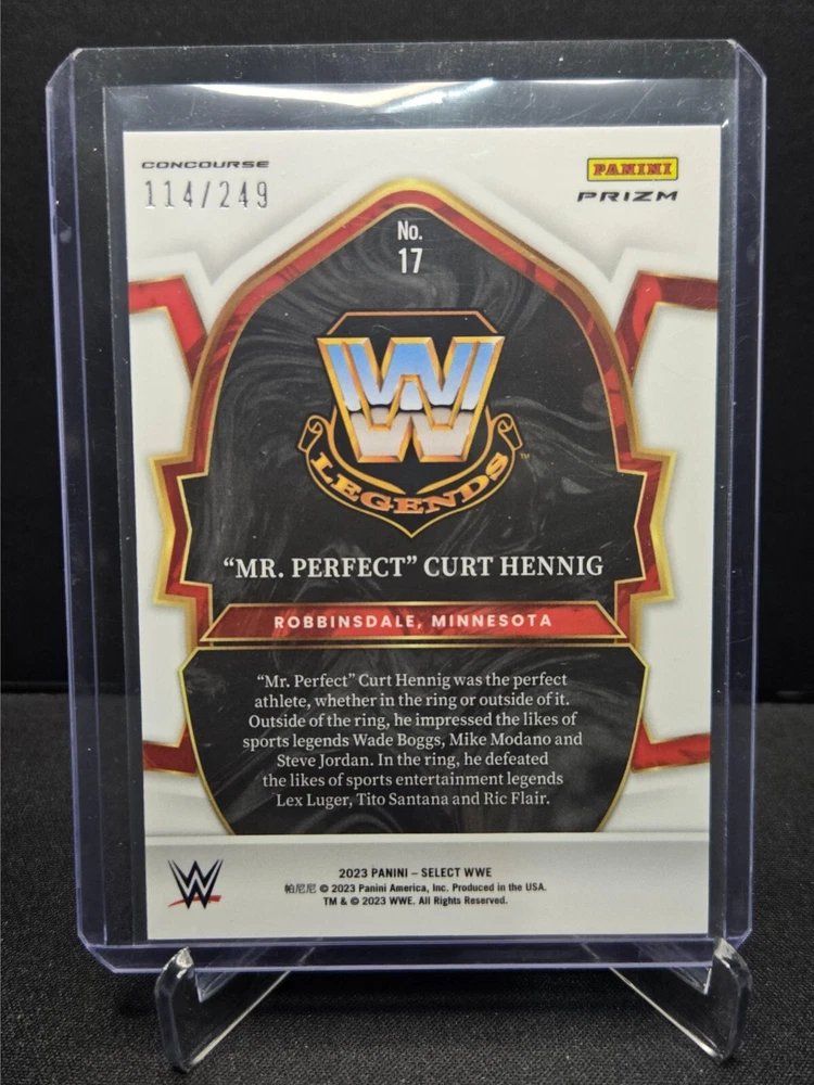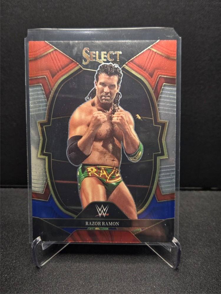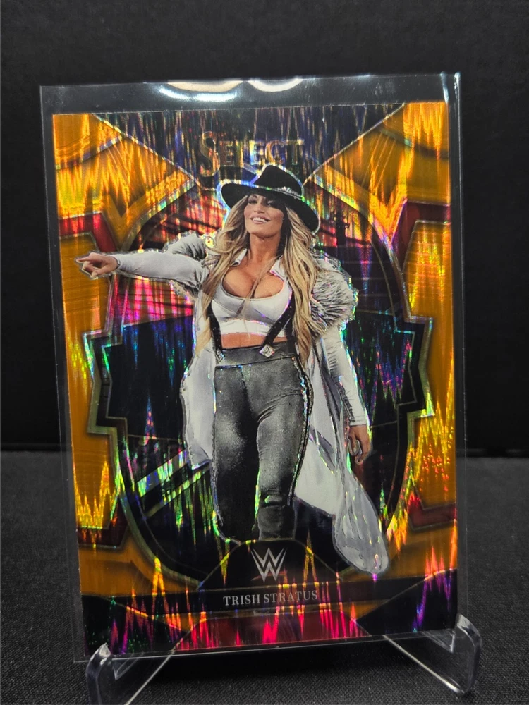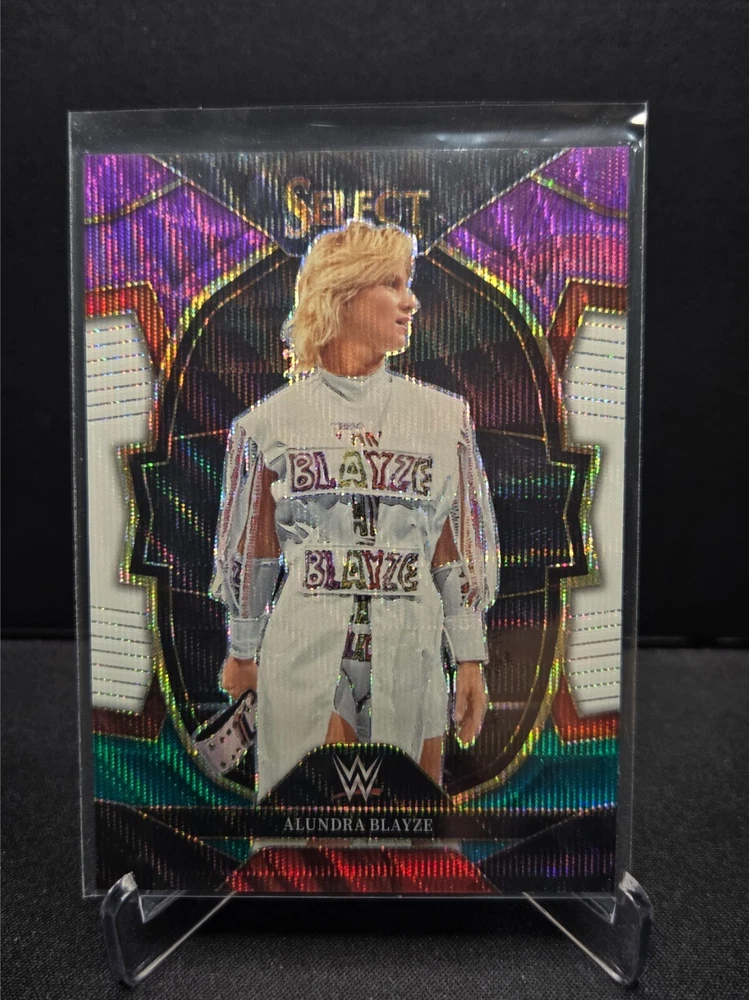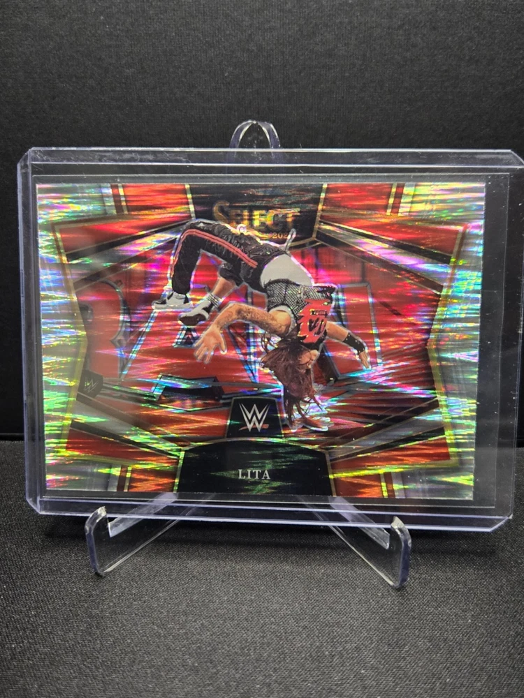 Complete your 2023 WWE Panini Select collection with this exclusive Prizm variety set. Elevate your assortment with the iconic Prizm cards featuring prominent WWE superstars like Roman Reigns, Becky Lynch, Seth Rollins, and more. Each card captures the essence of the wrestler's spirit, whether it's The Rock's undeniable charisma or Charlotte Flair's fierce determination. Panini's craftsmanship ensures high-quality prints and vibrant designs, making these cards a standout addition to any collection. With a base set comprising of Bobby Lashley, Cora Jade, and The American Nightmare Cody Rhodes, as well as a few Stone Cold Steve Austin specialty cards, you'll have the full spectrum of WWE glory right at your fingertips.
