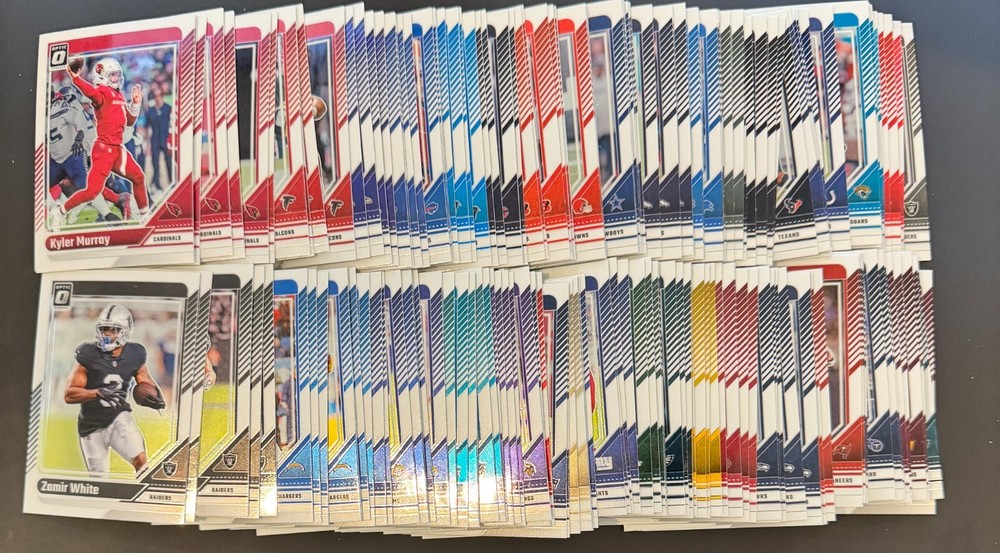 2024 Donruss Optic Football Singles Complete Your Set YOU PICK + Buy More Save! Thank you for considering this item from Mack Daddy Got Cards . I am just a hobbyist primarily selling cards to get back some of the money spent on doing what I love: ripping packs! Please see below for common questions/details regarding Card Condition, Photos, Buy-It-Now & Offers, Packing & Shipping Details, and Combined Shipping Discount "Rules". Pictures/Card Condition All items are photographed using an iPhone and most using a light box to provide optimal pics. The vast majority of the raw cards I sell are opened/ripped myself, photographed, then placed immediately in a sleeve and either top-loader or one-touch case. As most cards listed are right from the pack, it is presumed that they should be in mint or near mint condition. As cards are mass produced, I know this is not always the case. Therefore, I do inspect them briefly when photographing and will change condition to Excellent in listings when any noticeable defect is seen. I certainly do not see every minor defect and not all minor defects warrant a change from Near Mint to Excellent, but I do try to be as transparent/fair as I can possibly be. All potential buyers are strongly encouraged to inspect each card carefully using the provided pictures if you are considering grading. If additional pictures are needed for your assessment, please reach out and I will do my best to accommodate. I also buy cards for my personal collection and can understand where buyers are coming from when it comes to good pics to evaluate cards. In some cases, slab/graded cards listed will use the PSA high-quality pics that are taken from the PSA orders. I will do this is some cases to list slabs when they are on their way back to me from PSA (or sometimes when I don't have time to dig the slab out to list). I am happy to provide pics taken myself of the slabs if the PSA pics are not adequate or if there is any concern about the integrity/condition of the slab itself. If there are any major defects in a slab/graded card listed, I will make every effort to note this in details and to take representative pictures. Buy-It-Now/Offers: Don't Message Offers! Messages to consider an offer when there is no Make Best Offer option will NOT be responded to. If an item is listed as Buy It Now, without the option to Make Best Offer, then the listed price is the lowest I will consider selling at that time. Messages with offers will NOT be responded to for items listed as Buy It Now when the option to Make Best Offer is available. Only offers made using the Make Best Offer button/option will be considered. Messages asking "What is the lowest price you will accept" will NOT be responded to; just make the lowest offer YOU are willing to pay. Shipping Details Every effort is made to package all purchased items as securely and safely as possible to minimize the risk of damage during shipping. Please see feedback. Details of how specific items are typically shipped: Individual raw cards <$20 : Penny sleeve, semi-rigid toploader, toploader sleeve, painter's tape on back to prevent shifting in envelope, white 6.5" x 4.5" envelope. For patch cards or other thicker cards, the same packaging applies. However, additional "non-machinable" postage will be added by seller to be able to use the cheaper eBay white envelope option (better for seller and buyer). Individual raw cards >$20 : Penny sleeve, semi-rigid toploader, toploader sleeve, cardboard or foam on top/bottom, then shipped in a 7" x 5" x 1" box or bubble mailer. Individual raw cards >$100 : Penny sleeve, one-touch magnetic holder, mag holder sleeve, cardboard or foam on top/bottom, then shipped in a 7" x 5" x 1" box or bubble mailer. Multiple raw cards and smaller card lots <$20 : Penny sleeve, semi-rigid toploader, toploader sleeve, painter?s tape on back to prevent shifting in envelope, white 6.5" x 4.5" or 10" x 4" envelope when 2 toploaders placed in same envelope. Chrome cards will be individually sleeved, but may be combined in a single toploader. Multiple paper cards may be placed in a single penny sleeve in some cases, then in a single toploader. In some cases when multiple cards are combined into one shipment, but the eBay "semi-rigid" or 0.25" thickness requirements cannot be met, shipping will be changed to USPS Ground Advantage (fixed shipping cost does not change for buyer). In this case, multiple toploaders will be placed in a larger sleeve/team bag, cardboard or foam on front and back, then shipped in a 7" x 5" x 1" box. Sets : Smaller sets (i.e. insert sets) will have cards individually sleeved, cards placed in team bag, cardboard or foam front and back, then shipped in a 7" x 5" x 1" box. Complete larger sets will be placed in an appropriately sized set/storage box with bubble or foam padding when necessary. Higher value cards in the set that are pictured in toploaders in listing will be included in set box in toploader. The set box will then be placed in a second larger box with padding for shipping. Slabs/Graded Cards : Slab/Graded card sleeve, cardboard or foam front and back, then shipped in a 7" x 5" x 1" box. Up to 3 slabs may be shipped in a single box. If 4 or more slabs are combined, slabs will be bubble wrapped then shipped in an appropriately sized box (usually PSA small box). MDGC