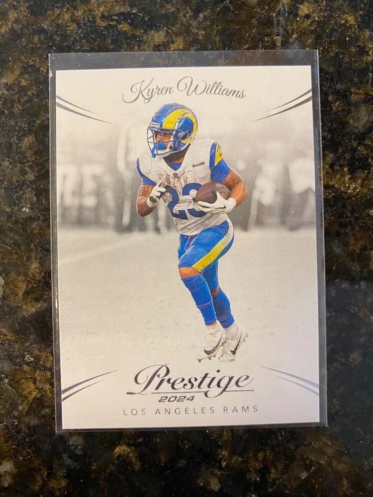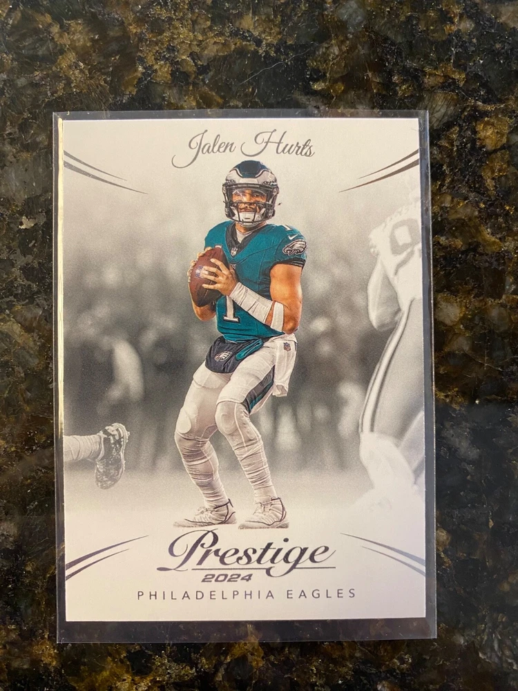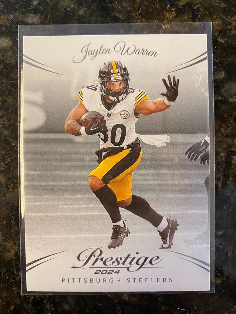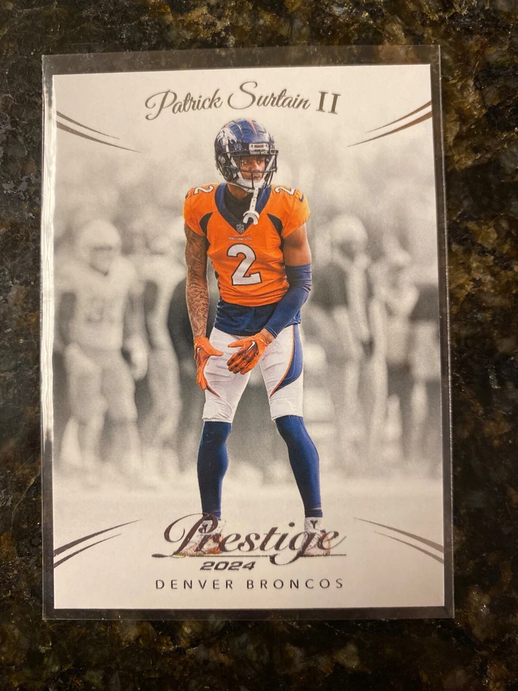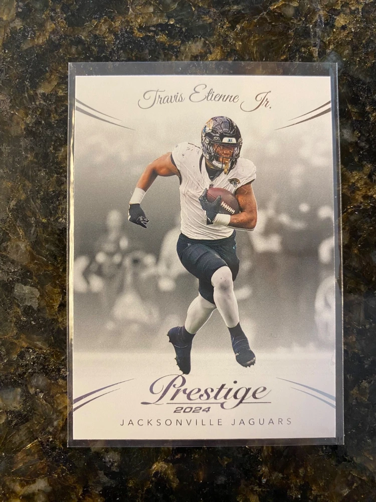 Dive into the 2024 NFL season with the Panini Prestige Football series and select the card you need to complete your set. Whether you're looking to add a rookie card to your collection or seeking a particular parallel variety, this offer provides a seamless way to acquire the missing piece. Each card reflects the high-quality standards of Panini, the leading manufacturer in sports trading cards, ensuring a premium addition to your collection. With the 2024 season's data and design, these cards capture the essence of football and are a must-have for enthusiasts and collectors alike.