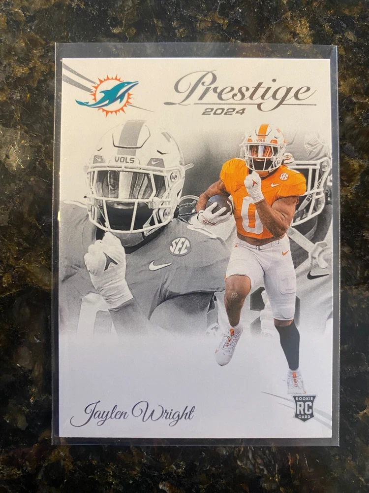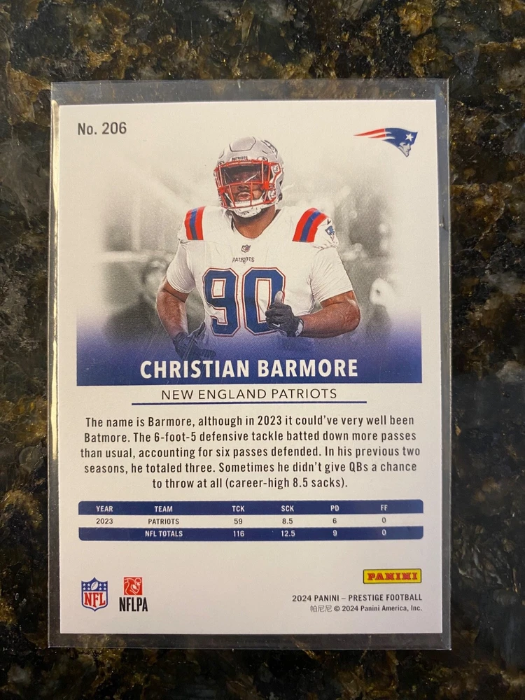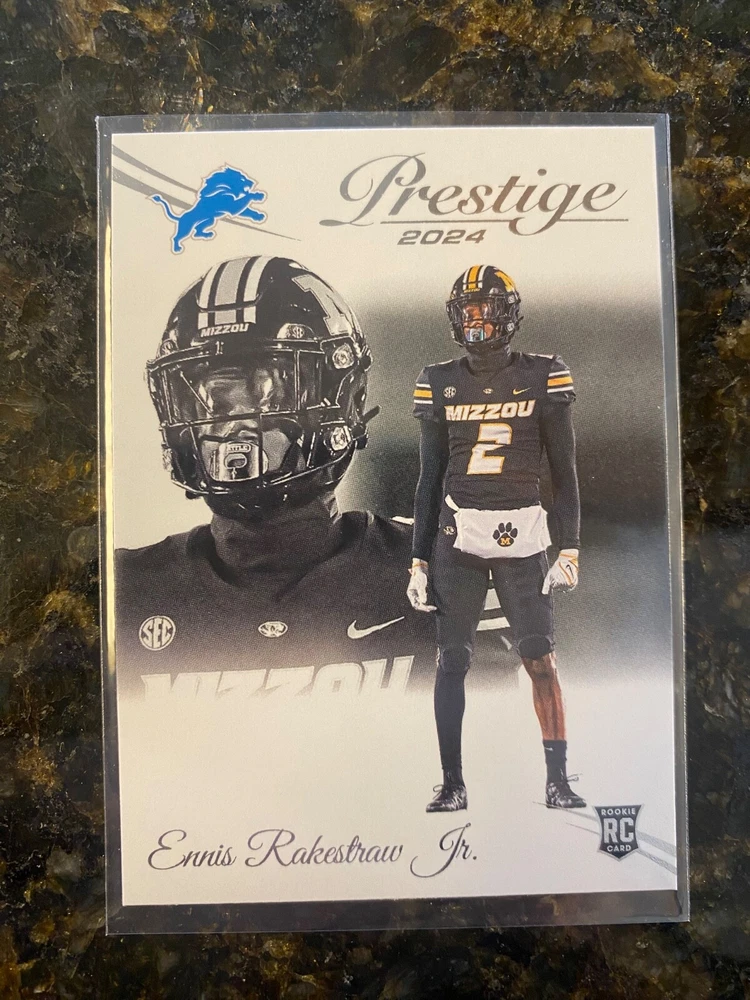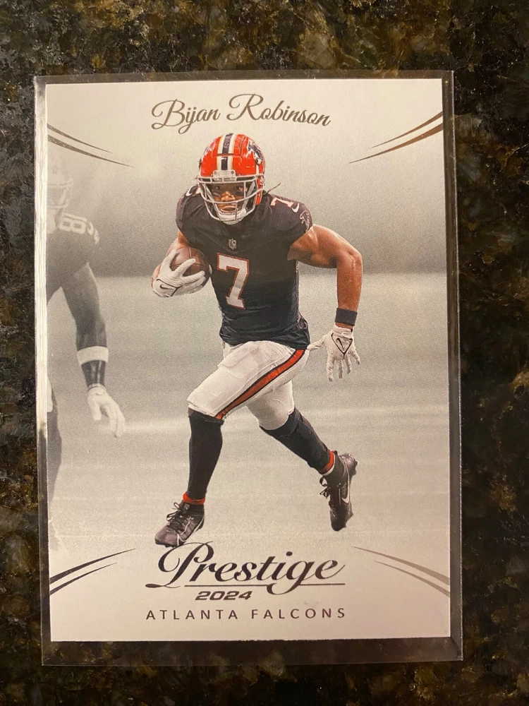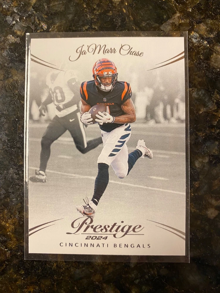 Dive into the 2024 NFL season with the Panini Prestige Football series and select the card you need to complete your set. Whether you're looking to add a rookie card to your collection or seeking a particular parallel variety, this offer provides a seamless way to acquire the missing piece. Each card reflects the high-quality standards of Panini, the leading manufacturer in sports trading cards, ensuring a premium addition to your collection. With the 2024 season's data and design, these cards capture the essence of football and are a must-have for enthusiasts and collectors alike.