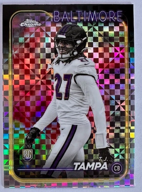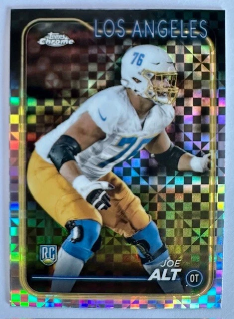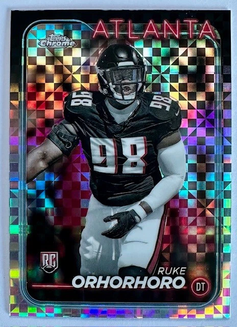 Elevate your football card collection with the 2024 Topps Chrome Football Complete Your Set. Choose your base set parallels, Rookie Cards (RCs), and Parallel/Variety editions to finish up your set. All cards will ship in sleeves, top loader, protector cards, team bag and in a bubble mailer. Combined shipping is available on multiple cards orders.