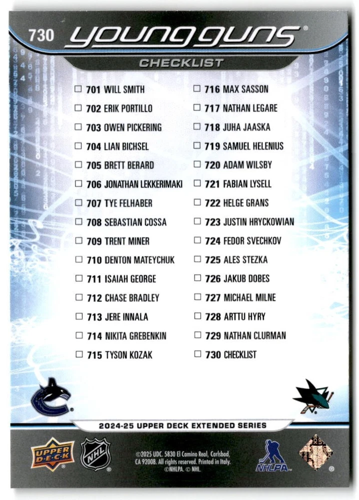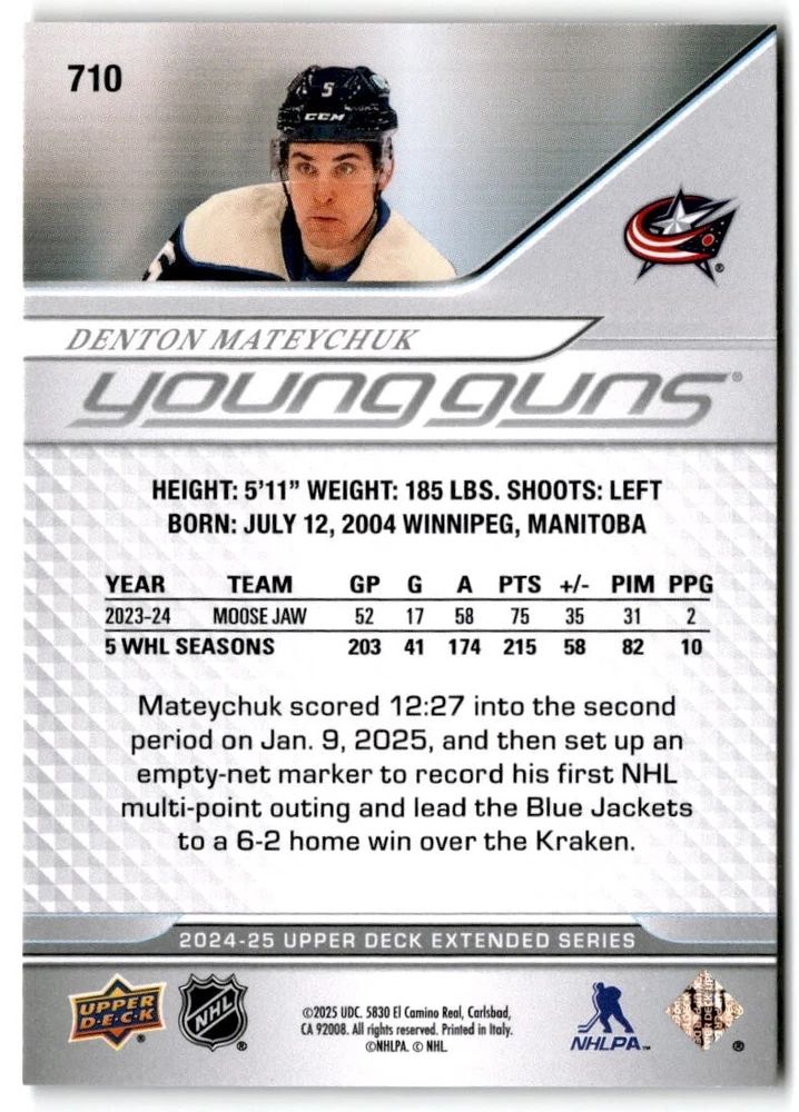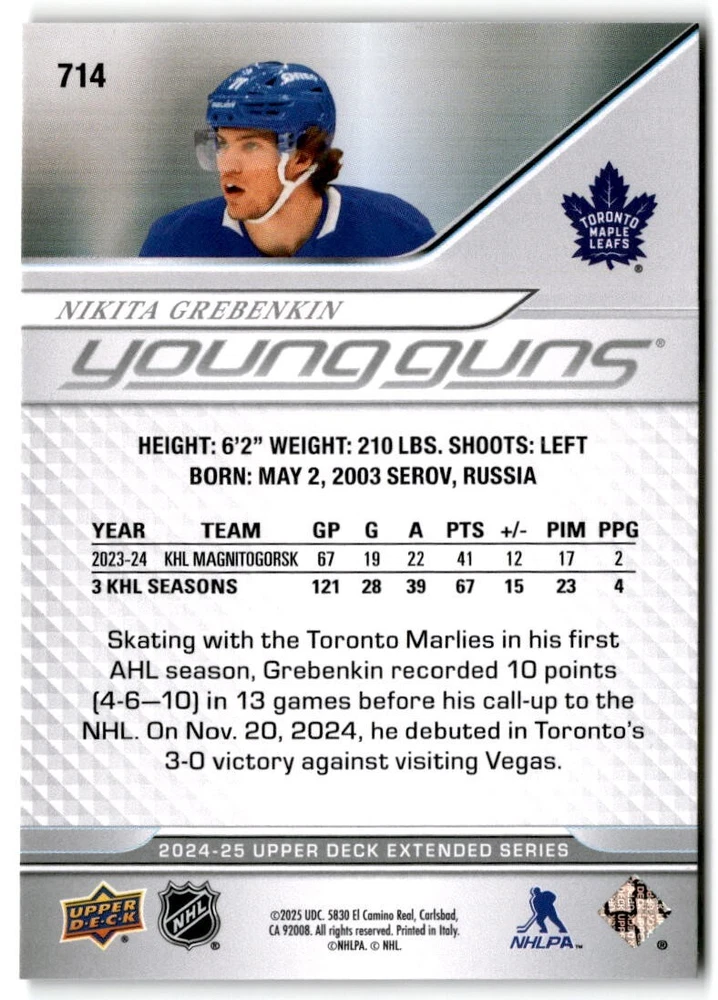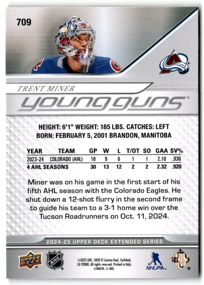 2024-25 UD Extended Young Guns & 1st RD RCs #701-750 Complete Your Set You Pick The cards are pictures of one of that specific card we are selling you may get that one or another one. Please pick from drop down menu for the cards you would like. All cards came directly from packs I opened. Please message me with any questions. Shipping - Card(s) will be shipped within three business days (Thursday night orders will be done Mon/Tue and in Tue/Wed mail) and orders will be shipped in a penny sleeve or case. EXTRA SPECIAL - This Listing Only. FREE SHIPPING on this listing using eBay standard envelope unlimited cards here FREE shipping! Purchase unlimited cards in this listing and your shipping is FREE. If your total on the cards is $25 or more pre-tax they will automatically be upgraded to a bubble mailer. If you would like shipped in a bubble mailer and your total is less than $25 in cards please choose the USPS First Class shipping for $4.99. International Orders are more for shipping. Just as a reminder if you are purchasing cards in a special deal (I do change them from time to time) you must purchase all the cards at one time via the cart to qualify for the special. * If an item is not received and it does not show delivered. You must submit an item not received through eBay for each card of that order. If it shows delivered and you do not see it in your mailbox many times with eBay standard delivery it can arrive the next day. If you do not see it then please check around to see if neighbors received the card or if it might have fallen to the ground possibly check with your postmaster. Refunds are not given on delivered mail.