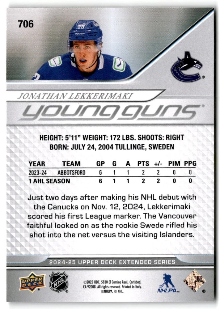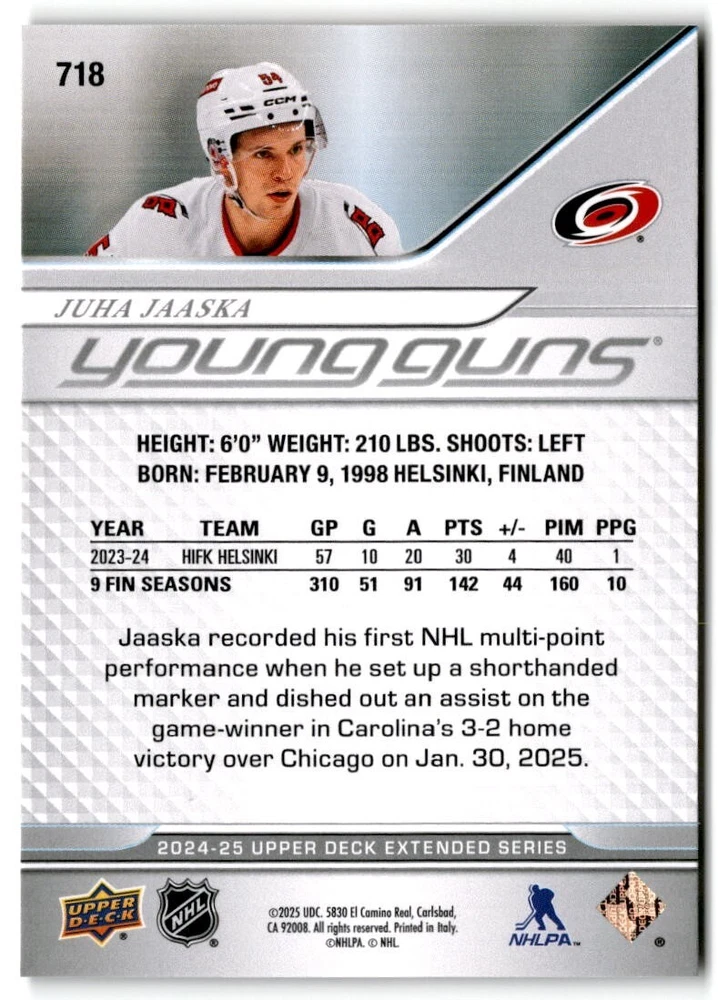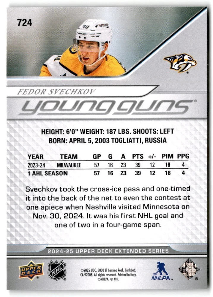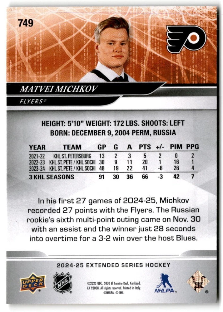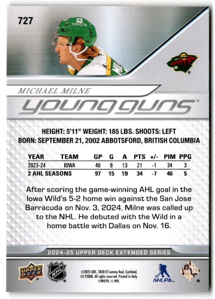 2024-25 UD Extended Young Guns & 1st RD RCs #701-750 Complete Your Set You Pick The cards are pictures of one of that specific card we are selling you may get that one or another one. Please pick from drop down menu for the cards you would like. All cards came directly from packs I opened. Please message me with any questions. Shipping - Card(s) will be shipped within three business days (Thursday night orders will be done Mon/Tue and in Tue/Wed mail) and orders will be shipped in a penny sleeve or case. EXTRA SPECIAL - This Listing Only. FREE SHIPPING on this listing using eBay standard envelope unlimited cards here FREE shipping! Purchase unlimited cards in this listing and your shipping is FREE. If your total on the cards is $25 or more pre-tax they will automatically be upgraded to a bubble mailer. If you would like shipped in a bubble mailer and your total is less than $25 in cards please choose the USPS First Class shipping for $4.99. International Orders are more for shipping. Just as a reminder if you are purchasing cards in a special deal (I do change them from time to time) you must purchase all the cards at one time via the cart to qualify for the special. * If an item is not received and it does not show delivered. You must submit an item not received through eBay for each card of that order. If it shows delivered and you do not see it in your mailbox many times with eBay standard delivery it can arrive the next day. If you do not see it then please check around to see if neighbors received the card or if it might have fallen to the ground possibly check with your postmaster. Refunds are not given on delivered mail.