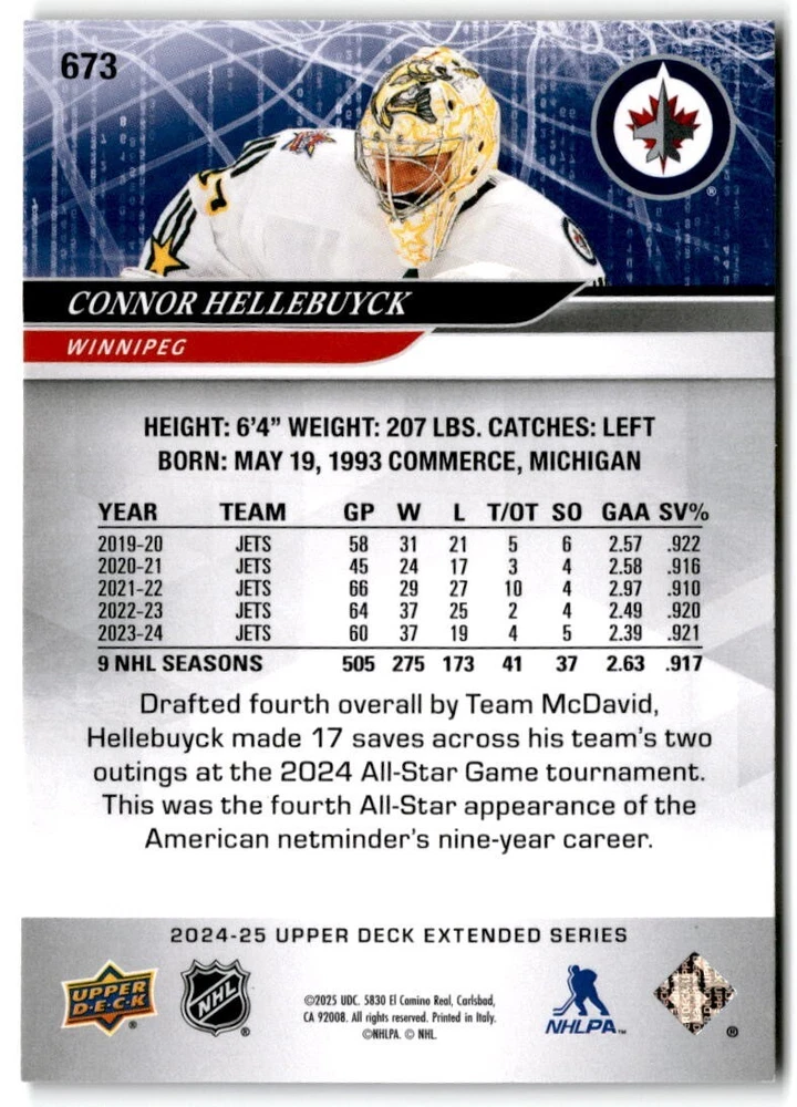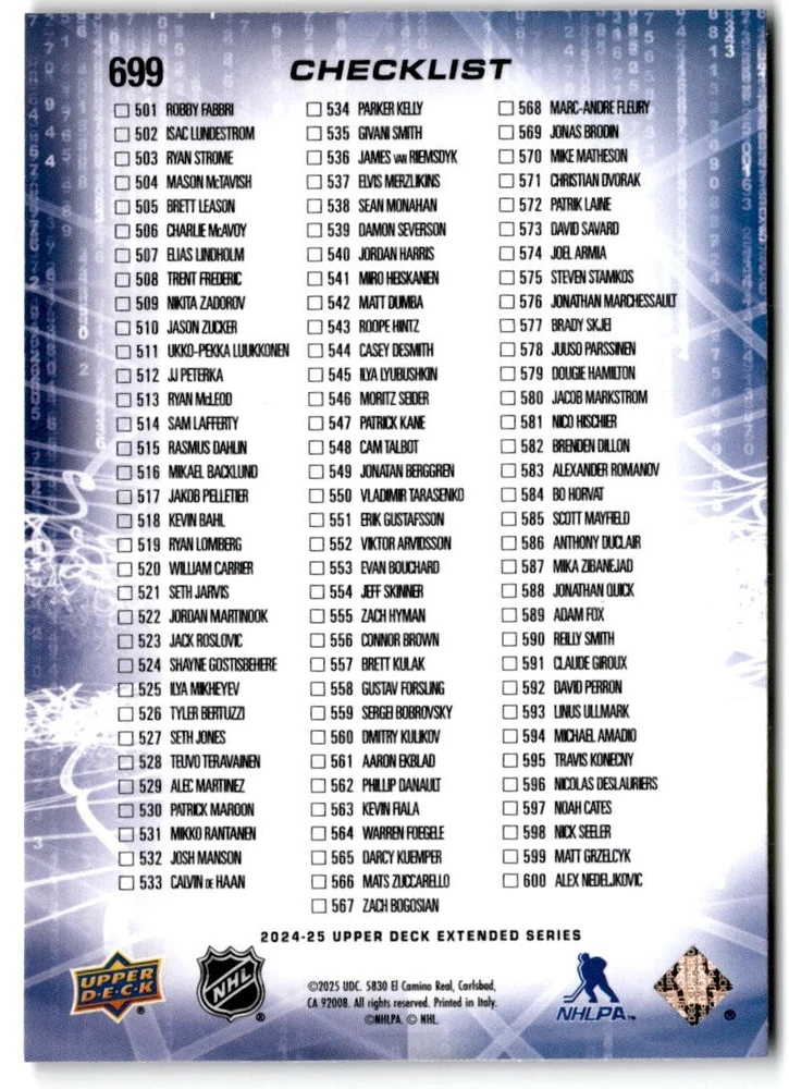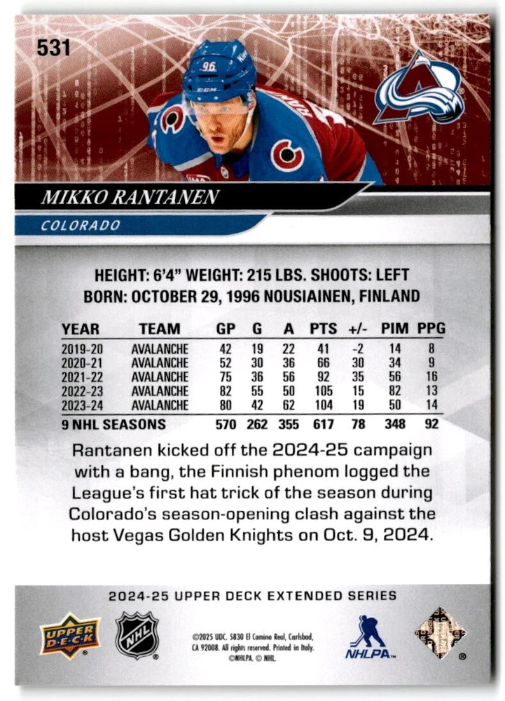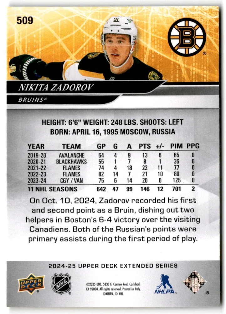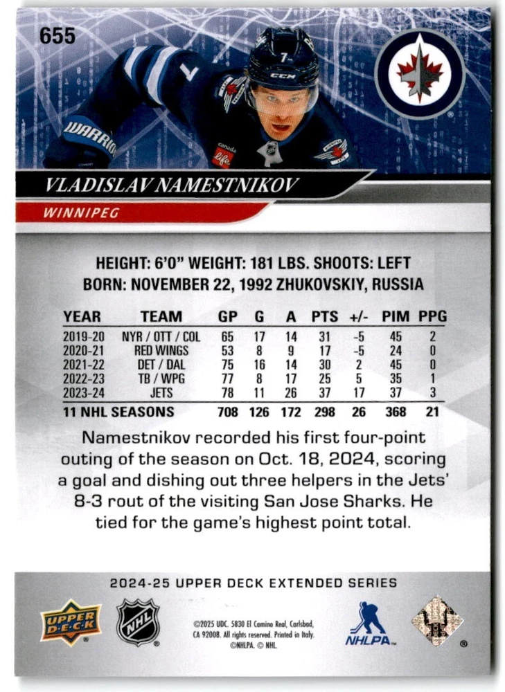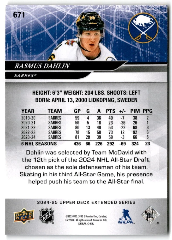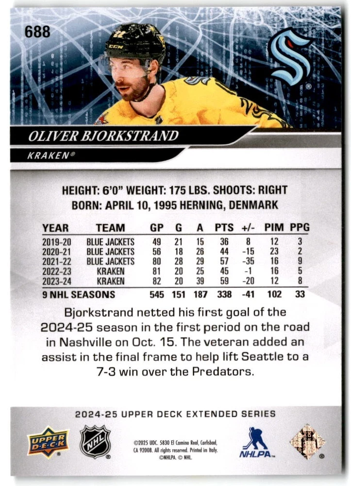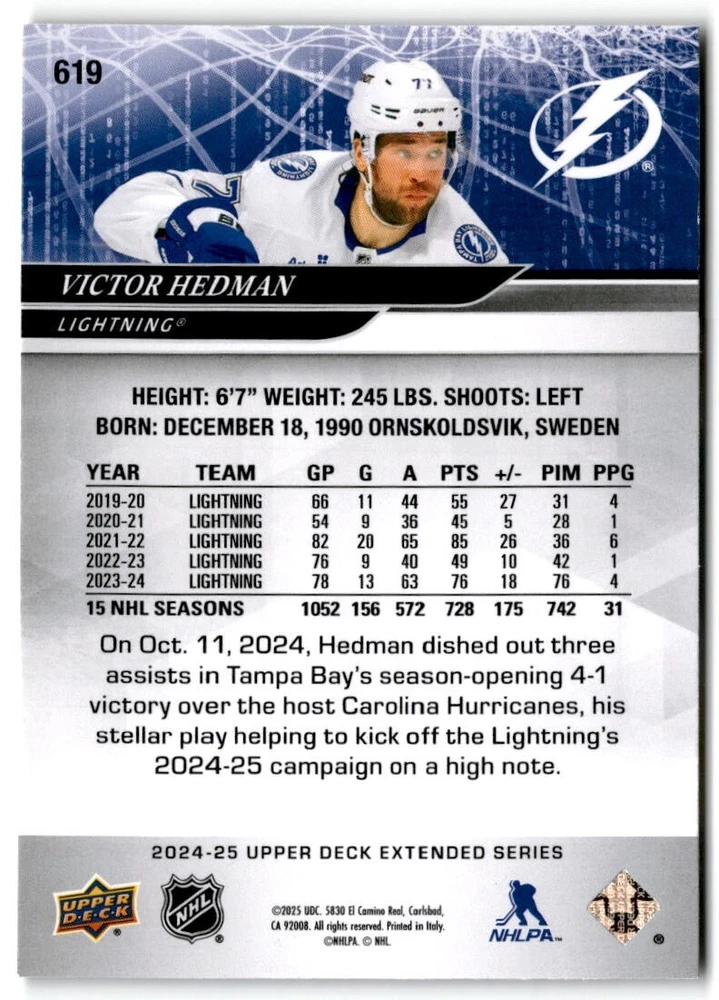 2024-25 Upper Deck Extended Hockey Base #501-700 Complete Your Set You Pick Card The cards are pictures of one of that specific card we are selling you may get that one or another one. Please pick from drop down menu for the cards you would like. All cards came directly from packs I opened. Please message me with any questions. Shipping - Card(s) will be shipped within three business days (Thursday night orders will be done Mon/Tue and in Tue/Wed mail) and orders will be shipped in a penny sleeve or case. EXTRA SPECIAL - This Listing Only. FREE SHIPPING on this listing using eBay standard envelope unlimited cards here FREE shipping! Purchase unlimited cards in this listing and your shipping is FREE. If your total on the cards is $25 or more pre-tax they will automatically be upgraded to a bubble mailer. If you would like shipped in a bubble mailer and your total is less than $25 in cards please choose the USPS First Class shipping for $4.99. International Orders are more for shipping. Just as a reminder if you are purchasing cards in a special deal (I do change them from time to time) you must purchase all the cards at one time via the cart to qualify for the special. * If an item is not received and it does not show delivered. You must submit an item not received through eBay for each card of that order. If it shows delivered and you do not see it in your mailbox many times with eBay standard delivery it can arrive the next day. If you do not see it then please check around to see if neighbors received the card or if it might have fallen to the ground possibly check with your postmaster. Refunds are not given on delivered mail.